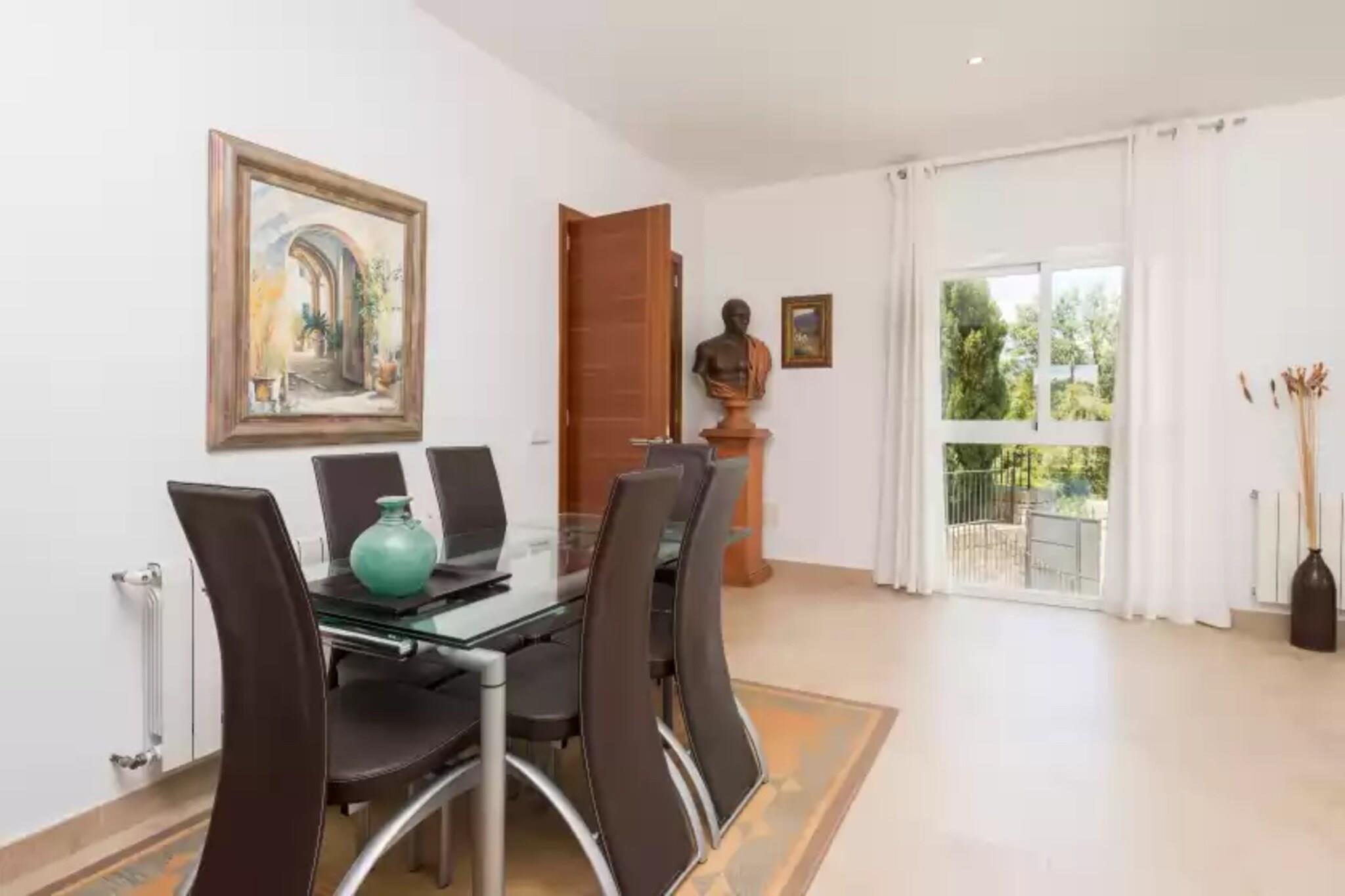 De buitenkant valt op door zijn goed onderhouden tuin en ontspanningsruimtes waar we echt kunnen genieten van de zomer op Mallorca. Het heeft een fantastisch onregelmatig gevormd chloorbad van 7 x 4 meter en een diepte van 1 tot 1,5 meter, waar volwassenen en kinderen kunnen genieten van een ontspannend bad in een rustige omgeving, omringd door de natuur. Daarnaast kun je lekker zonnen op één van de 6 ligstoelen terwijl de kleintjes op het gras spelen. Een van de meest indrukwekkende dingen aan het huis zijn de prachtige uitzichten die we vanaf verschillende punten buiten kunnen bewonderen: het zitgedeelte waar we bij zonsondergang iets kunnen drinken, de veranda aan de voorzijde, ingericht met een fantastische eettafel voor 8 personen, en die doorloopt naar de andere kant van het huis met nog een eettafel en een zitgedeelte, ideaal om vermout te drinken voordat je gaat eten. Er is ook een barbecue waar u heerlijk gegrild vlees en groenten kunt bereiden. Het terrein is omheind en er zijn buren in de buurt. Het huis zelf is verdeeld over drie verdiepingen en 400 m2 met een moderne stijl die alle comfort biedt voor een perfect verblijf. Vanaf de veranda komen we in de eerste kamer die een comfortabele en grote bank biedt waar we als gezin samen satelliettelevisie kunnen kijken. De tweede woonkamer, op dezelfde verdieping, biedt een grote bank en een formele eethoek voor 6 personen. De grote ramen laten niet alleen overvloedig licht binnen, maar we kunnen ook vanuit het interieur het prachtige uitzicht over de Pla de Mallorca blijven bewonderen. De fantastische keuken is onafhankelijk en biedt alles wat de familiechef nodig heeft om zijn beste stoofschotels te bereiden: keramische kookplaat, magnetron, oven, vaatwasser,... evenals een comfortabele eettafel voor 8 personen. Uiteraard heeft het ook toegang naar buiten voor uw meer comfort. Onze gasten vinden 4 slaapkamers waar ze kunnen uitrusten na een dag vol activiteiten. De eerste bevindt zich op de begane grond en heeft een tweepersoonsbed, een kledingkast en toegang naar buiten. Een charmante badkamer met ligbad completeert deze begane grond. Als we de trap opgaan, kunnen onze gasten genieten van een andere woonruimte, ook met grote ramen en open naar de eetkamer beneden. Op deze verdieping bevinden zich de overige drie slaapkamers. Alle drie hebben ze een tweepersoonsbed en een kledingkast. Eén ervan heeft ook een en-suite badkamer met ligbad. Op deze verdieping bevindt zich een derde badkamer met een aparte douche en een bubbelbad waar u kunt genieten van een ontspannend bad met een spectaculair uitzicht. In de kelder bevinden zich de garage, de wasruimte - met wasmachine, droger, strijkijzer en strijkplank - en een badkamer met douche. Tenslotte beschikt de woning over airconditioning in de twee kamers op de begane grond en in alle slaapkamers. We stellen ook een wieg en een kinderstoel tot uw beschikking voor het geval u met uw baby reist. Als het uw bedoeling is om zoveel mogelijk plaatsen op Mallorca te bezoeken, is Inca ongetwijfeld de beste keuze. Het huis is gelegen in een zeer rustige urbanisatie in de stad, omgeven door vegetatie en met uitzicht tot aan de baai van Alcudia. De afstanden naar andere punten op het eiland zijn vrijwel gelijkwaardig: u kunt het Tramuntana-gebergte en het prachtige Lluc-klooster bezoeken; de noordelijke stranden, zoals Puerto de Alcudia en Puerto de Pollensa; of de hoofdstad Palma, die een groot cultureel en recreatief aanbod biedt. In de stad vinden we alle voorzieningen voor een onafhankelijk verblijf, zoals bars, traditionele Mallorcaanse eetkelders, modewinkels,... Elke donderdag is het centrum gevuld met leven en animatie dankzij de wekelijkse markt waar je allerlei lokale producten of ambachten kunt kopen. Voor eventuele extra kosten kunt u contact opnemen met de adverteerder. Huisdieren zijn welkom. Het vieren van evenementen is niet toegestaan. Er is 1 parkeerplaats in de garage. Afstanden Strand: 25 km - Port d'Alcúdia Luchthaven: 44 km - Son Sant Joan Golfbaan: 28 km - Golf Alcanada Stad: 1,5 km - Inca Treinstation: 3,7 km - Estació d'Inca Bushalte: 2 km - Inca Veerboot: 26,2 km - Port d'Alcúdia Ziekenhuis: 2,5 km - Regionaal ziekenhuis van Inca Toeristenvergunning: ETV/9738Bij de ingang dient u de borg rechtstreeks aan de eigenaar te betalen.