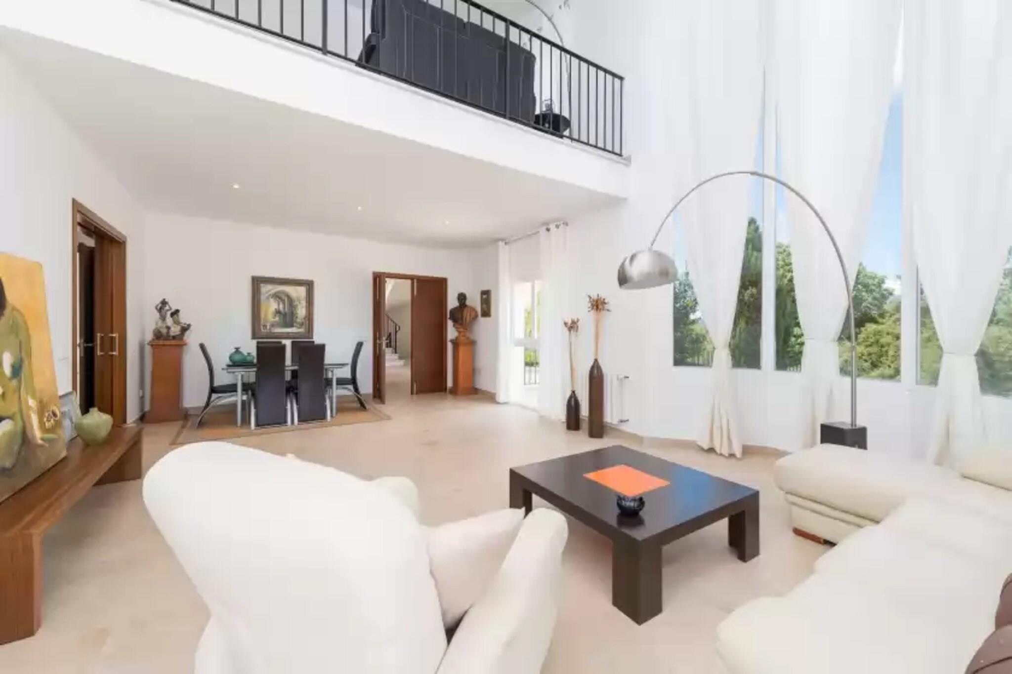 Stue, Stue, Stue, Køkken(komfur, mikrobølgeovn), soveværelse(dobbeltseng), soveværelse(dobbeltseng), soveværelse(dobbeltseng), soveværelse(dobbeltseng), badeværelse, badeværelse, badeværelse, badeværelse, garage, kaffemaskine, ovn, opvaskemaskine , køle-fryseskab, badekar, badekar, badekar, bruser, bruser, håndvask, håndvask, håndvask, håndvask, toilet, toilet, toilet, toilet, balkon eller terrasse, klimaanlæg, klimaanlæg, klimaanlæg, klimaanlæg, have, havemøbler, 6x solstole, grill, Parasol, swimmingpool(privat, udendørs), barneseng, barnestol