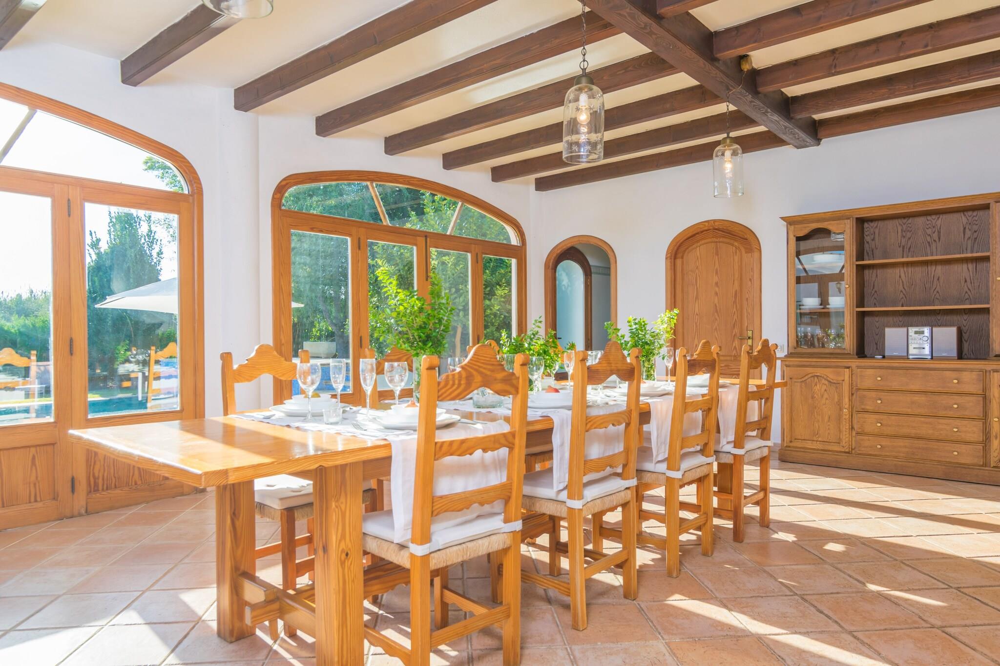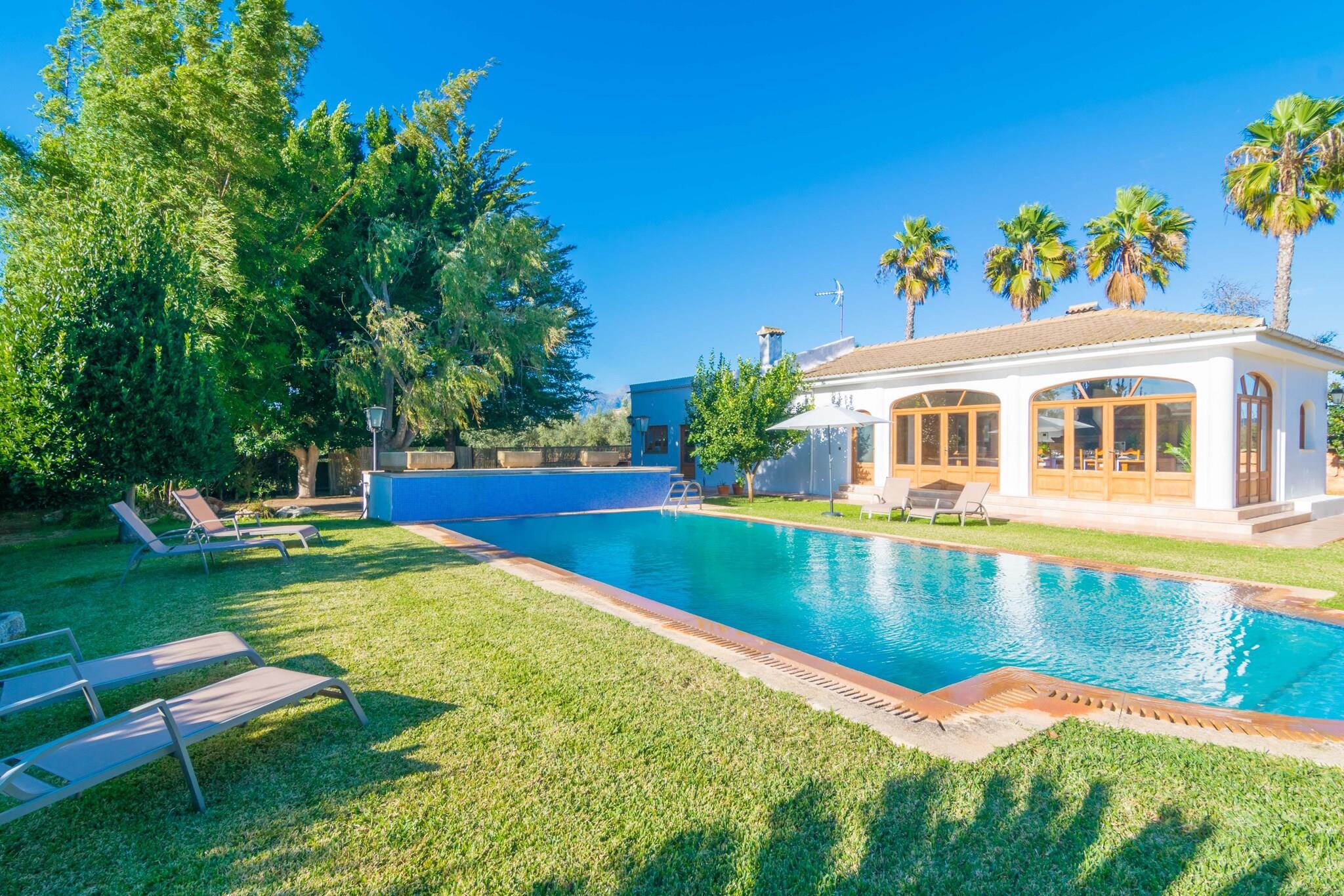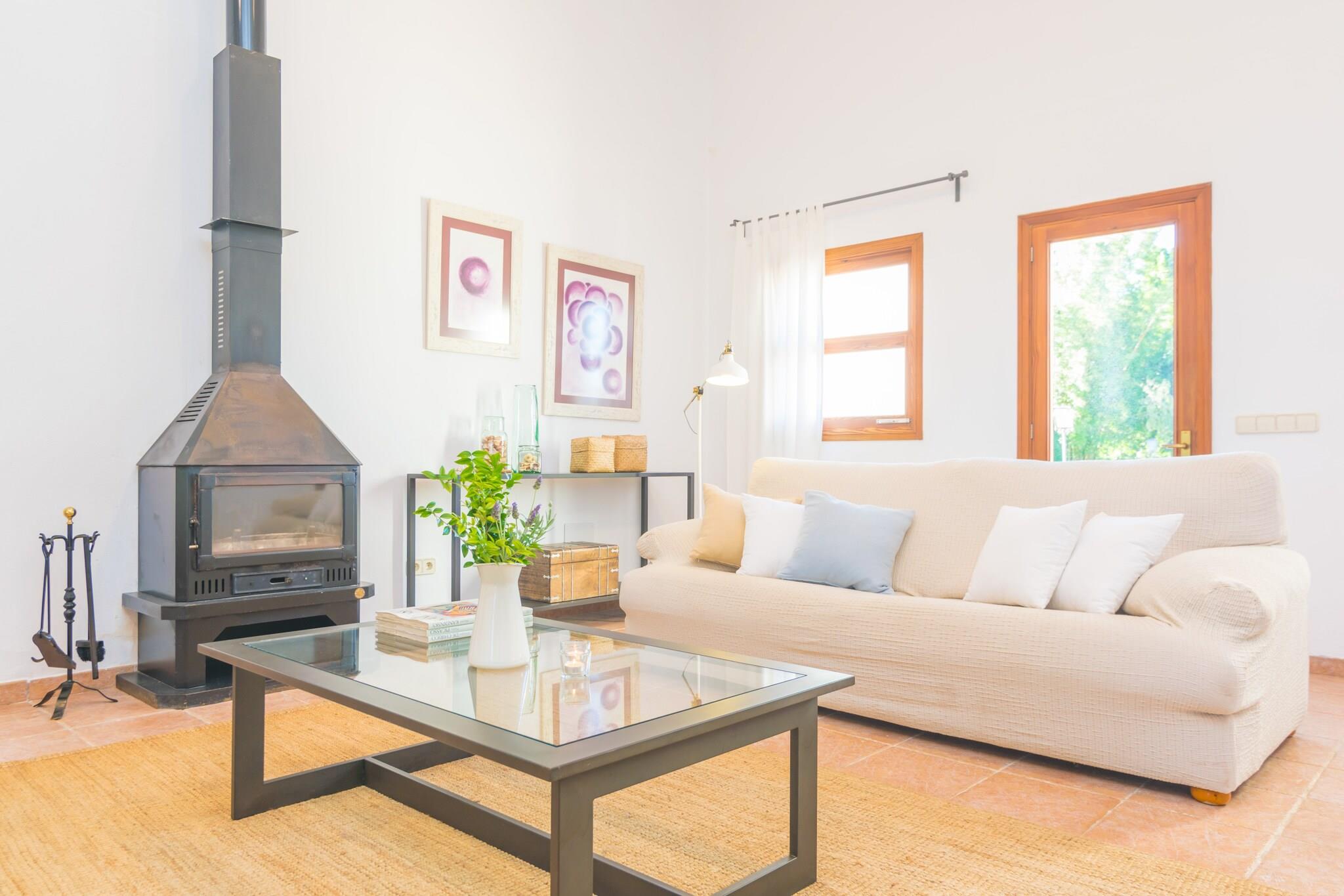 Dette fantastiske landsted nær Inca er perfekt til et fredeligt tilflugtssted. Dens frodige have omgiver en privat 10 x 5 m klorpool (1,2-2,5 m dyb) med 8 liggestole til at slikke den mallorcanske sol. Køl af under den udvendige bruser, og nyd derefter måltider i det airconditionerede køkken/spisestue ved poolen med gaskomfur, grill og stort spisebord. Du finder også en grill, brændeovn og et komplet badeværelse med badekar udenfor. Den indhegnede ejendom tilbyder total privatliv. Den anden bygning huser boligareal og soveværelser, alle med AC. Slap af på de komfortable sofaer med satellit-tv eller i læsekrogen. To brændeovne holder dig hyggelig i køligere måneder. En lang gang med et 5 meter langt klædeskab fører til 4 soveværelser - tre med dobbeltsenge, et med to enkeltsenge, plus plads til en barneseng og høj stol. Der er to badeværelser indeni, et med badekar og et med bruser. Vaskerummet er fuldt udstyret med vaskemaskine, tørretumbler, strygejern og bord. Kun 3 km fra Inca finder du butikker, restauranter, et ugentligt marked og natteliv. Port d'Alcúdia-stranden ligger omkring 30 km væk.