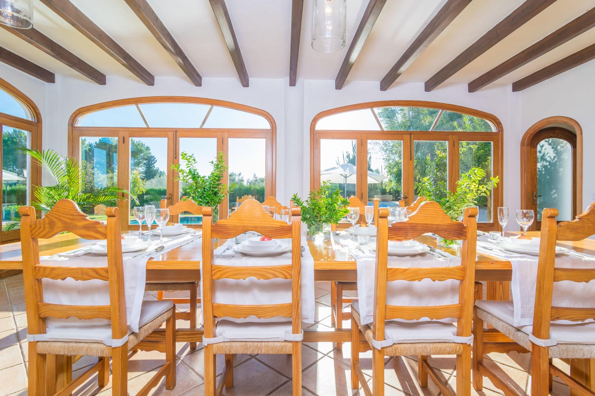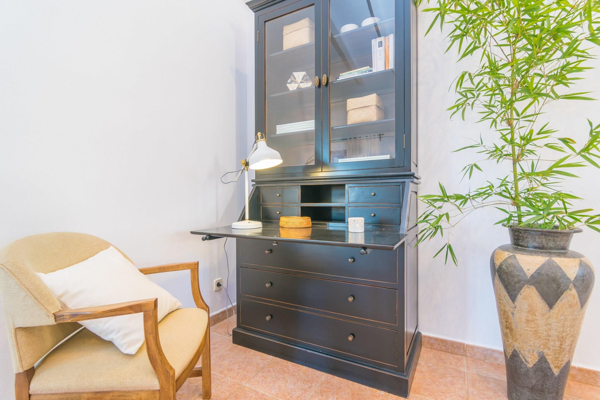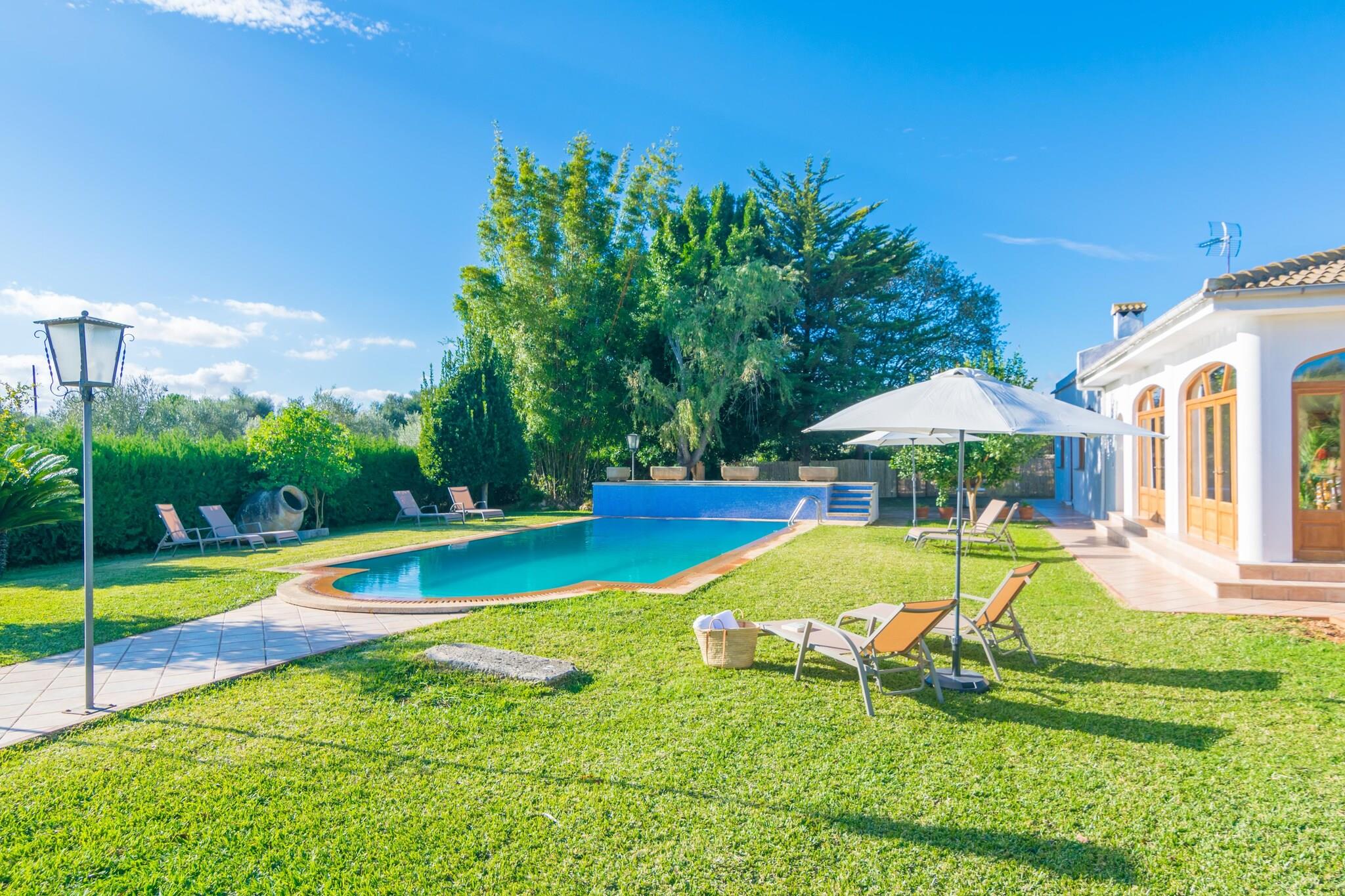 Dette fantastiske landsted nær Inca er perfekt til et fredeligt tilflugtssted. Dens frodige have omgiver en privat 10 x 5 m klorpool (1,2-2,5 m dyb) med 8 liggestole til at slikke den mallorcanske sol. Køl af under den udvendige bruser, og nyd derefter måltider i det airconditionerede køkken/spisestue ved poolen med gaskomfur, grill og stort spisebord. Du finder også en grill, brændeovn og et komplet badeværelse med badekar udenfor. Den indhegnede ejendom tilbyder total privatliv. Den anden bygning huser boligareal og soveværelser, alle med AC. Slap af på de komfortable sofaer med satellit-tv eller i læsekrogen. To brændeovne holder dig hyggelig i køligere måneder. En lang gang med et 5 meter langt klædeskab fører til 4 soveværelser - tre med dobbeltsenge, et med to enkeltsenge, plus plads til en barneseng og høj stol. Der er to badeværelser indeni, et med badekar og et med bruser. Vaskerummet er fuldt udstyret med vaskemaskine, tørretumbler, strygejern og bord. Kun 3 km fra Inca finder du butikker, restauranter, et ugentligt marked og natteliv. Port d'Alcúdia-stranden ligger omkring 30 km væk.