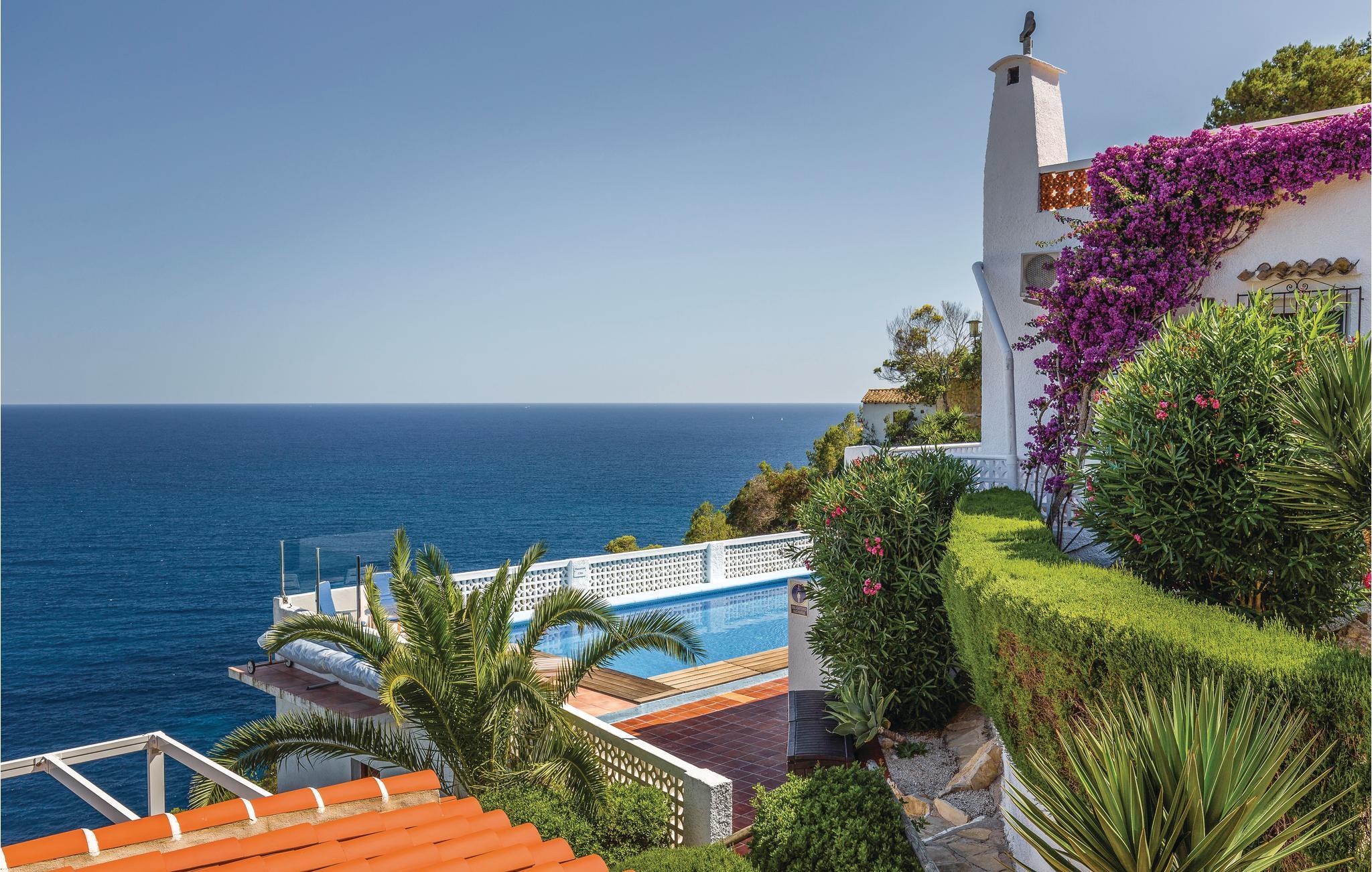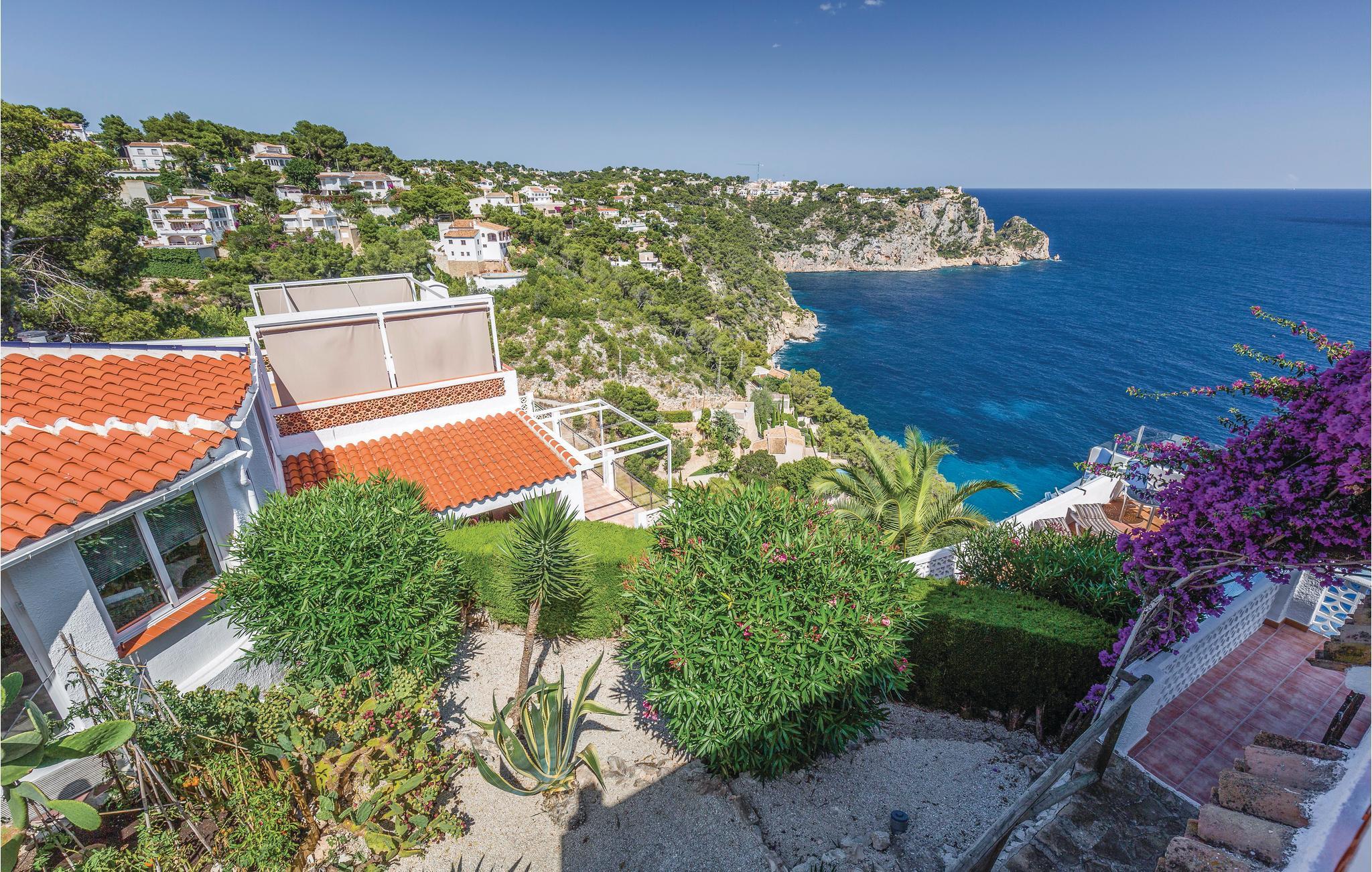 Højt over havet, med en helt utrolig flot panoramaudsigt ligger dette anlæg, hvor vi udlejer i alt seks huse. Hvert hus har både separat indgang og sin helt egen terrasse. Den dejlige pool, som er opvarmet af solenergi, og udeområdet bliver alene benyttet af lejerne. I et af husene bor viceværten, som tager imod jer, når I ankommer, samt sørger for, at poolen er ren og haven velplejet. Husene ligger på en lille privatvej i absolut rolige omgivelser. Når det er weekend, kan man være heldig at se de mange lystsejlere. Mod syd i retning af Javea er der mange gode restauranter og naturligvis især Javea med sin skønne strand, mange kulinariske lækkerier og kulturelle tilbud af mange slags. Spørg om børneseng. Alle gæster får en velkomstpakke.