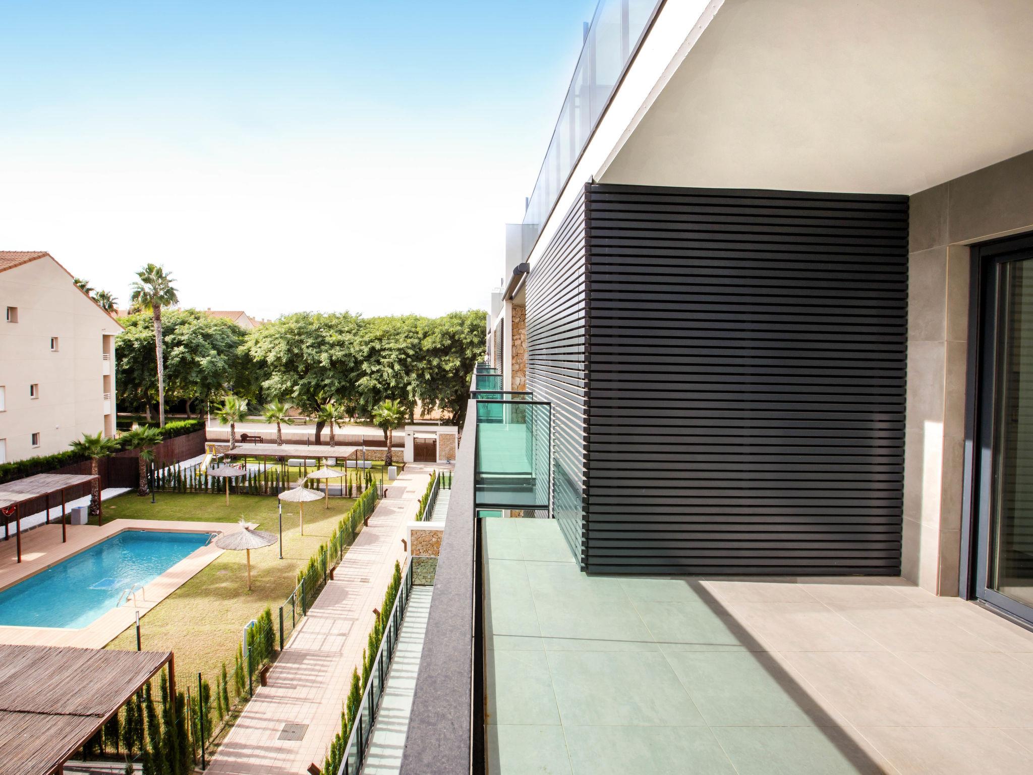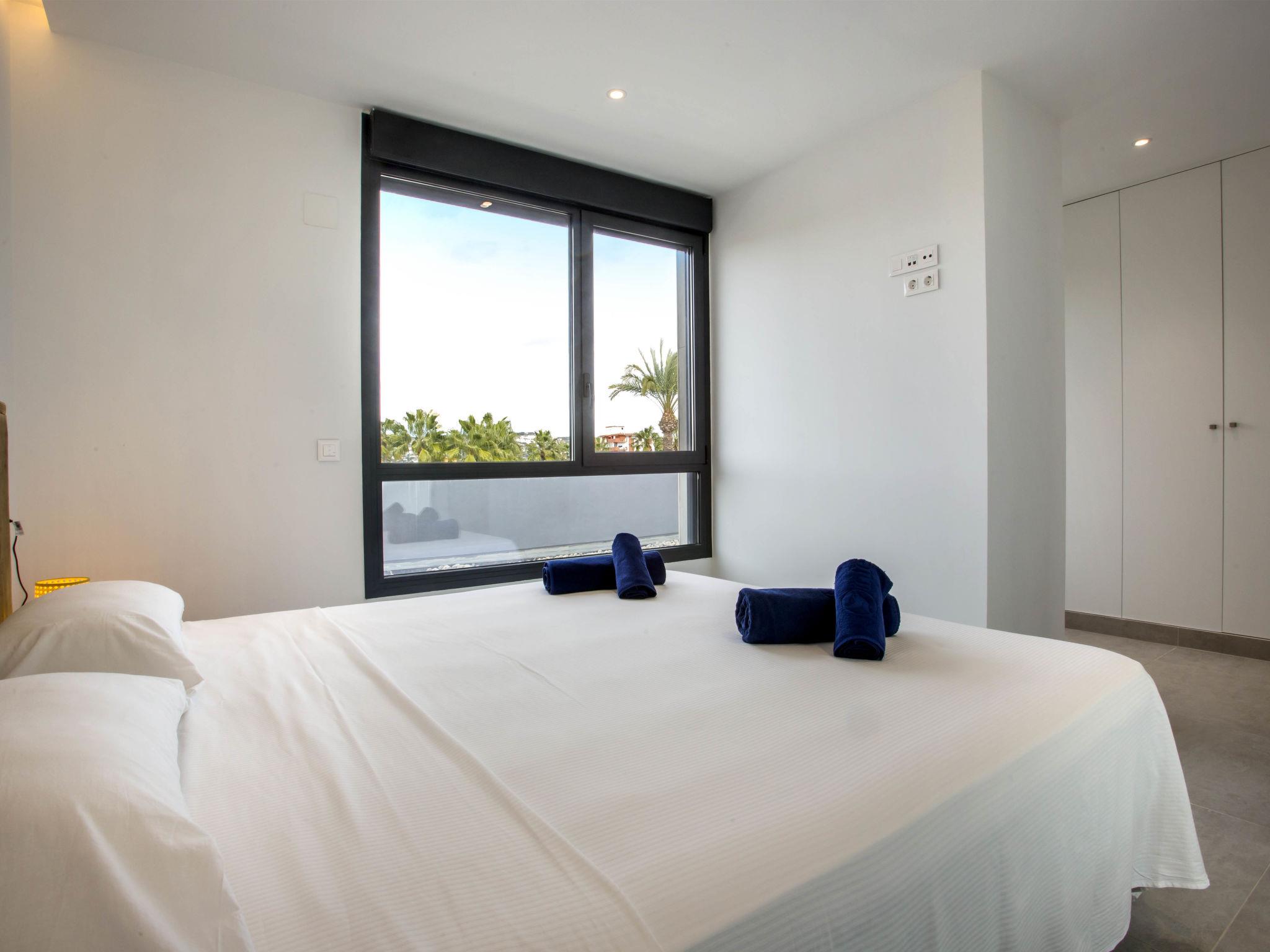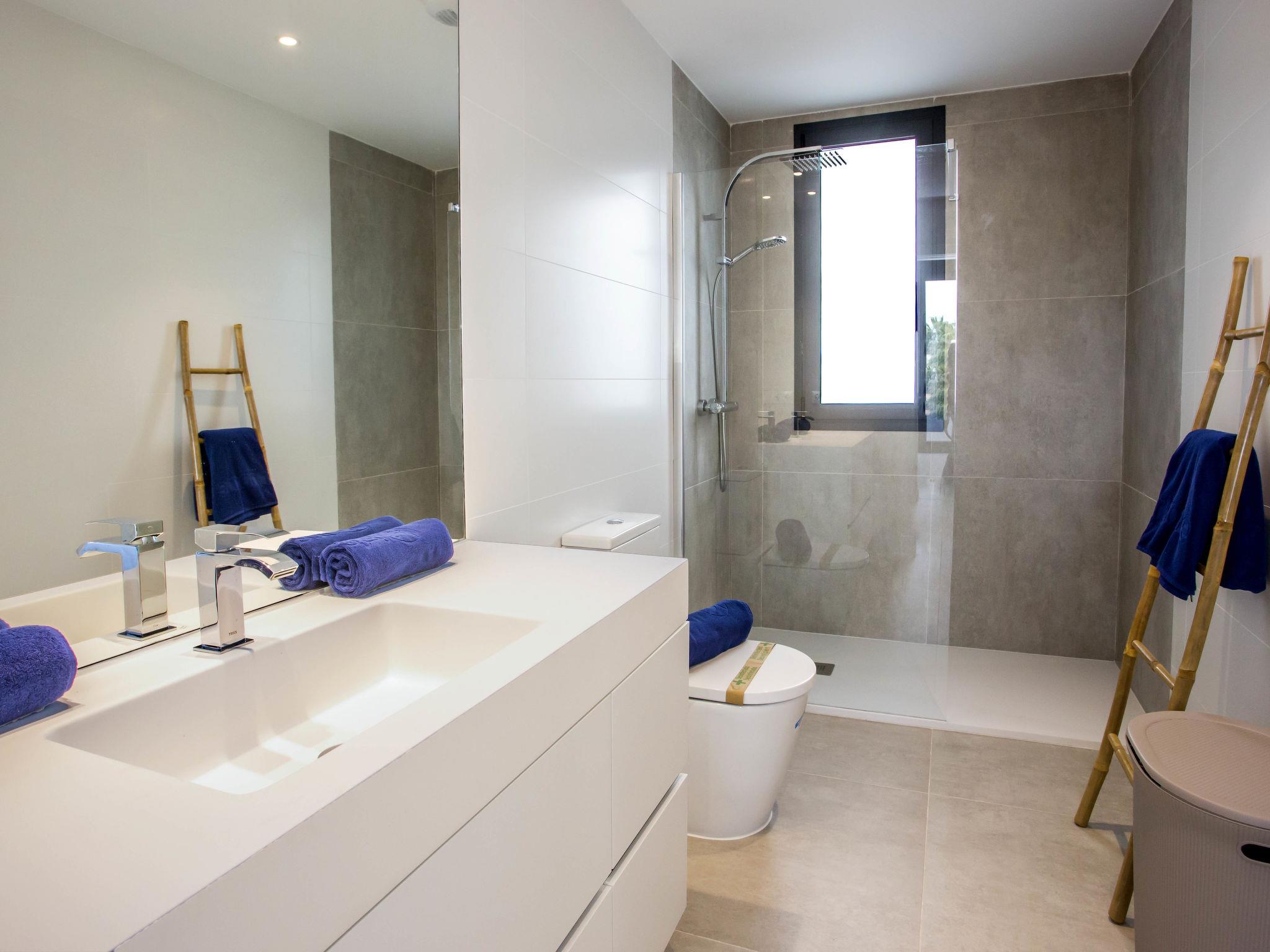 Very large, very modern, very comfortable apartment block "Golden Ray Sun", 2 storeys, built in 2023. In the resort 300 m from the centre of Javea - El Arenal, in a quiet, sunny position, 350 m from the sea, 350 m from the beach. For shared use: beautiful, well-kept garden with lawn and plants, swimming pool angular (15 x 10 m, depth 40 - 210 cm, seasonal availability: 01.Jan. - 31.Dec.) with internal staircase. Children's pool, outdoor shower. In the house: burglar alarm system. Parking on the premises. Grocery 100 m, supermarket 500 m, restaurant, café 60 m, bus stop "Parada Arenal" 240 m, sandy beach "El Arenal" 350 m. Sports harbour 400 m, surf school 400 m, sailing school, tennis 350 m. The owner does not accept any youth groups. Please note: Additional accommodations can be booked.