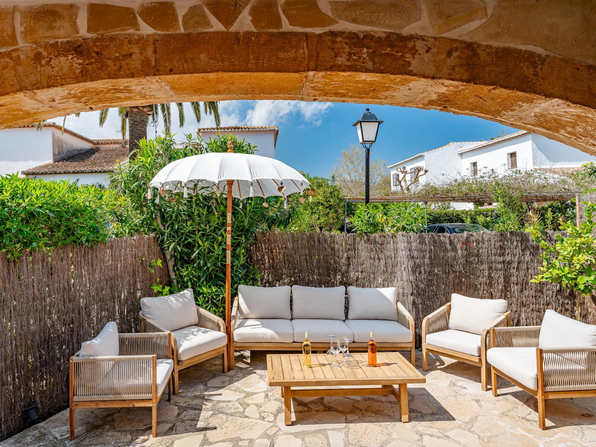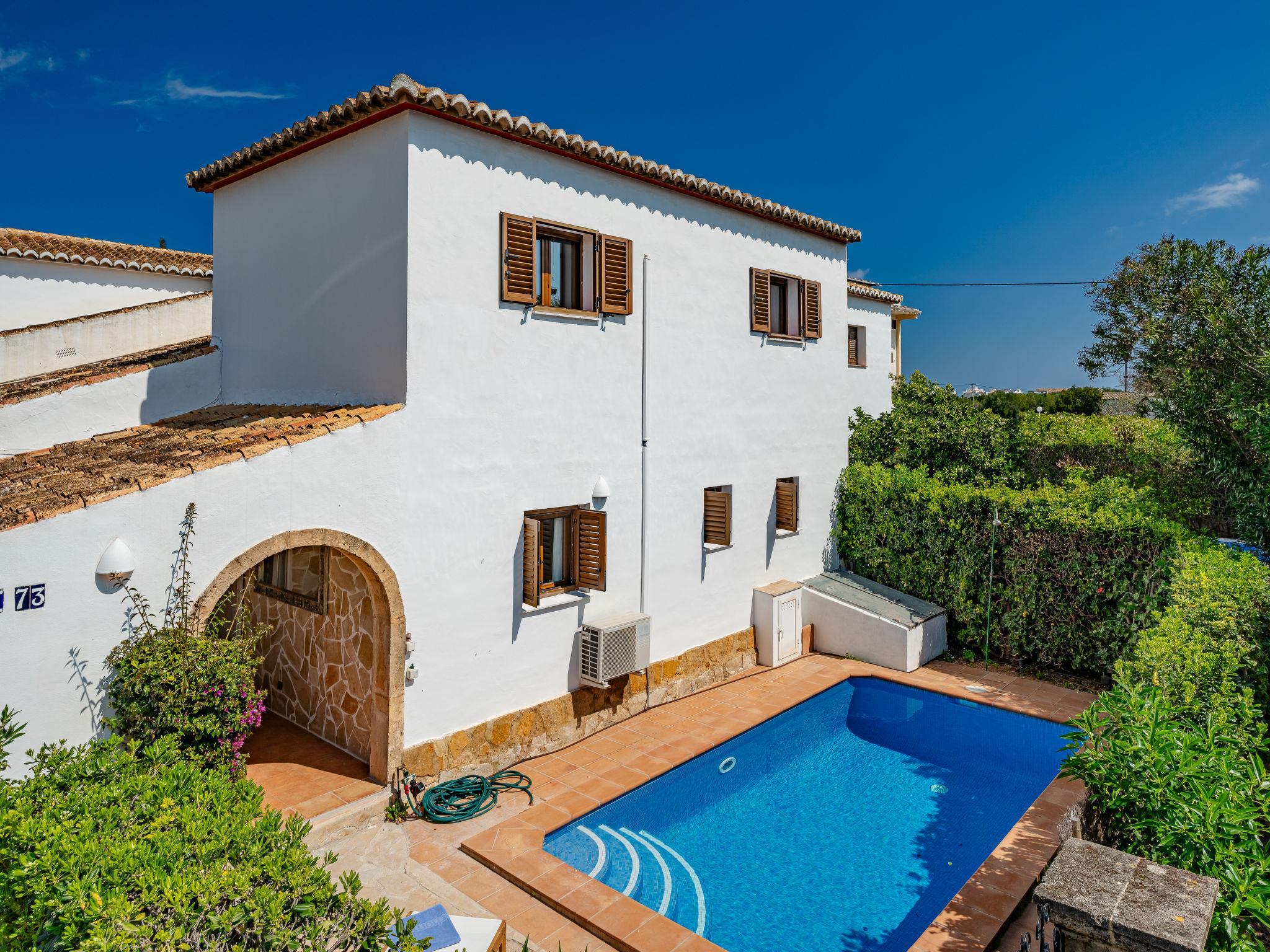 Large, very beautiful, comfortable terraced house "Cofitsa Plus". In the resort 700 m from the centre of Jávea - El Arenal, in a quiet, sunny position, 700 m from the sea, 700 m from the beach. Private: garden with lawn, swimming pool angular (6 x 3 m, depth 40 - 160 cm, seasonal availability: 01.Jan. - 31.Dec.) with internal staircase. Outdoor shower, parking at the house. Shop 650 m, supermarket 450 m, restaurant, café 350 m, bus stop 500 m, sandy beach "El Arenal" 700 m. Sports harbour 1.2 km, surf school 1.2 km, sailing school 1.2 km, tennis 1 km. The owner does not accept any youth groups.