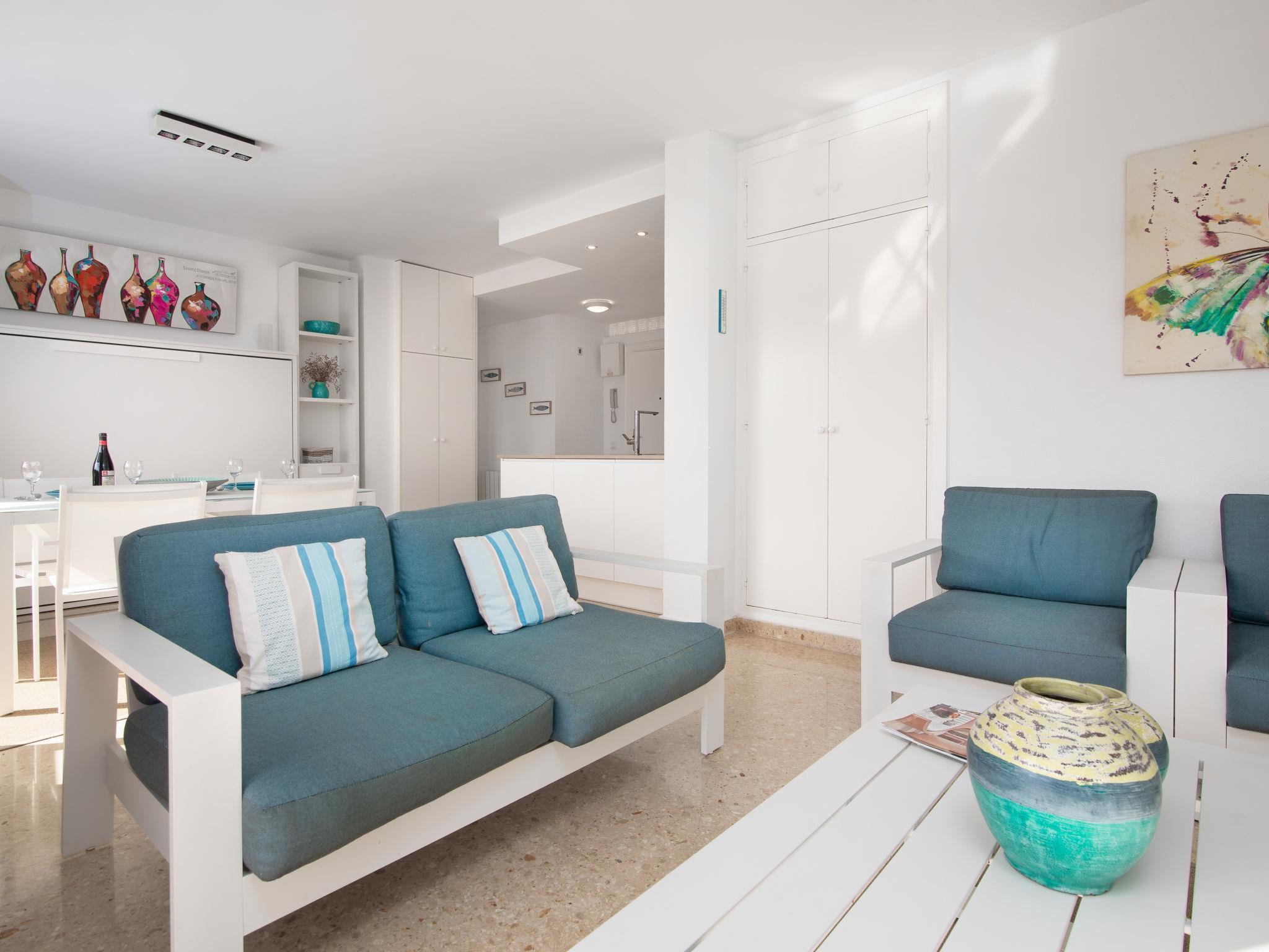2-room apartment 90 m2 on 5th floor. Spacious and bright, very comfortable and tasteful furnishings: living/dining room with 1 double fold-away bed, satellite TV, digital TV, DVD and air conditioning. Exit to the balcony. 1 room with 1 double bed and air conditioning. Exit to the balcony. Open kitchen (oven, dishwasher, 4 ceramic glass hob hotplates, microwave, freezer, electric coffee machine). Shower/WC. Electric heating. 3 balconies. Balcony furniture. View of the sea. Facilities: washing machine. Internet (WiFi, free). Parking (fenced). Please note: non-smokers only. AT-451912-A // Reg. Nr.: ESFCTU00000307100024271100000000000000000AT-451912-A0