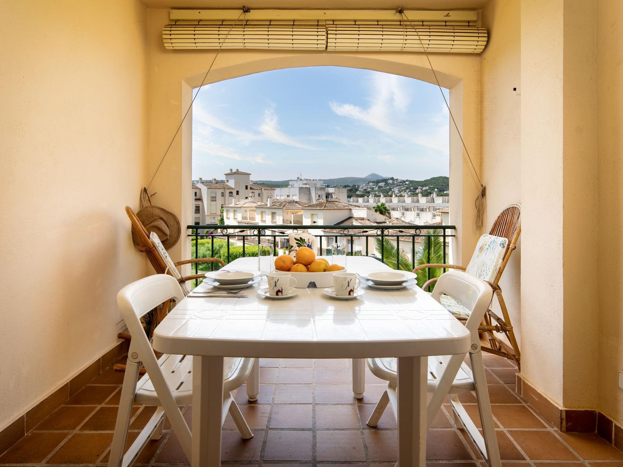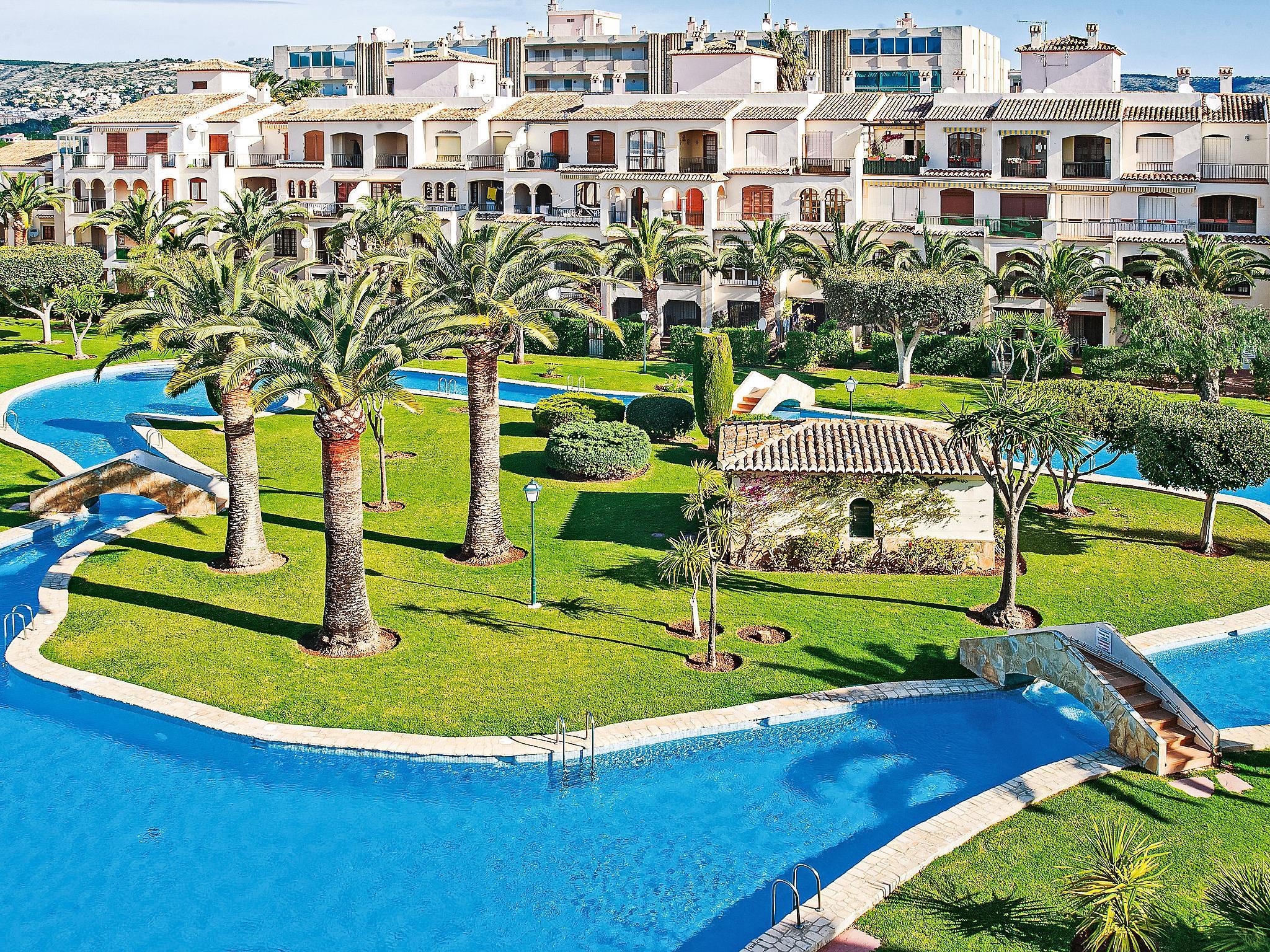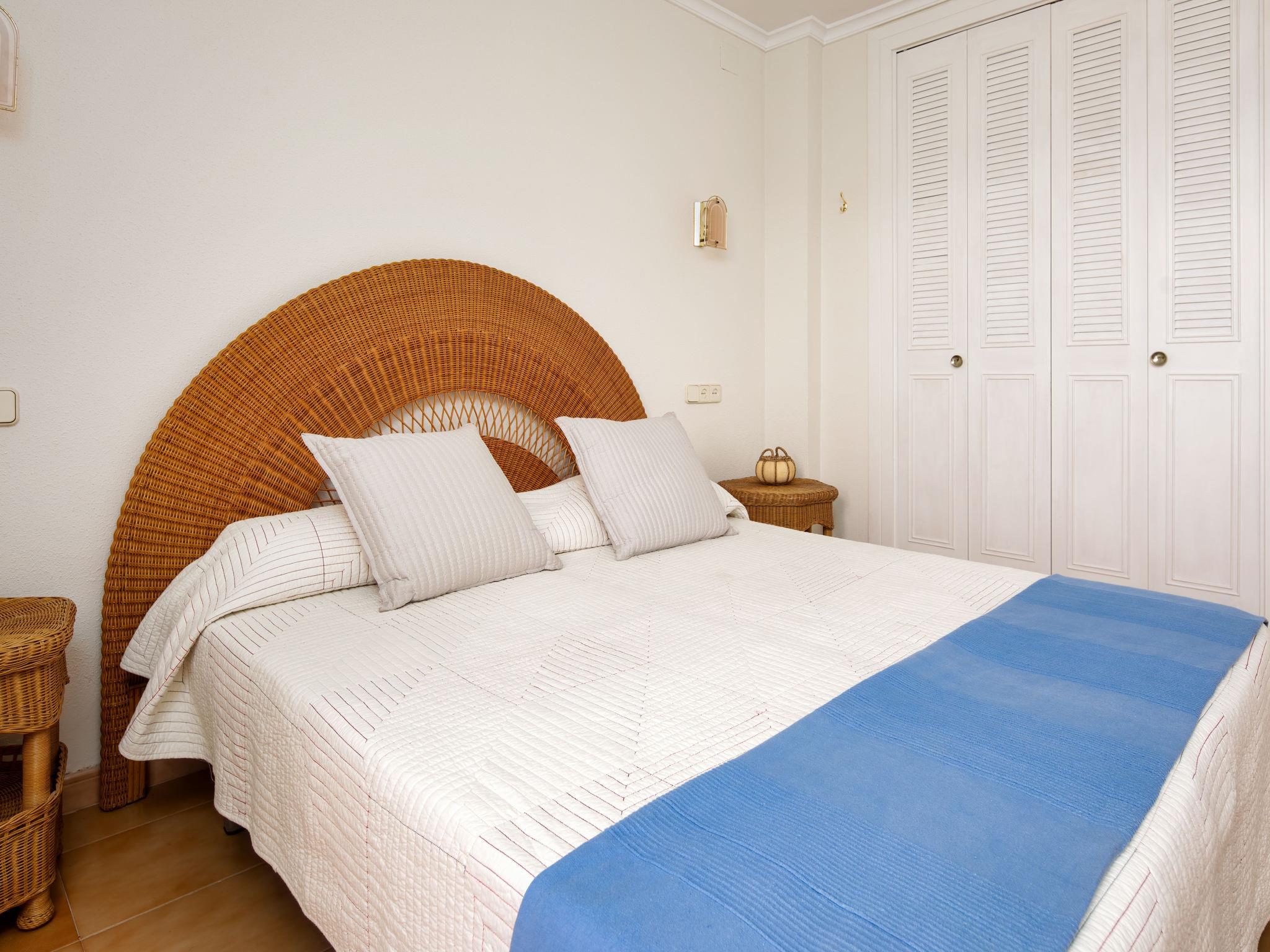 "La Isla C12", 3-room apartment 70 m2 on 3rd floor. Bright, comfortable and cosy furnishings: living/dining room with digital TV and fan. Exit to the terrace. 1 room with 2 beds (80 cm, length 190 cm), fan. Exit to the terrace. 1 room with 1 french bed (140 cm, length 190 cm), fan. Kitchen (oven, dishwasher, toaster, microwave, freezer, electric coffee machine). Bath/WC, shower/WC. Air-conditioning, forced-air heating. Terrace. Terrace furniture. Marvellous view of the valley, the swimming pool and the garden. Facilities: washing machine, iron, hair dryer. Internet (WiFi, free). Parking. Please note: TV only ES. VT-496675-A // Reg. Nr.: ESFCTU00000307100037592100000000000000000VT-496675-A4