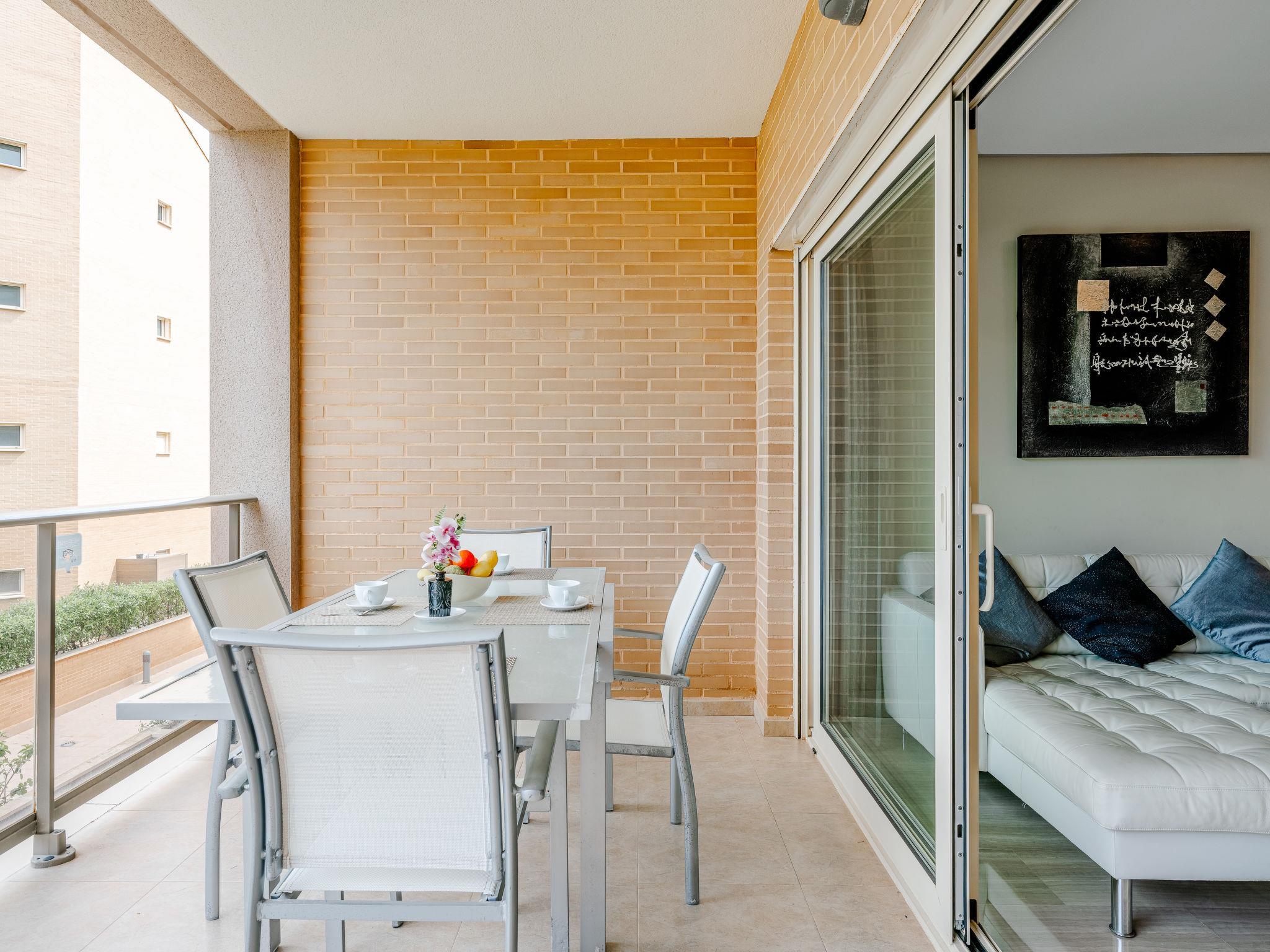 Large, very modern, very luxurious apartment block "Marmara Luxury First Line", 4 storeys. In the district of El Arenal - Javea, in a central, quiet, sunny position, 100 m from the sea, road to cross. For shared use: large, beautiful, well-kept garden (fenced) with lawn and plants, swimming pool (22 x 20 m, depth 80 - 210 cm, seasonal availability: 01.Jan. - 31.Dec.) with internal staircase. Unconventional pool shape. Children's pool, outdoor shower, children's playground (swing). In the house: internet access, lift. Communal covered parking. Supermarket 300 m, restaurant, bakery 50 m, bus stop "viejo MasYMas" 150 m, sandy beach "Arenal" 100 m. Surf school, sailing school, tennis 100 m. The owner does not accept any youth groups.