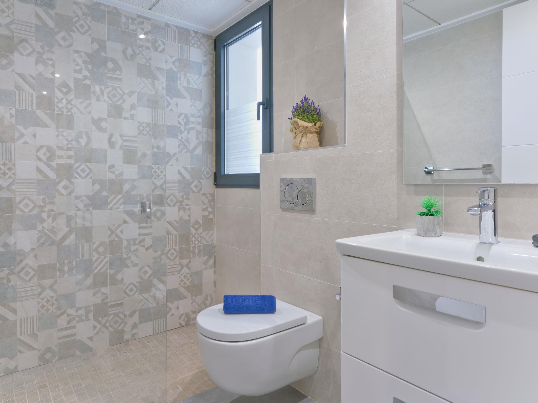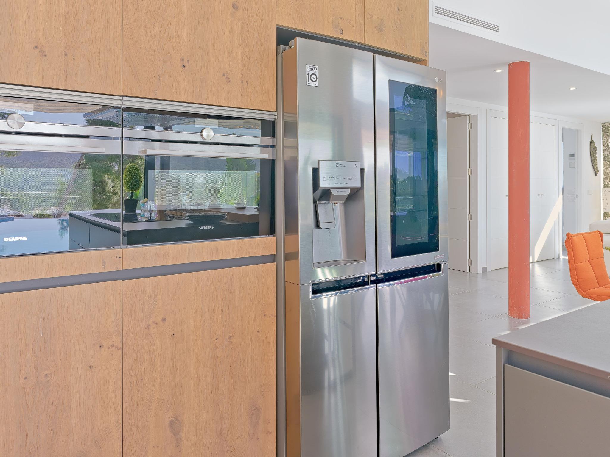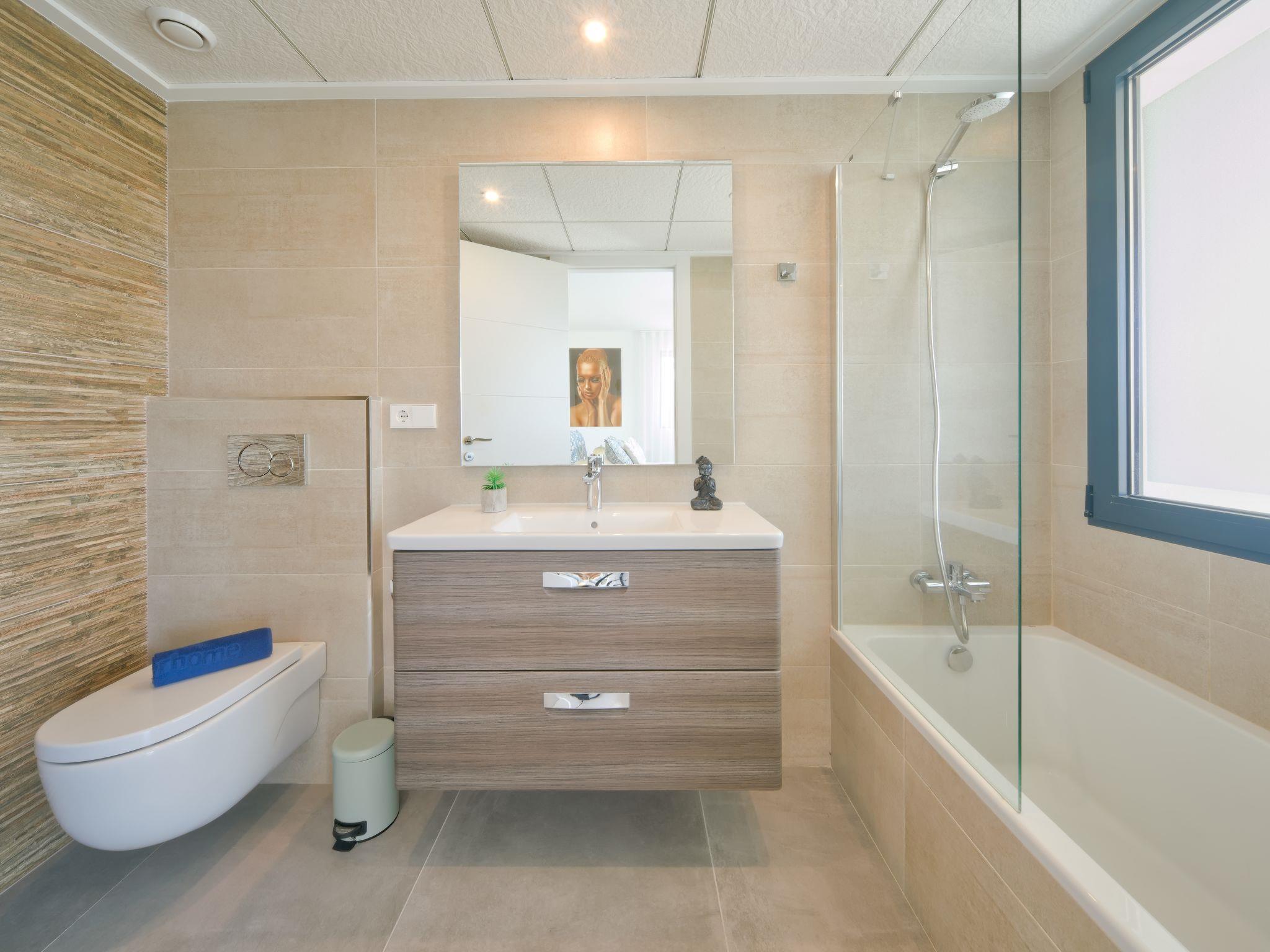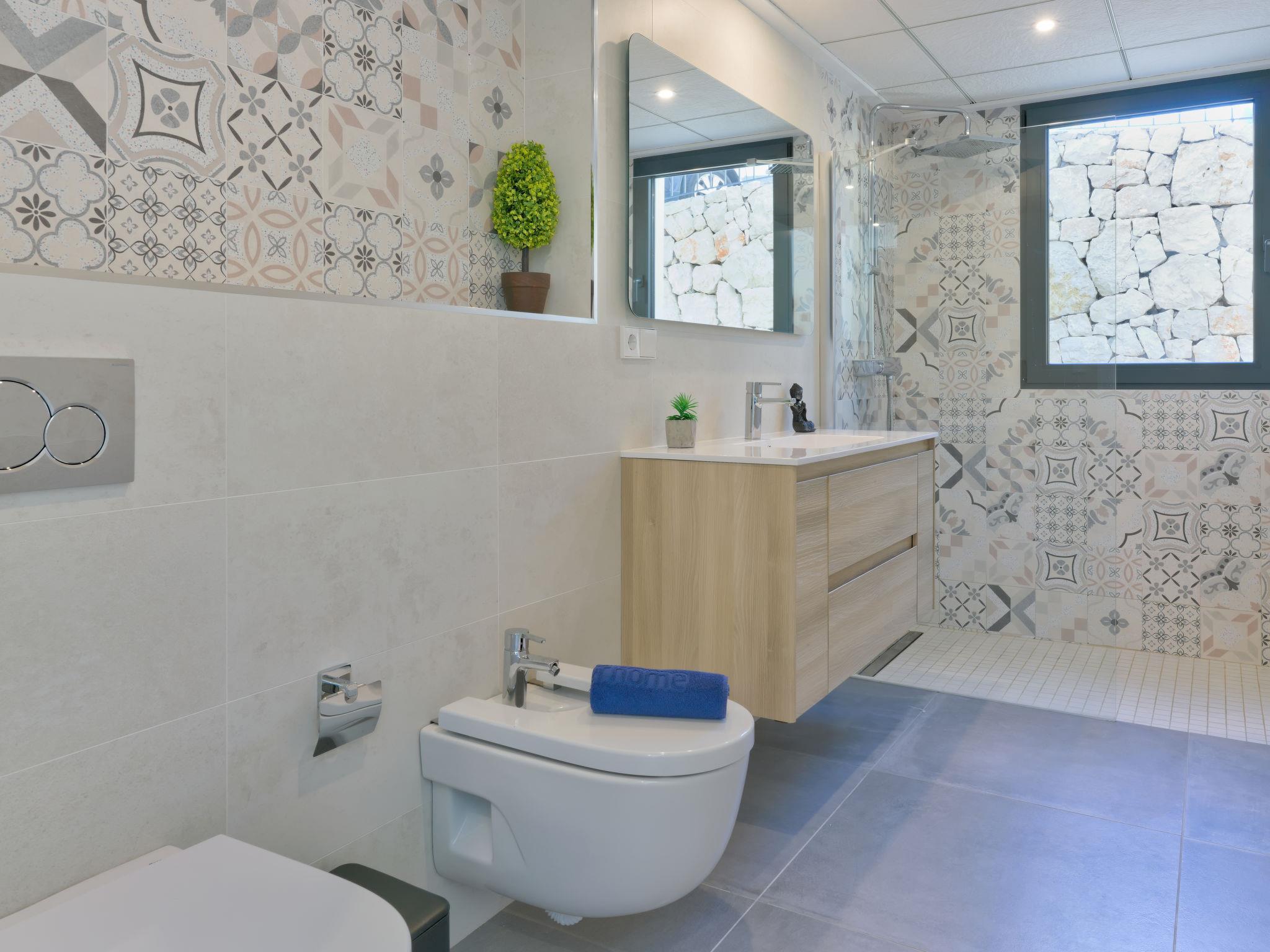 Very large, very modern, comfortable villa "Juno", 3 storeys. In the district of Capsades, in a quiet, sunny position, 2.9 km from the sea, 2.9 km from the beach. Private: swimming pool heated (10 x 9 m, depth 40 - 190 cm, seasonal availability: 01.Jan. - 31.Dec.) with salt water and internal staircase. Unconventional pool shape. Outdoor shower, pergola, garden furniture, barbecue, parking (for 6 cars) on the premises. Supermarket 2.2 km, restaurant 2 km, café 2.5 km, bus stop 3 km, sandy beach "El Arenal" 1.9 km, shingle beach "La Granadella" 9 km, rocky beach "Cala Blanca Segundo Muntanyar" 3.9 km. Sports harbour 2.2 km, marina 2.2 km, golf course (9 hole) 4.8 km, surf school 2.2 km, sailing school 2.2 km, tennis 2 km. The owner does not accept any youth groups.