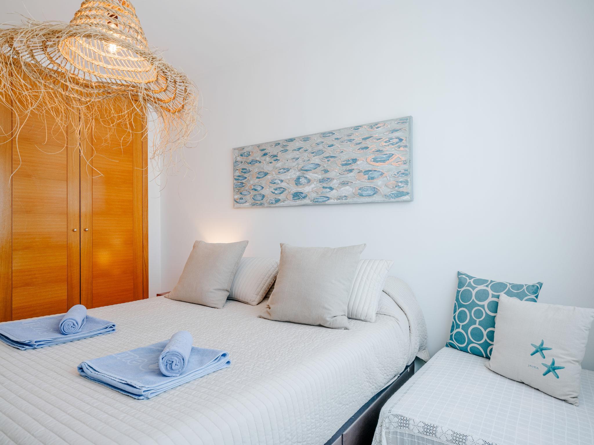 "Moreras de Saladar", 3-room apartment 90 m2. Spacious and bright, very beautiful and stylish furnishings: living/dining room with digital TV, air conditioning and forced-air heating. Exit to the terrace. 1 room with 1 french bed (160 cm, length 200 cm), air conditioning and forced-air heating. Exit to the terrace. 1 room with 1 french bed (160 cm, length 200 cm), air conditioning and forced-air heating. Open kitchen (oven, dishwasher, 4 induction hot plates, toaster, kettle, microwave, electric coffee machine, Capsules for coffee machine (Dolce Gusto) extra) with air conditioning and forced-air heating. Shower/WC. Large terrace. Terrace furniture. Marvellous view of the swimming pool, the garden and the resort. Facilities: washing machine, iron, hair dryer. Internet (WiFi, free). R00000001 // Reg. Nr.: ESFCNT00000307100054243900000000000000000000000000007