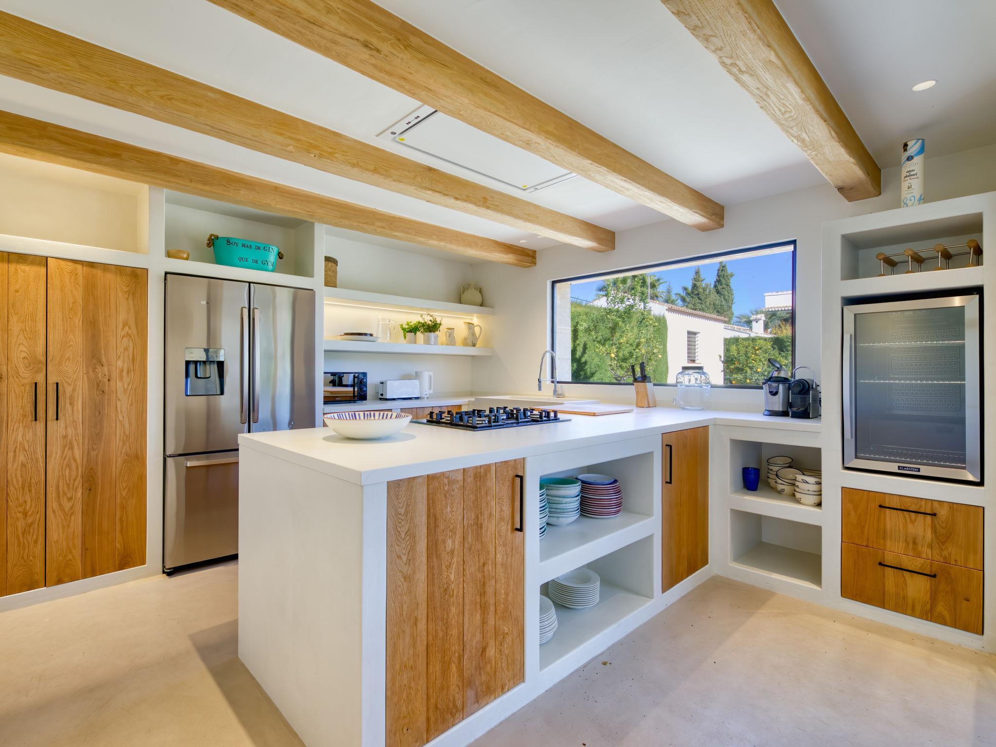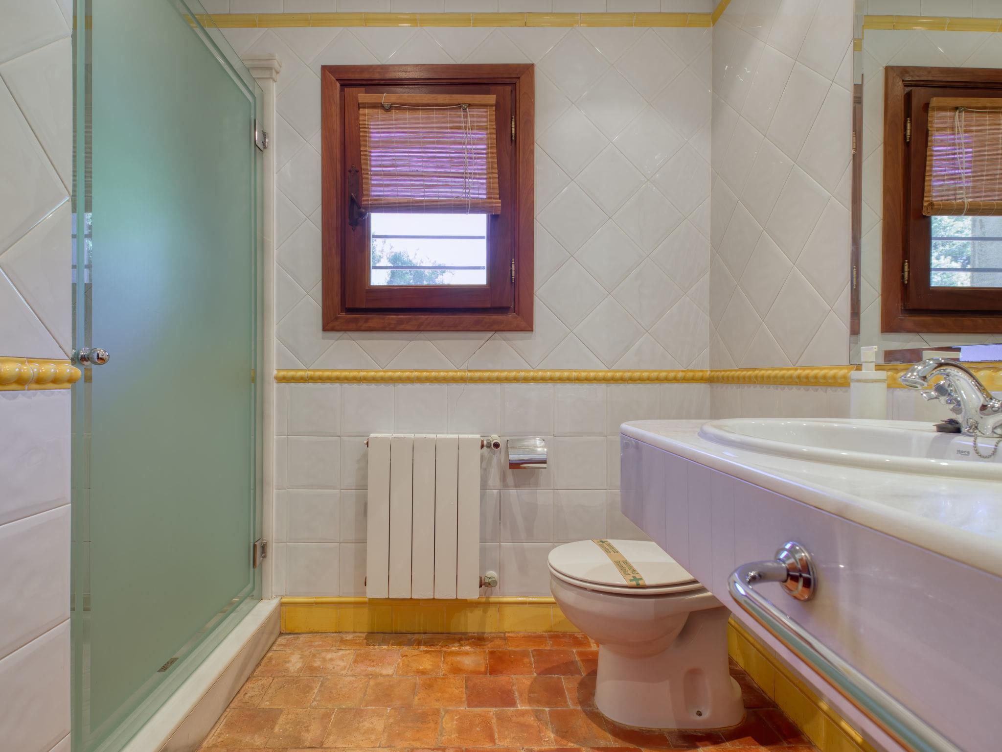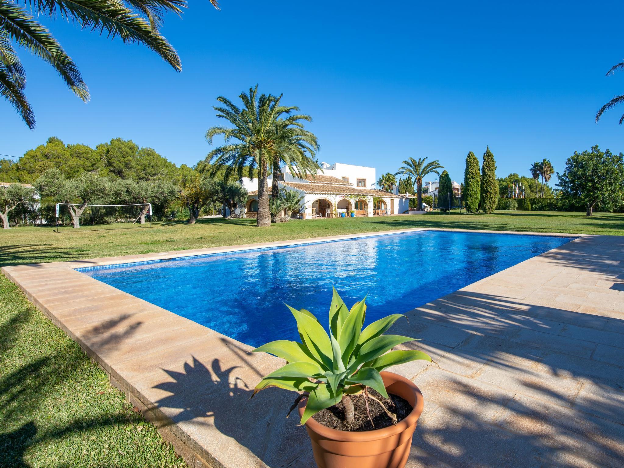 Rustic country house "El Torrero", 2 storeys. In the district of Alborada, in a quiet, sunny position residential area (villas), 5 km from the sea. Private: property 6'000 m2 (fenced), beautiful, well-kept garden (fenced) with lawn and wildlife garden, swimming pool with privacy (7 x 14 m, depth 110 - 210 cm, seasonal availability: 01.Jan. - 31.Dec.) with internal staircase. WC in the pool area, table tennis, garden furniture, barbecue. In the house: central heating system, washing machine. Supermarket 800 m, restaurant 1 km, bus stop 5 km, sandy beach "Arenal" 5 km. Golf course (9 hole) 1 km, tennis 1 km. The owner does not accept any youth groups.