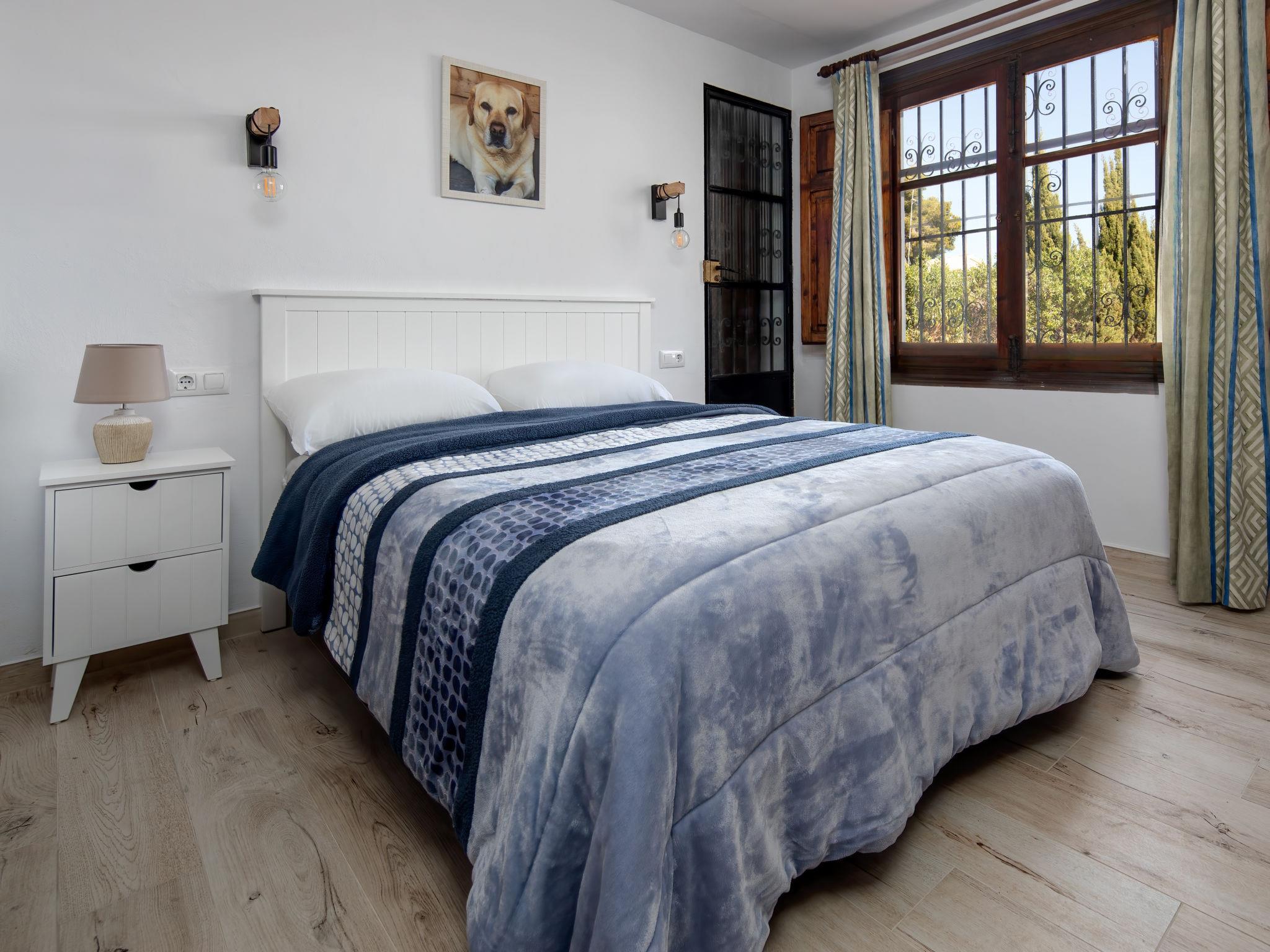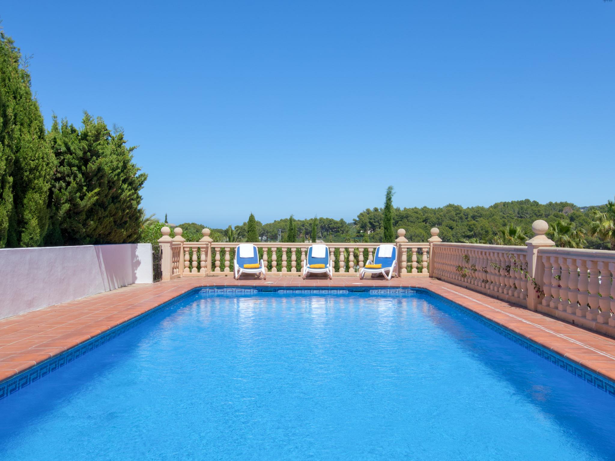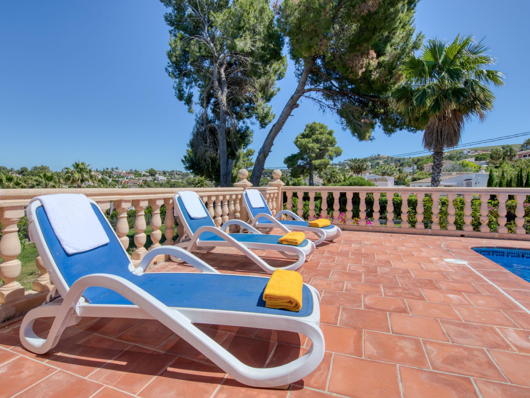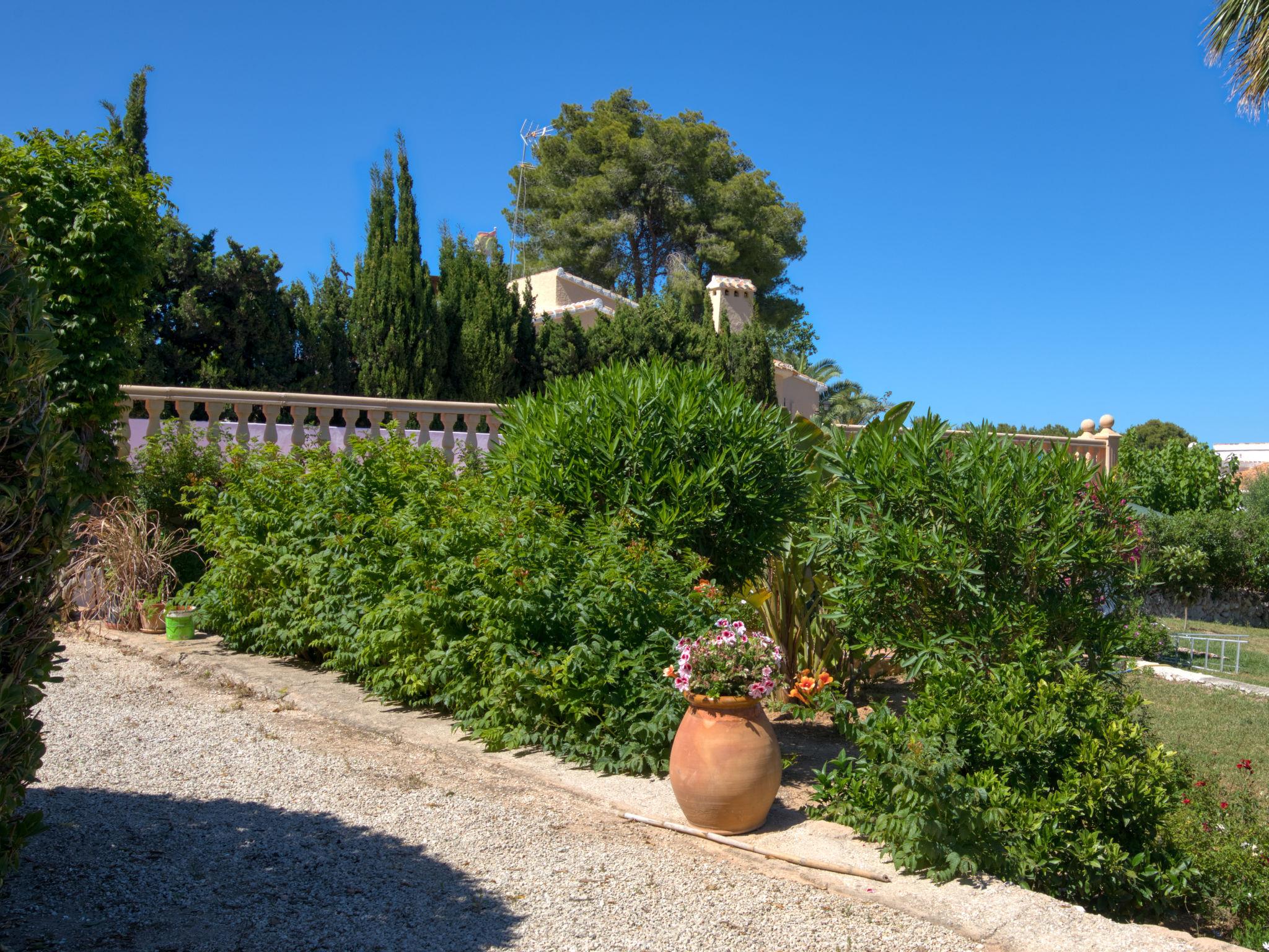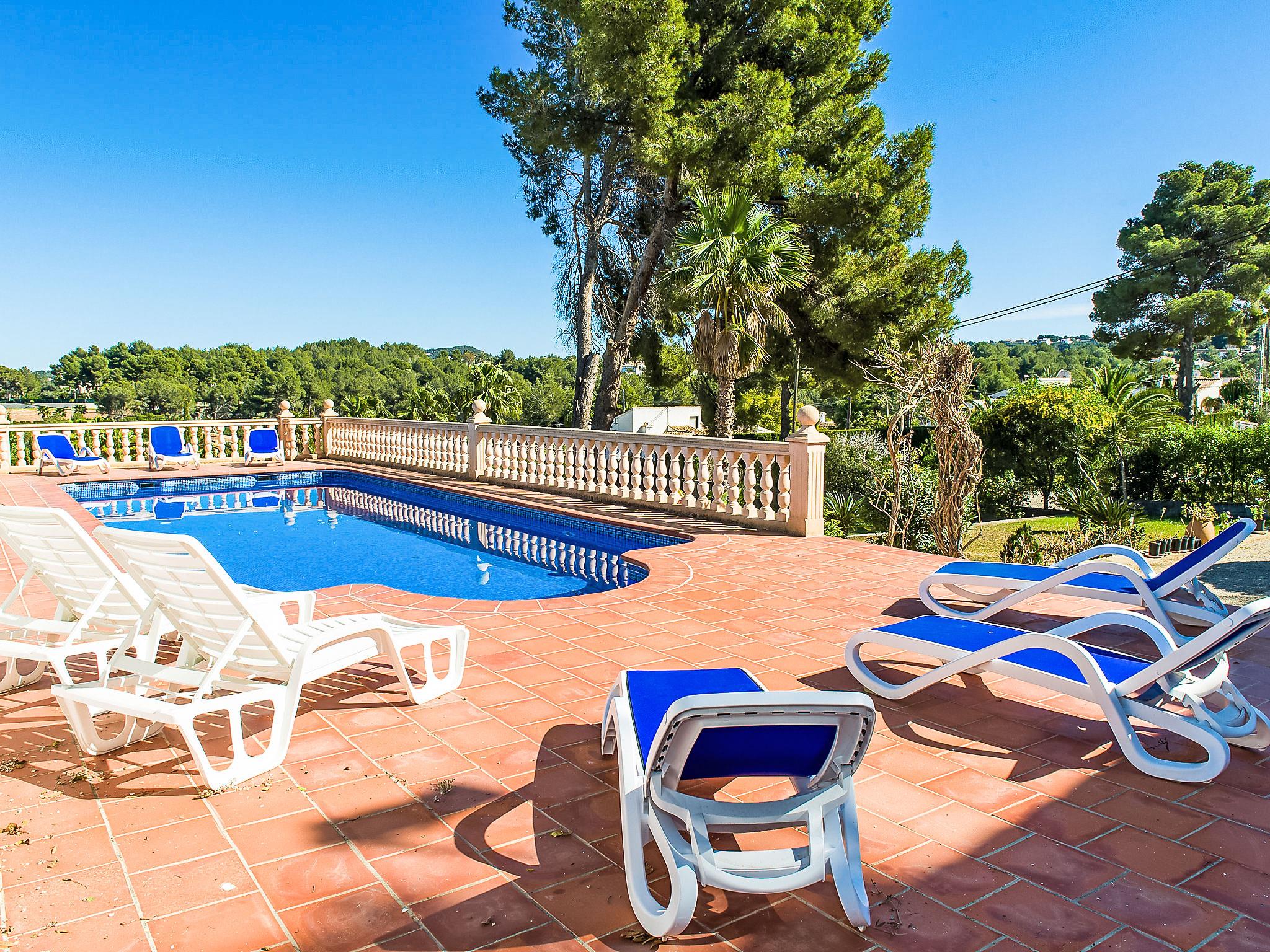 House "Cala Vista". In the district of Adsubia, in a quiet, sunny position, 3 km from the sea, in a cul-de-sac. Private: garden 2'500 m2 with lawn and wildlife garden, swimming pool (4 x 10 m, seasonal availability: 01.Jan. - 31.Dec.) with internal staircase. Supermarket 2 km, restaurant 2.5 km, bus stop 3 km, sandy beach "Arenal" 3 km. The owner does not accept any youth groups.
