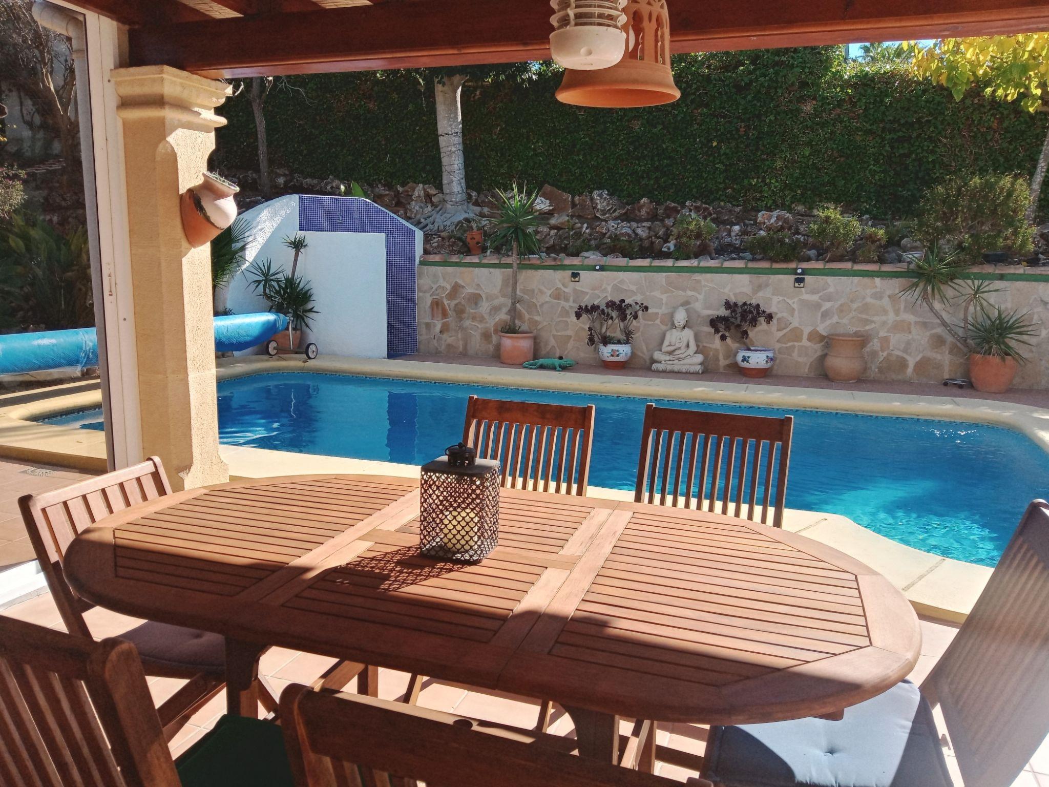 The accomodation is on the lower part of the house. House "Bosque". In the district of Covatelles, in a quiet, sunny position, 8 km from the sea. Private: garden 1'080 m2 (fenced) with swimming pool (4 x 8 m, seasonal availability: 01.Jan. - 31.Dec.) with internal staircase. Outdoor shower. In the house: central heating system. Supermarket 3 km, restaurant 1.5 km, bus stop 6 km, sandy beach "Arenal" 8 km. Golf course (9 hole) 3 km. Groups of teenagers on request only. Please note: 1st floor is closed and not occupied.