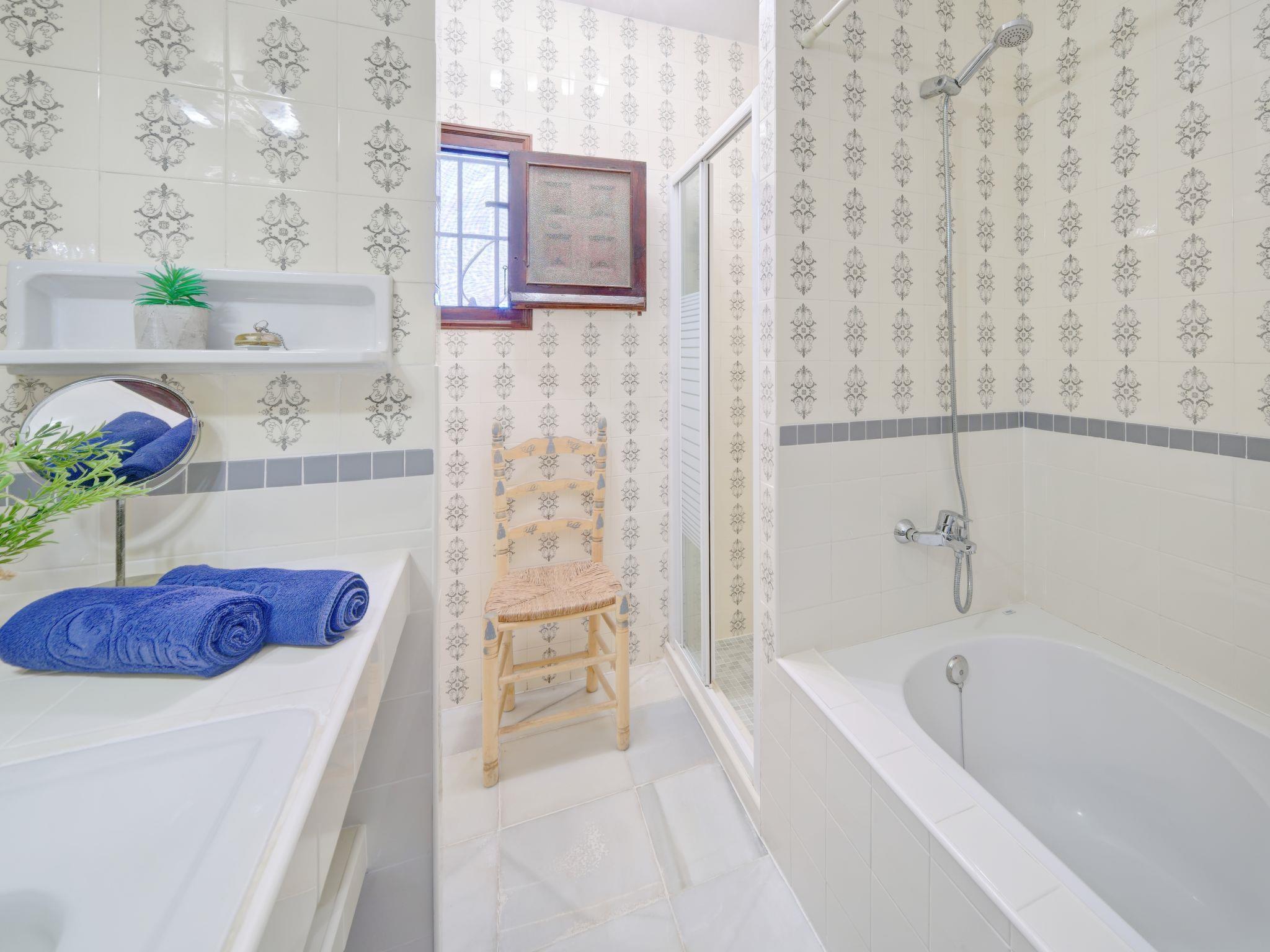 "El Cachirulo", 5-room house 150 m2 on 2 levels. Simple and practical furnishings: living room with TV, air conditioning and forced-air heating. 2 rooms, each room with 2 beds (90 cm, length 200 cm). 1 room with 1 double bed (2 x 90 cm, length 200 cm), shower/WC, air conditioning and forced-air heating. Exit to the patio. Kitchen (oven, dishwasher, 3 gas rings, toaster, kettle, microwave, freezer, electric coffee machine). Sep. WC, bath/shower/WC. Upper floor: (spiral staircase), 1 room with 1 double bed (2 x 90 cm, length 200 cm), bath/WC and double hand-basin. Large terrace. Terrace furniture, deck chairs (4), sitting area. Facilities: washing machine, iron, hair dryer. Internet (WiFi, free). Parking (roofed, 2 cars). Please note: TV only FR. VT-506966-A // Reg. Nr.: ESFCTU00000307100018979500000000000000000VT-506966-A1