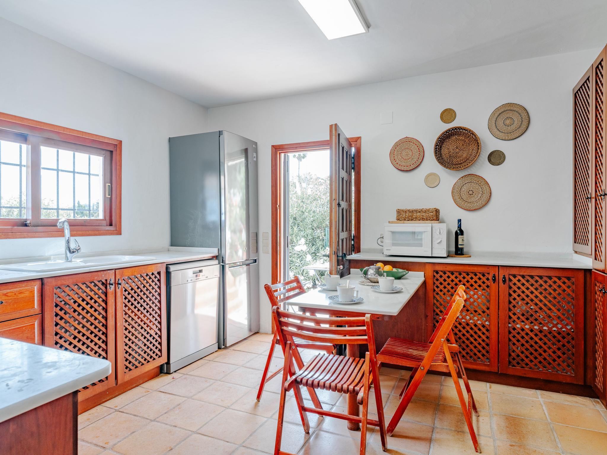 Large, beautiful house "Villa Pomelo Plus", 2 storeys. In the district of Tosalet, in a quiet, sunny position residential area (villas), 2.7 km from the sea, 2.7 km from the beach. Private: large, beautiful, well-kept terraced garden, swimming pool angular (8 x 4 m, depth 40 - 210 cm, seasonal availability: 01.Jan. - 31.Dec.) with internal staircase. Outdoor shower, pergola, garden furniture, barbecue. In the house: table tennis. Stepped path to the house. Parking on the premises. Supermarket 2.3 km, restaurant 2.3 km, café 2.3 km, bus stop 3 km, sandy beach "El Arenal" 3.4 km, rocky beach "Cala Blanca" 2.7 km. Sports harbour 4 km, surf school 3.4 km, tennis 3.5 km. The owner does not accept any youth groups.