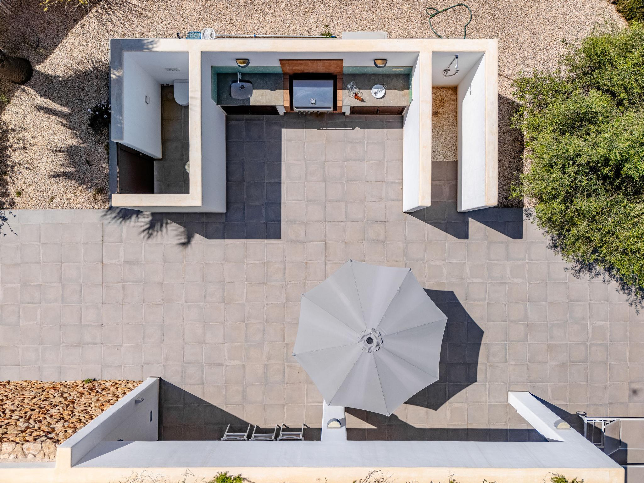 Very modern, luxurious villa "Xicoria", 3 storeys. In the district of Portixol, in a quiet, sunny position residential area (villas), 1 km from the sea. Private: garden 1'000 m2 (fenced) with wildlife garden, swimming pool (8 x 8 m, seasonal availability: 01.Jan. - 31.Dec.) with internal staircase. WC in the pool area, outdoor shower. In the house: air conditioning, burglar alarm system. Supermarket 1.5 km, restaurant 500 m, bus stop 5 km, sandy beach "Arenal" 2.5 km. Groups of teenagers on request only.