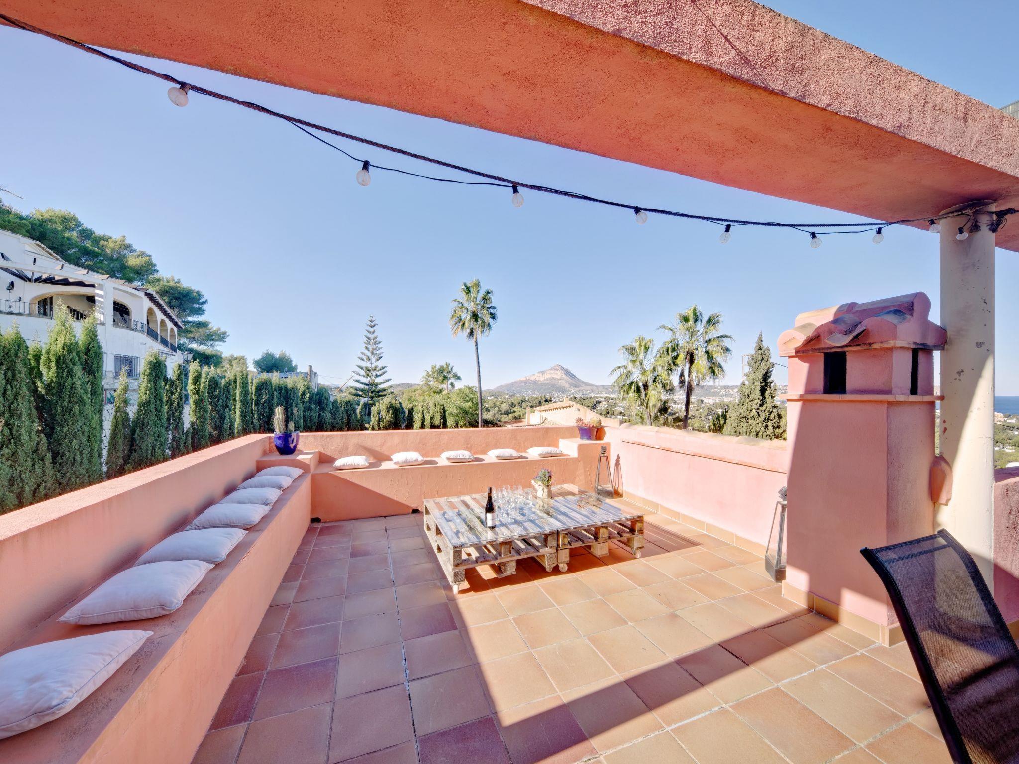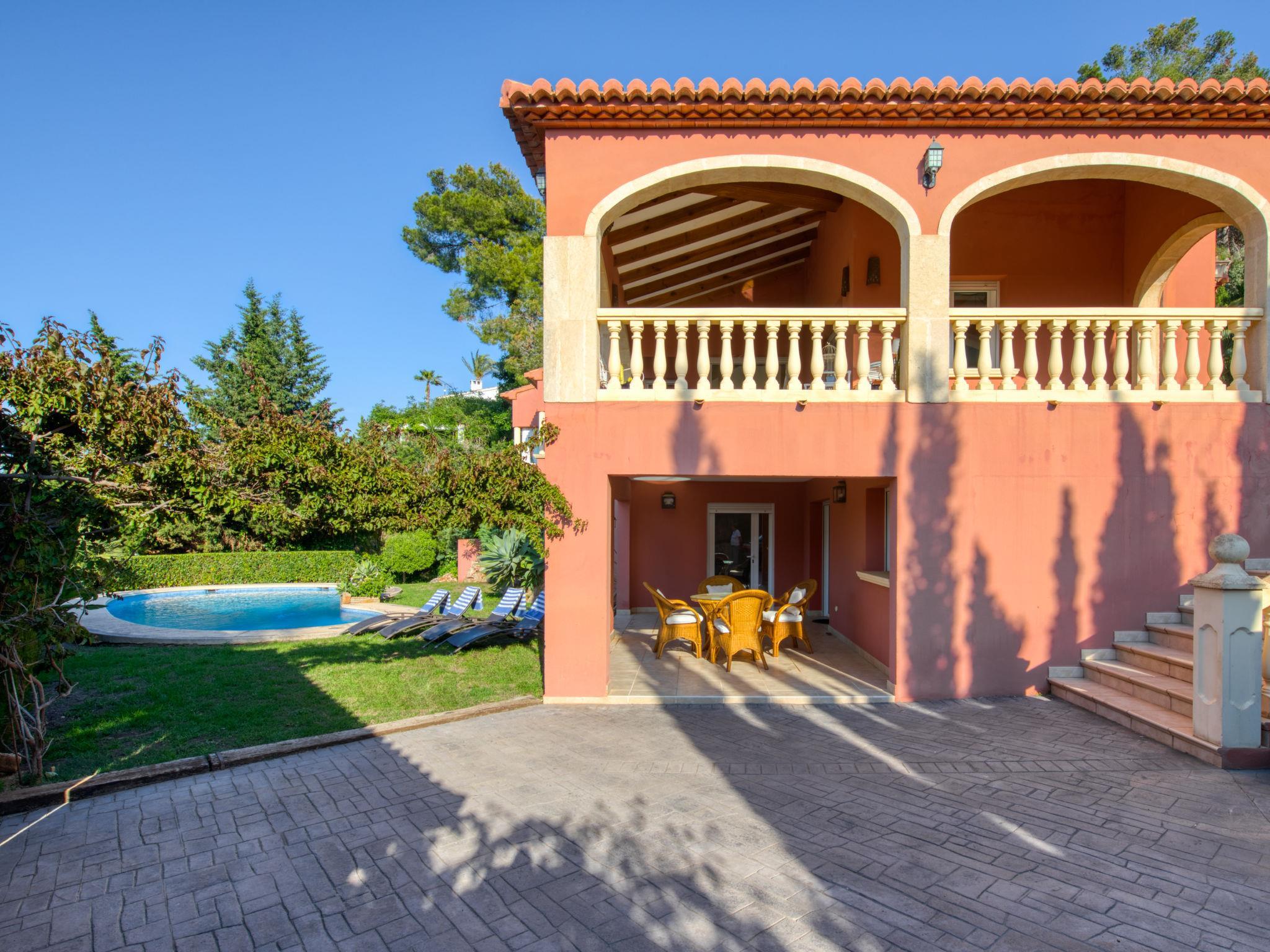 Large, very beautiful villa "Chill Out on the Sea". In the district of Cap Marti, in the resort Jávea, in a quiet, sunny position, 2 km from the sea. Private: garden 1'000 m2 (fenced) with lawn and trees, swimming pool (11 x 5 m, depth 120 - 180 cm, seasonal availability: 01.Jan. - 31.Dec.). Garden furniture, parking (for 2 cars) on the premises. Supermarket 1.8 km, restaurant 1.5 km, bakery 1.5 km, café 1.4 km, bus stop 2 km, sandy beach "El Arenal" 2 km, shingle beach "La Granadella" 6 km. Sports harbour 3.5 km, marina 2 km, golf course (9 hole) 5 km, sailing school 2 km, tennis 2.1 km. Please note: car recommended. The owner does not accept any youth groups.