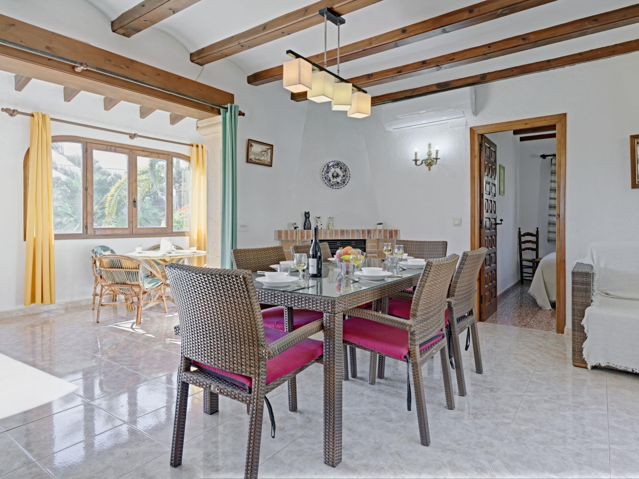 5-room house 125 m2. Practical furnishings: living/dining room with open-hearth fireplace, TV, cable TV and air conditioning. Exit to the garden, to the balcony, to the swimming pool. 1 room with 1 french bed (150 cm, length 190 cm). 2 rooms, each room with 2 beds (90 cm, length 190 cm). 1 room with 1 bed (90 cm, length 190 cm). Kitchen (oven, dishwasher, 4 ceramic glass hob hotplates, toaster, kettle, microwave, freezer, electric coffee machine, Capsules for coffee machine (Nespreso)). 2 showers/WC, sep. WC. Large terrace 60 m2. Terrace furniture, barbecue, deck chairs (4). Facilities: washing machine, iron, children's high chair, baby cot for up to 2 year olds, hair dryer. Internet (WiFi, free). Garage at the house. Please note: maximum 1 pet/ dog allowed. TV only ES. AT-004564-A // Reg. Nr.: ESFCTU0000030710002296130000000000000CV-VUT0004564-A0