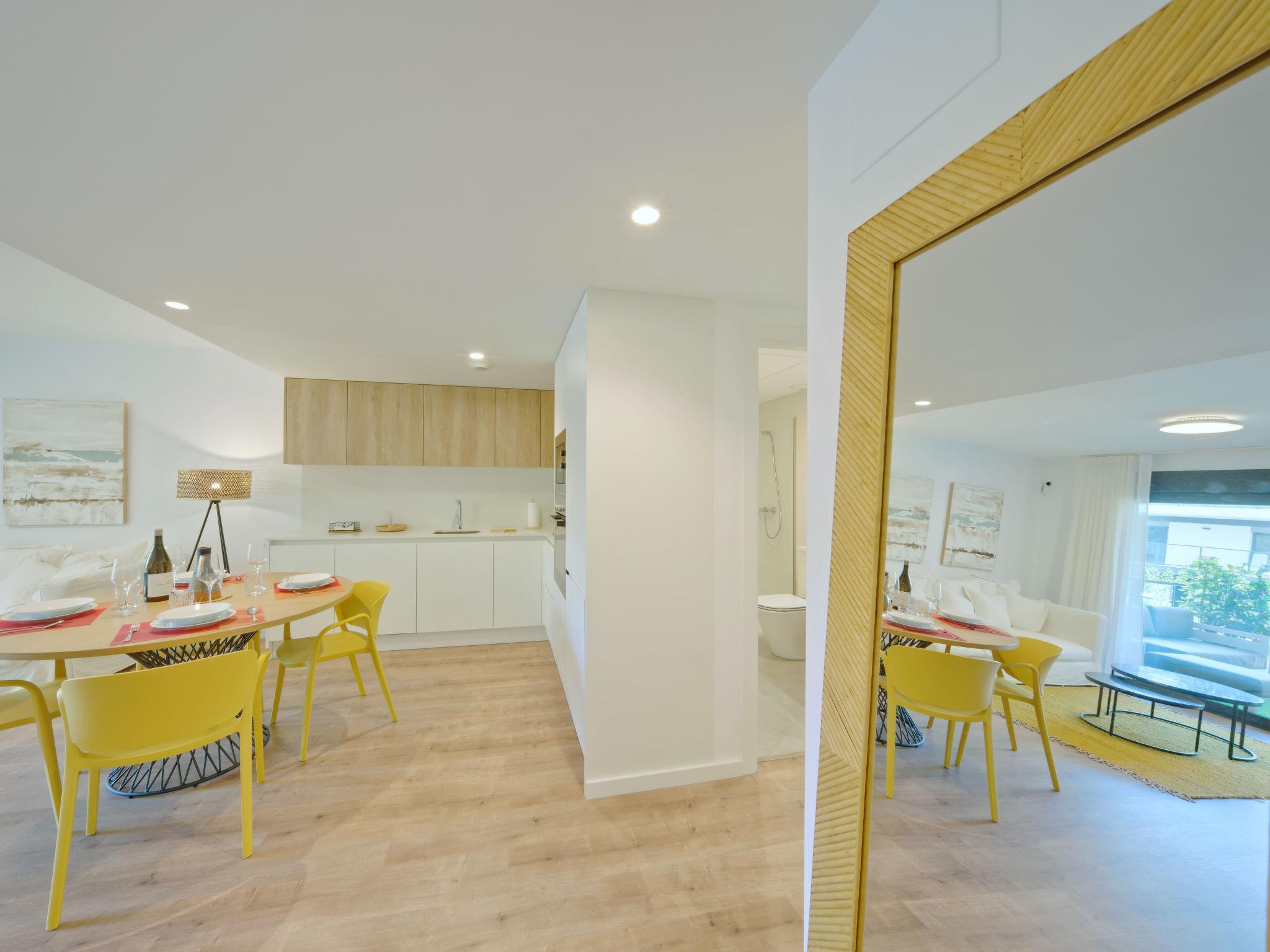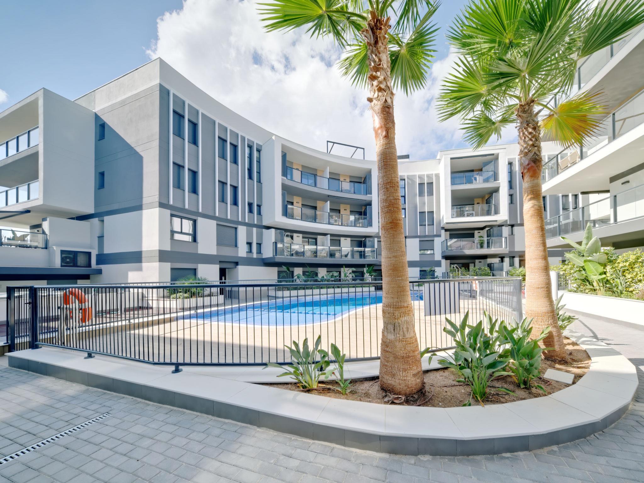 Very large, very modern, very comfortable apartment block "Essential Javea", built in 2023. In the resort Jávea, 1.1 km from the sea, 1.1 km from the beach. Plants and trees. For shared use: swimming pool (15 x 8 m, depth 40 - 180 cm, seasonal availability: 01.Jan. - 31.Dec.) with internal staircase. Unconventional pool shape. Outdoor shower, children's playground (slide). In the house: lift. Communal covered parking. Supermarket 180 m, restaurant 300 m, bar 150 m, bus stop "Estacion de Autobuses" 700 m, sandy beach "El Arenal" 2.5 km, shingle beach "Playa de la Grava Port Javea" 1.1 km. Sports harbour 1.5 km, surf school 1.2 km, sailing school 1.2 km, tennis 2.3 km. The owner does not accept any youth groups.