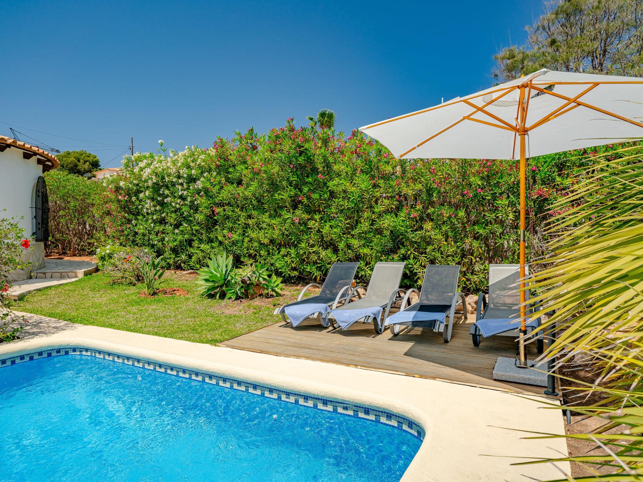 Very large, very beautiful house "Villa Los Amigos", 2 storeys. In the district of Balcón al Mar - Javea, in a quiet, sunny position, 150 m from the sea, 3.4 km from the beach. Private: large, beautiful, well-kept garden, swimming pool angular (10 x 5 m, depth 80 - 180 cm, seasonal availability: 01.Jan. - 31.Dec.). Outdoor shower, pergola, garden furniture, parking, single garage. Supermarket, restaurant 700 m, bakery 900 m, café 750 m, bus stop 5 km, sandy beach "El Arenal" 6.4 km, shingle beach "Cala Portitxol" 3.4 km. Sports harbour 7 km, golf course (18 hole) 9.7 km, surf school 7 km, tennis 750 m. The owner does not accept any youth groups.