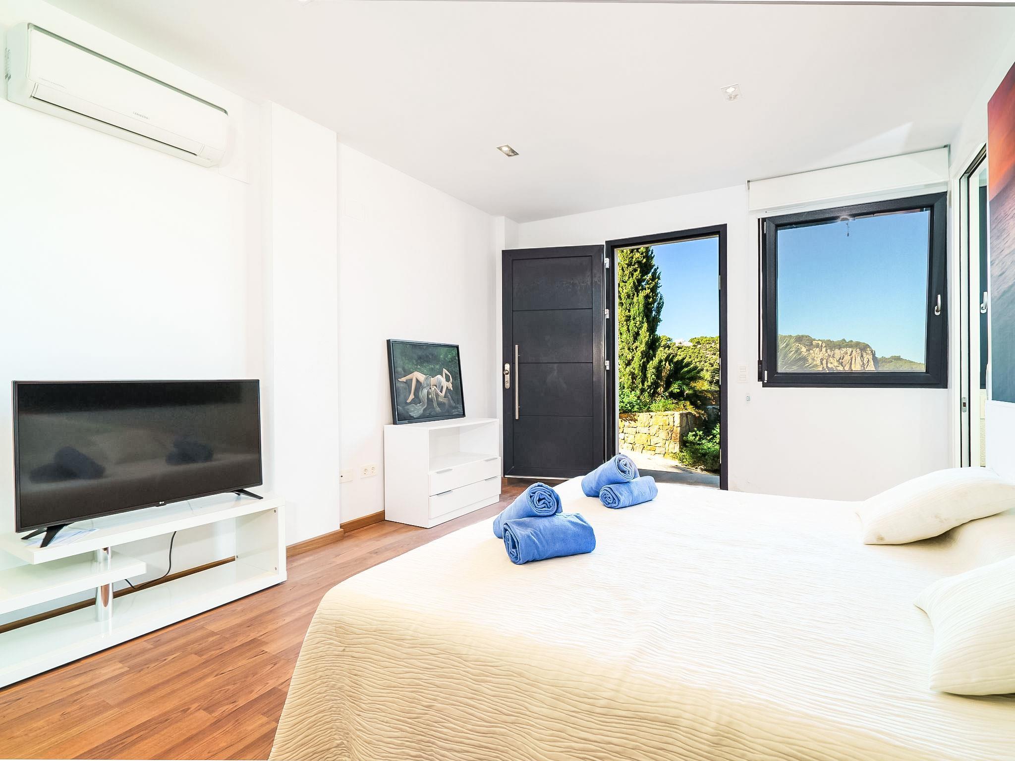 4-room villa 280 m2. Modern and tasteful furnishings: living/dining room with open-hearth fireplace and satellite TV (flat screen), air conditioning. Exit to the terrace. 1 room with 1 french bed. Large, open kitchen (oven, dishwasher, 3 induction hot plates, microwave, freezer). Shower/WC. On the lower ground floor: (exterior staircase), 1 large room with Dressing room with 1 french bed, shower/WC and satellite TV (flat screen), air conditioning. Upper floor: 1 large room with 1 french bed, shower/WC, double hand-basin and satellite TV (flat screen), air conditioning. Exit to the terrace. Large terrace roofed. Terrace furniture, barbecue, deck chairs (2). Marvellous panoramic view of the sea. Facilities: washing machine. Internet (WiFi, free). Parking (fenced 2 cars) at the house. AT-459703-A // Reg. Nr.: ESFCTU00000307100033041800000000000000000AT-459703-A8