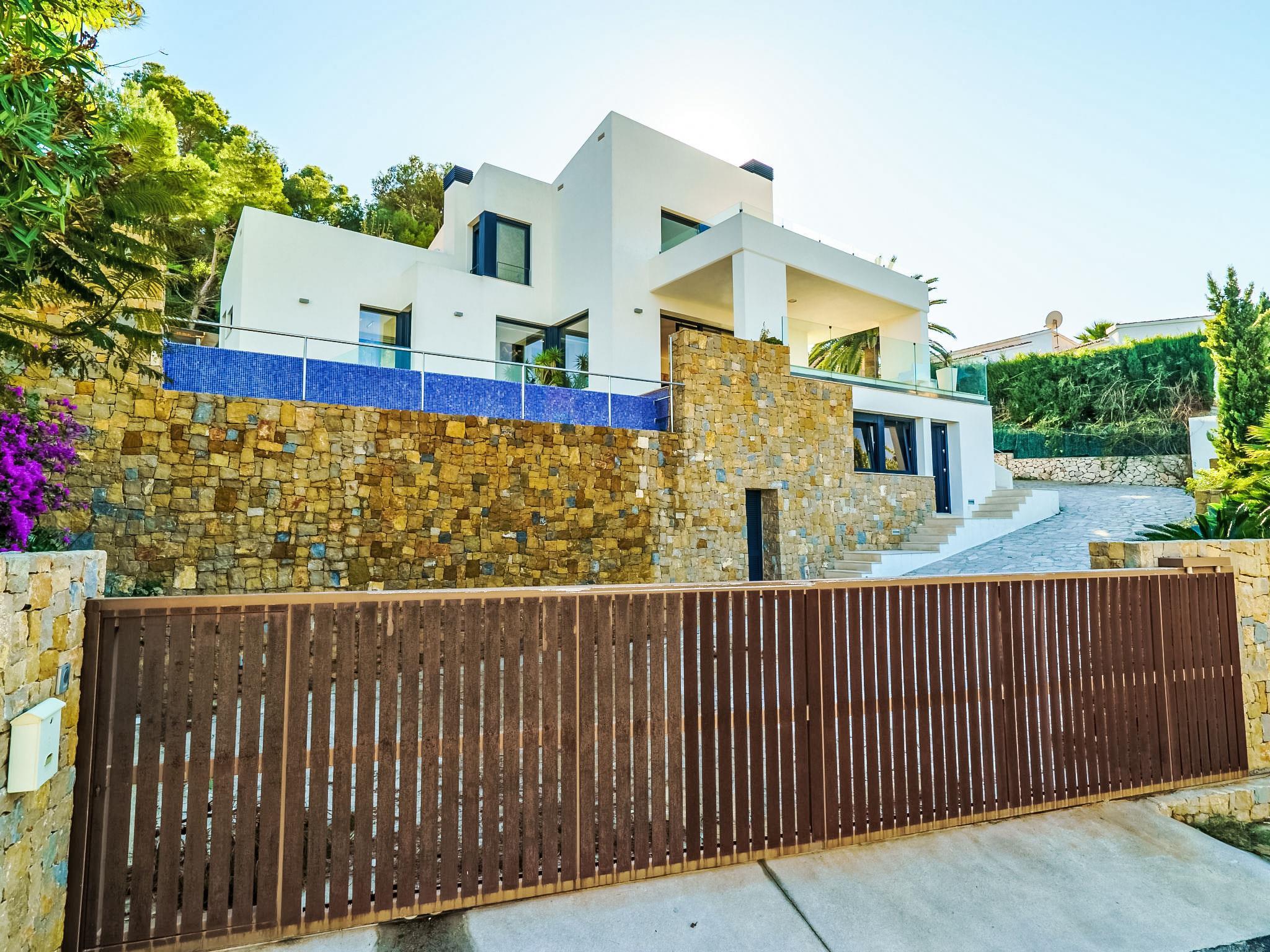 Modern, luxurious villa "Solymar", 3 storeys. In the district of Balcón al Mar, in a quiet, sunny position, 5 km from the sea. Private: garden 800 m2 (fenced) with wildlife garden, swimming pool (4 x 8 m, seasonal availability: 01.Jan. - 31.Dec.) with internal staircase. Shower/WC in the pool area. Supermarket 6 km, restaurant 1.3 km, bus stop 8 km, sandy beach "Arenal" 8 km, rocky beach "Granadella" 5 km. Groups of teenagers on request only.