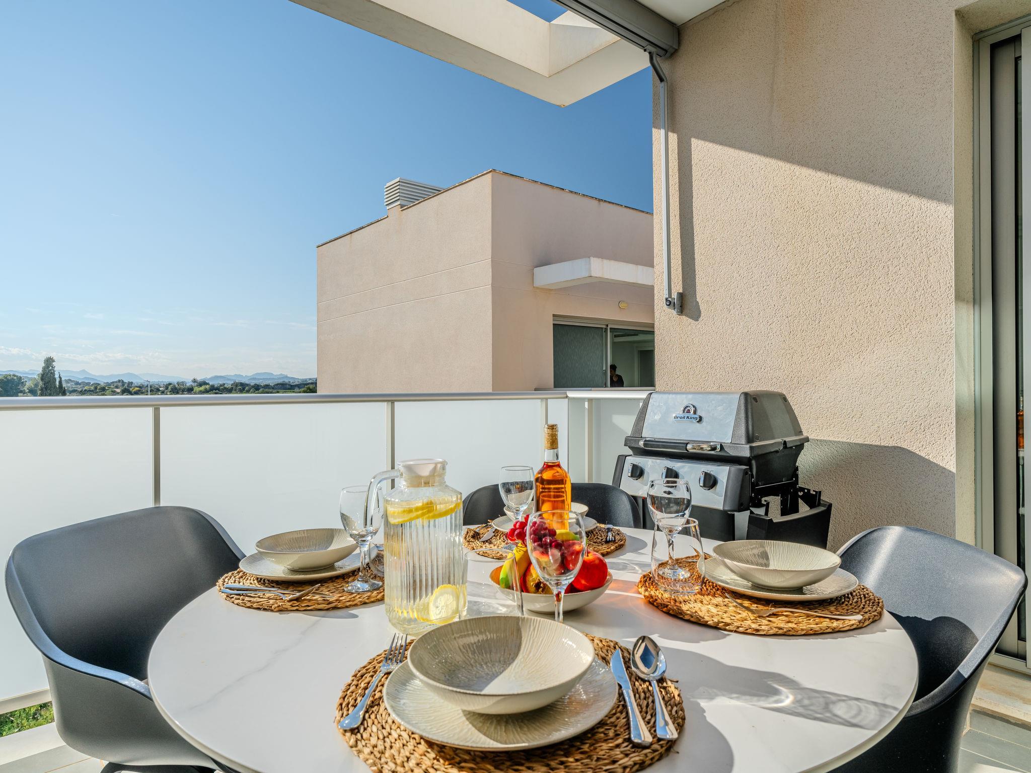 "Arenal Boutique Suite", 5-room maisonette 140 m2 on 2 levels. Spacious and bright, very beautiful and stylish furnishings: living/dining room with digital TV, air conditioning and forced-air heating. Exit to the terrace. 1 room with 1 french bed (180 cm, length 200 cm), shower/WC, double hand-basin, air conditioning and forced-air heating. 1 room with 1 double bed (2 x 90 cm, length 200 cm), air conditioning and forced-air heating. Exit to the terrace. 1 room with 1 double bed (2 x 90 cm, length 200 cm), air conditioning and forced-air heating. Open kitchen (oven, dishwasher, 3 ceramic glass hob hotplates, toaster, kettle, microwave, freezer, electric coffee machine, Capsules for coffee machine (Dolce Gusto)). Bath/WC. Upper floor: lounge with air conditioning and forced-air heating. Exit to the terrace. Shower/WC. Large balcony 50 m2, balcony 10 m2. Terrace furniture, barbecue, deck chairs, covered balcony, sitting area. Very beautiful view of the valley. Facilities: washing machine, iron, hair dryer. Internet (WiFi, free). Garage space n 22. Please note: Only Streaming-TV. R00000001