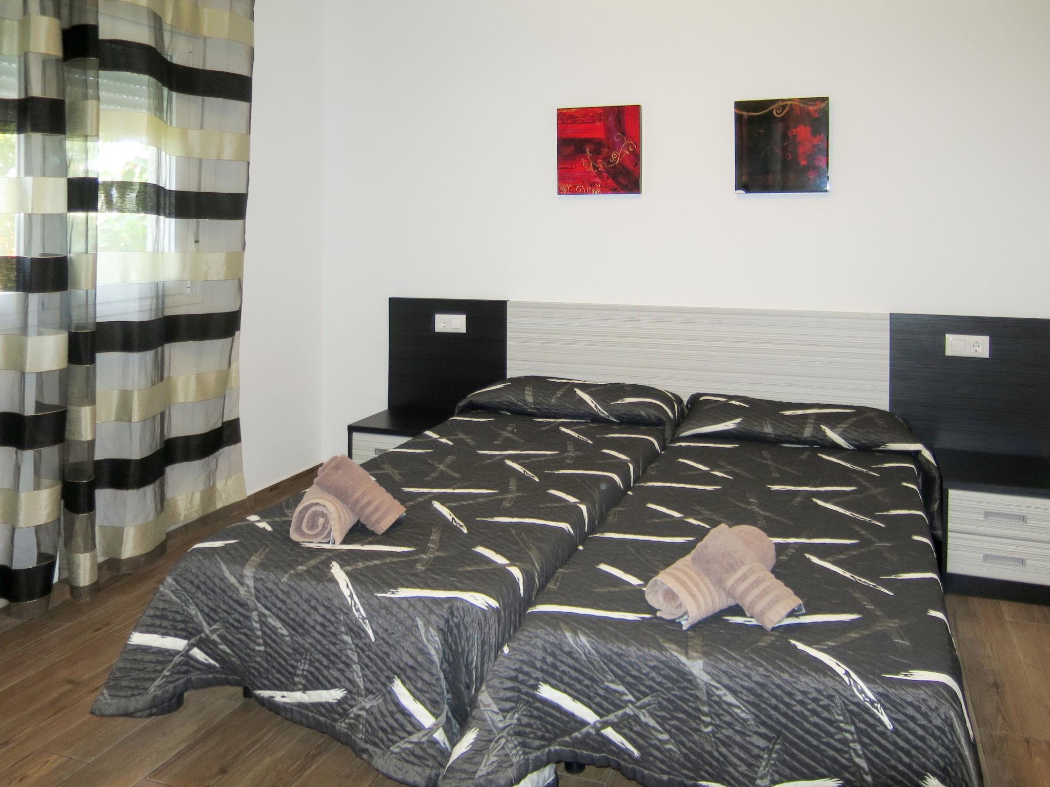 "Ayora", 7-room house 220 m2 on 3 levels. Beautiful and modern furnishings: living/dining room with dining table and satellite TV (flat screen). Kitchen (oven, dishwasher, 4 ceramic glass hob hotplates, toaster, kettle, microwave, freezer, electric coffee machine). Shower/WC. On the lower ground floor: 2 rooms, each room with 2 beds. 1 room with 1 french bed (135 cm), shower/WC. 1 room with 1 french bed (135 cm), bath/WC. 1 room with 1 french bed (135 cm), shower/WC. Shower/WC. No heating option. Upper floor: 1 room with 2 beds and shower/WC. 2 terraces. Terrace furniture, barbecue, deck chairs (8), box-room. Panoramic view. Facilities: washing machine, iron, children's high chair, baby cot, hair dryer. Internet (WiFi, free). Please note: one double bedroom is outside the apartment. Non-smokers only. Maximum 1 pet/ dog allowed. AT441370A // Reg. Nr.: ESFCTU00000307100023282800000000000000000VT-441370-A6