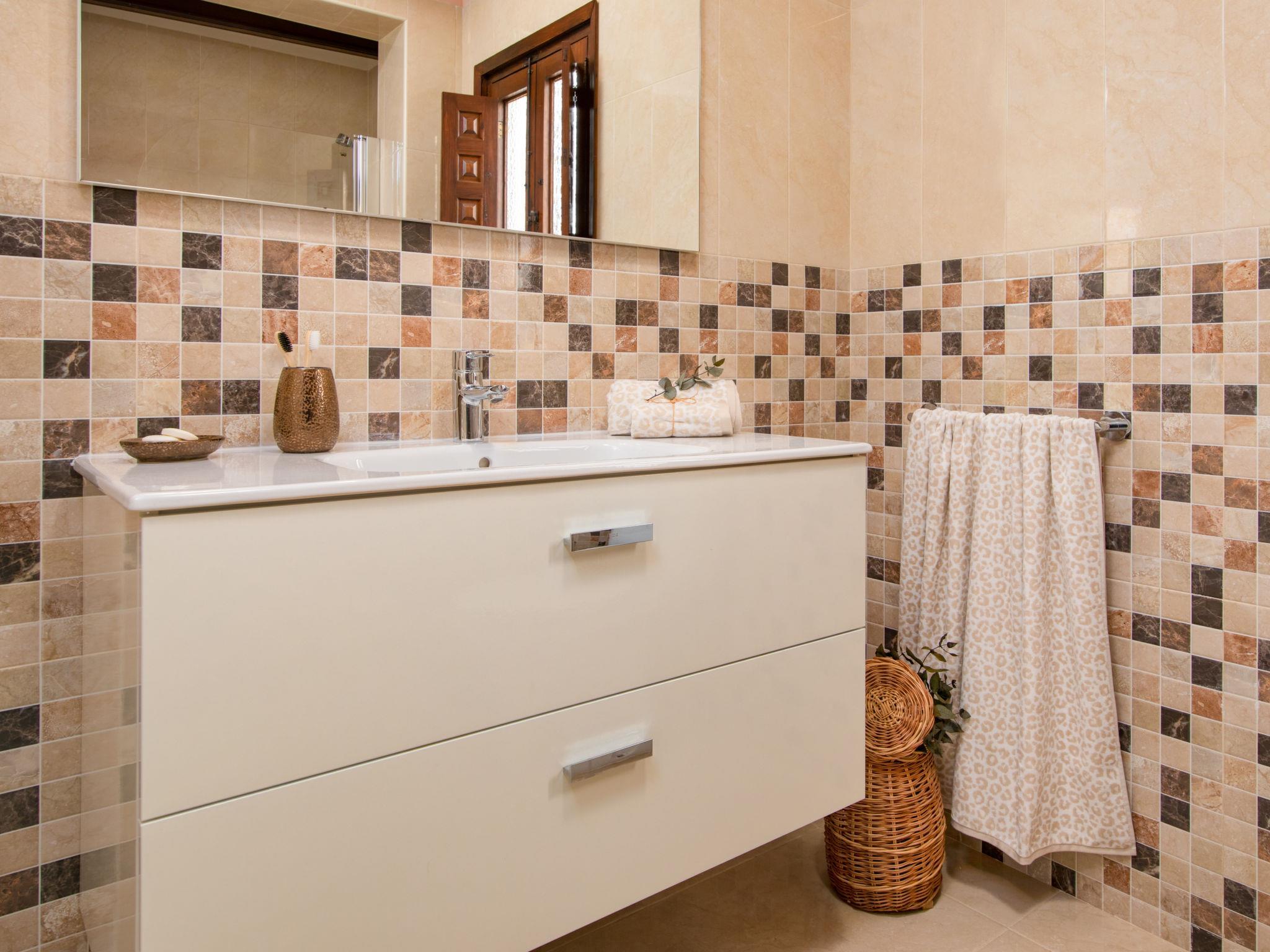 "Villa Monte Feliz", 4-room villa 280 m2. Spacious, very beautiful and stylish furnishings: living/dining room with satellite TV, digital TV, air conditioning, fan and forced-air heating. Exit to the terrace. Large kitchen (oven, dishwasher, 4 induction hot plates, toaster, kettle, microwave, freezer, electric coffee machine). Upper floor: 1 room with 1 french bed (160 cm, length 200 cm), air conditioning. 1 room with 1 bed (90 cm, length 200 cm), air conditioning. Shower/WC. 2nd upper floor: 1 room with Dressing room with 1 french bed (160 cm, length 200 cm), shower/WC, double hand-basin, air conditioning and forced-air heating. 1 room with 1 french bed (160 cm, length 200 cm), shower/WC and fan. Terrace furniture, barbecue, deck chairs (6). View of the sea and the valley. Facilities: washing machine, dryer, iron, children's high chair, baby cot. Internet (WiFi, free). Parking, garage. Suitable for families. VT-487021-A // Reg. Nr.: ESFCTU00000307100017917800000000000000000VT-487021-A7