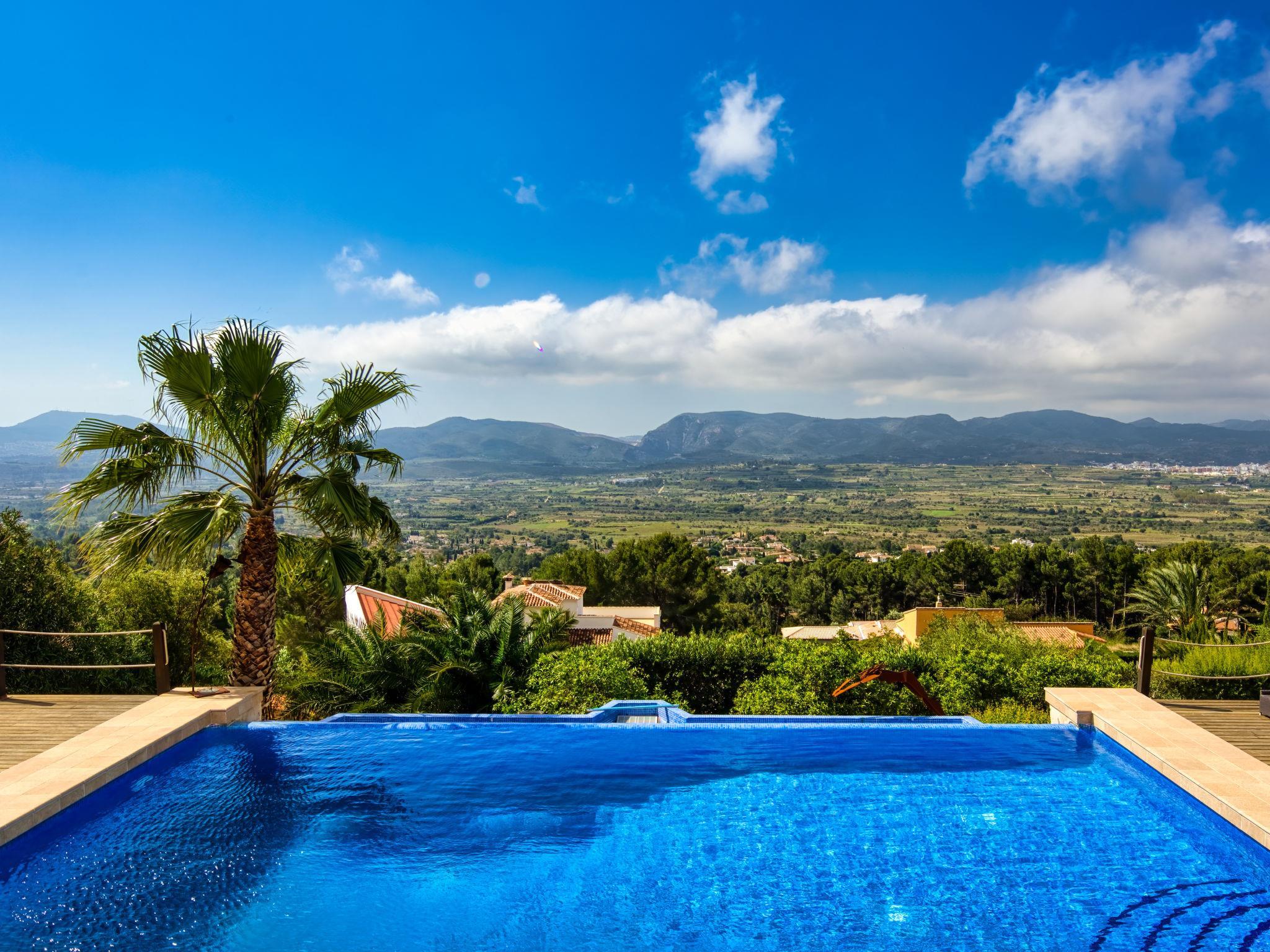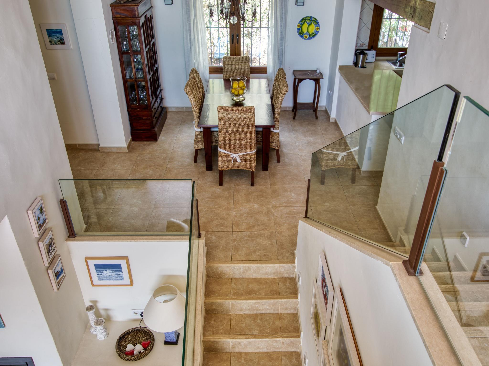 Beautiful villa "Centauro", 2 storeys. In the district of Montgo, in a quiet, sunny, elevated position in the residential district, 9 km from the sea. Private: terraced garden, 1'000 m2 (fenced) with wildlife garden, orchard, swimming pool (5 x 11 m, seasonal availability: 01.Jan. - 31.Dec.) with internal staircase. Supermarket 1.5 km, shopping centre 6 km, restaurant 1.5 km, bus stop 8 km, sandy beach "Arenal" 9 km. Groups of teenagers on request only.