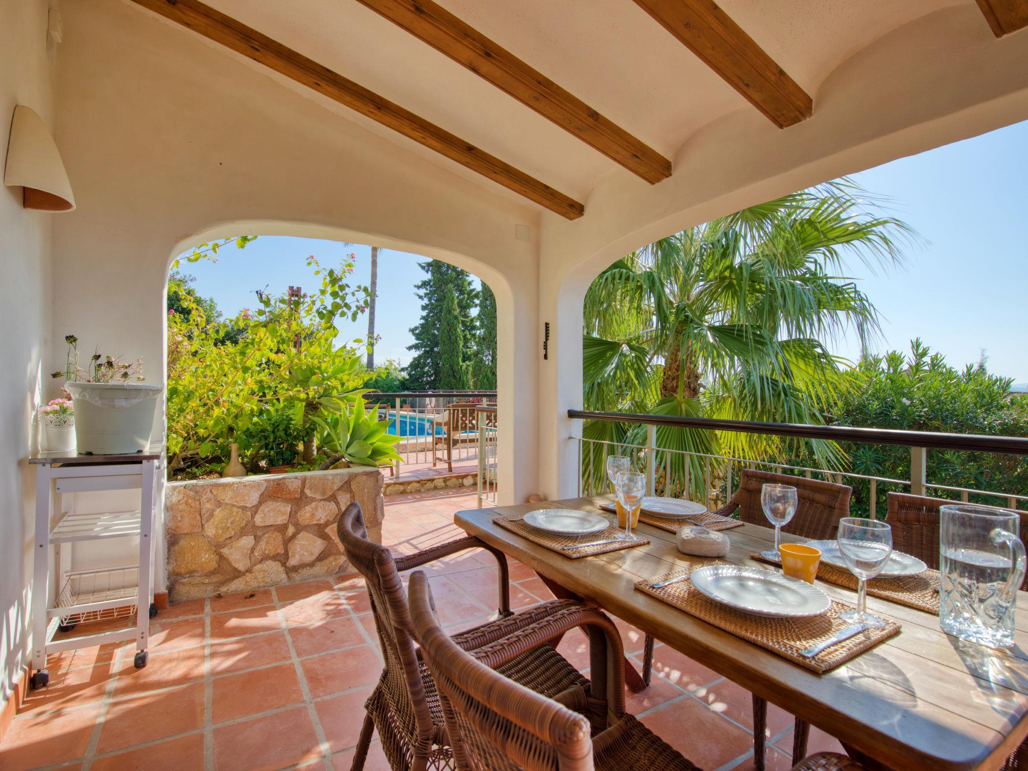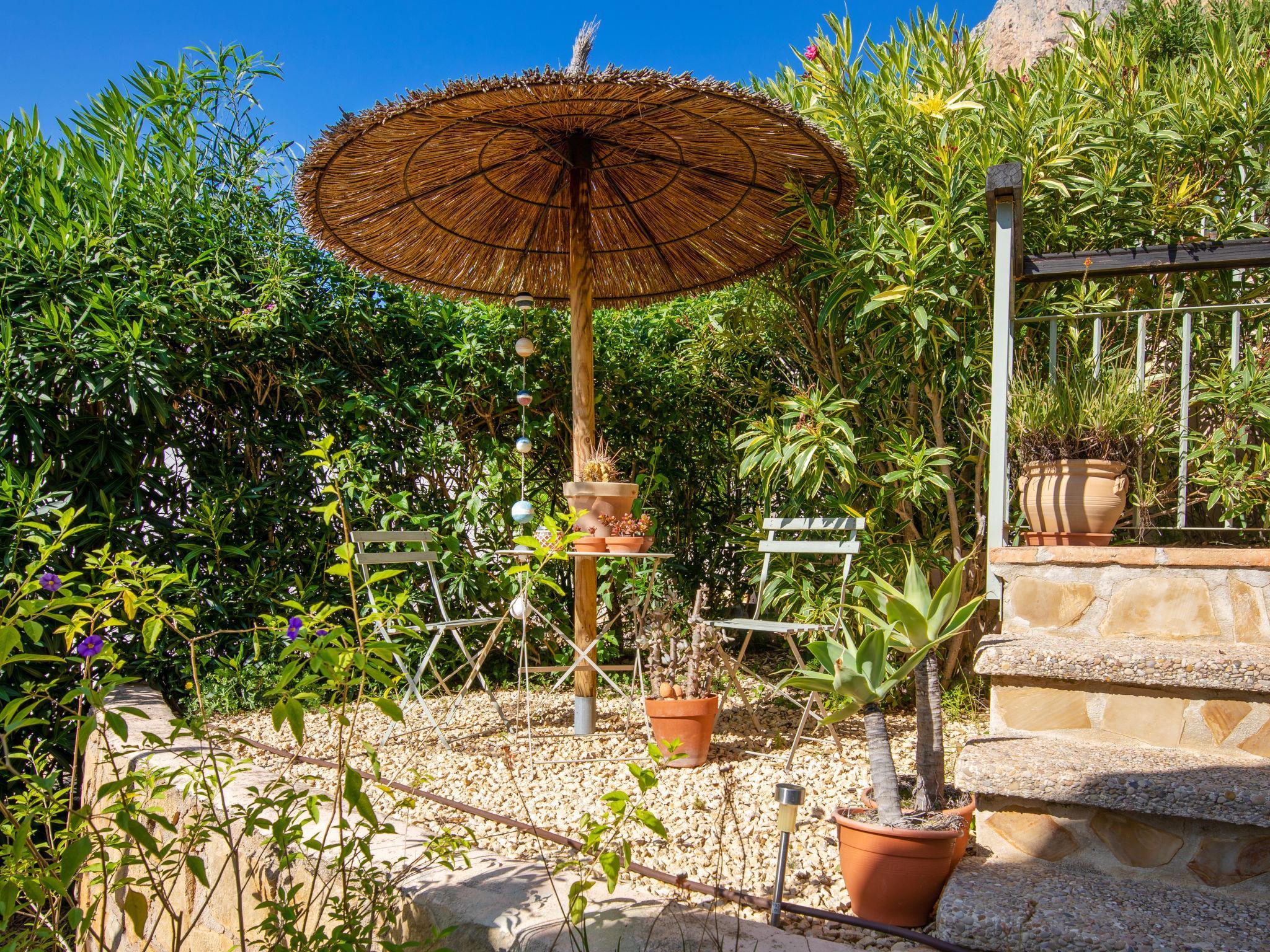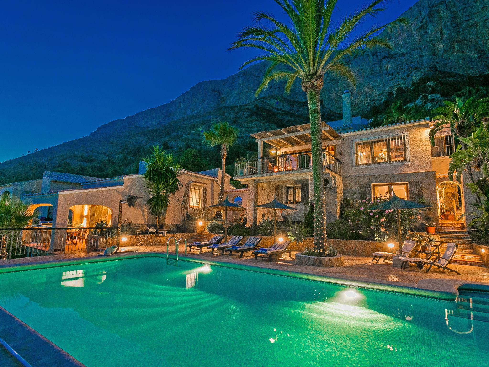"Petite Fleur" contains two elegant homes: 1 house and 1 apartment with separate entrances in the same plot, perfect for 2 couples. Romantic and relaxing place. Very beautiful, cosy house "Petite Fleur". In the district of Montgo, in a quiet, sunny position on a slope, in the residential district, 9 km from the sea. Private: terraced garden, 1'200 m2 (fenced) with wildlife garden and flowers, swimming pool (6 x 12 m, depth 100 - 300 cm, seasonal availability: 01.Jan. - 31.Dec.) with internal staircase. Outdoor shower. In the house: central heating system. Public parking on the road. Supermarket 1.5 km, restaurant 1.5 km, bus stop "Estacion de autobuses Javea" 6 km, sandy beach "Arenal" 9 km. Please note: the owner lives on the same property. Very discreet.