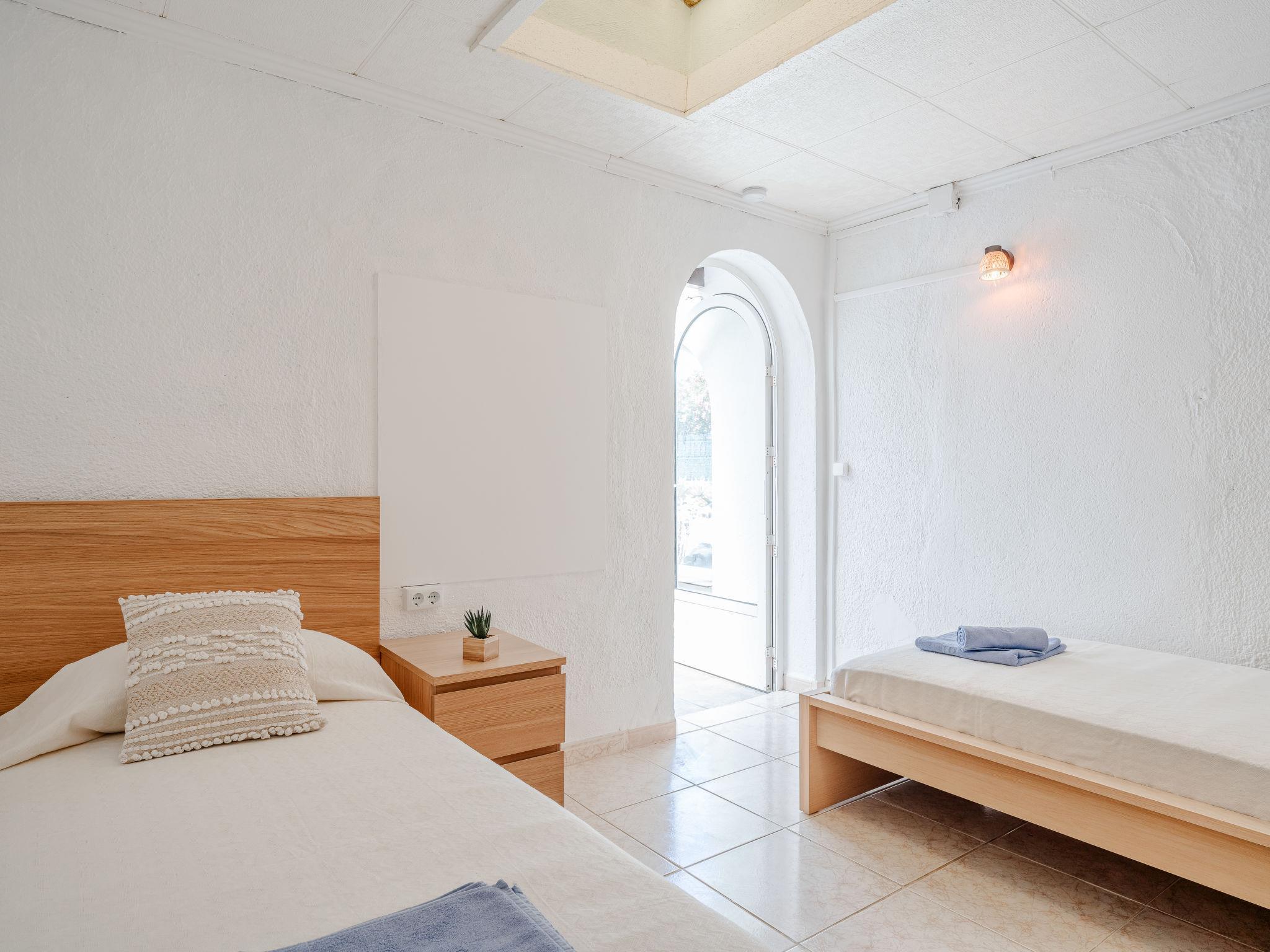 Cosy, simple, comfortable house "Acamar". In the district of Montgo Javea, in the resort 5 km from the centre of Javea, in a quiet, sunny position, 7 km from the sea, 7 km from the beach, in a cul-de-sac. Private: large, beautiful, well-kept garden, natural garden, swimming pool angular (8 x 4 m, depth 40 - 210 cm, seasonal availability: 01.Jan. - 31.Dec.) with internal staircase. WC in the pool area, outdoor shower, roofed, parking on the premises. Supermarket, restaurant 600 m, bus stop 2 km, sandy beach "El Arenal" 8 km, shingle beach "Playa de la Grava" 7 km. Surf school 7.5 km, sailing school 7.5 km. The owner does not accept any youth groups.