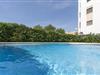 Køkken(mikrobølgeovn, køle-fryseskab), soveværelse(2x enkeltseng), soveværelse(dobbeltseng), badeværelse, komfur, kaffemaskine, bruser, håndvask, toilet, parkering, swimmingpool, elevator, barneseng, barnestol