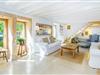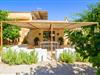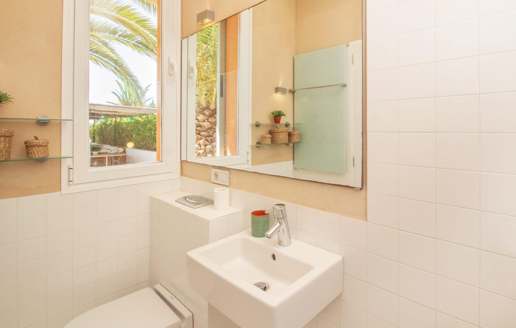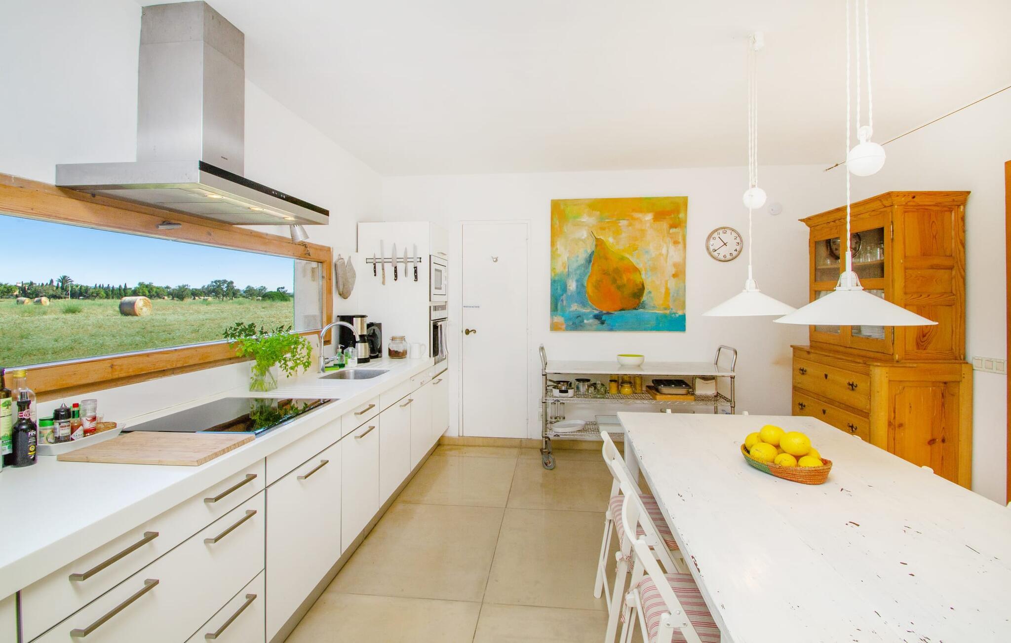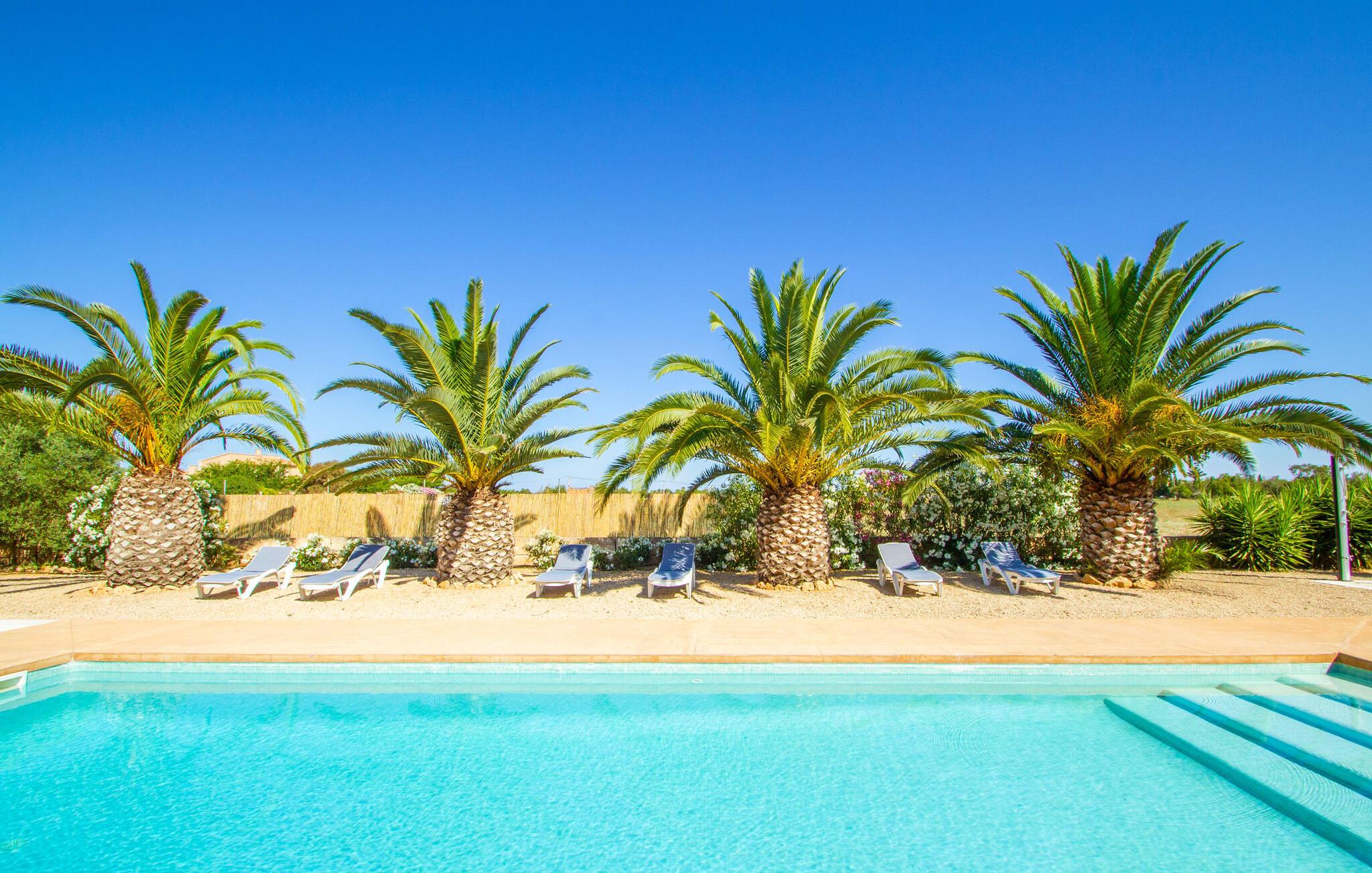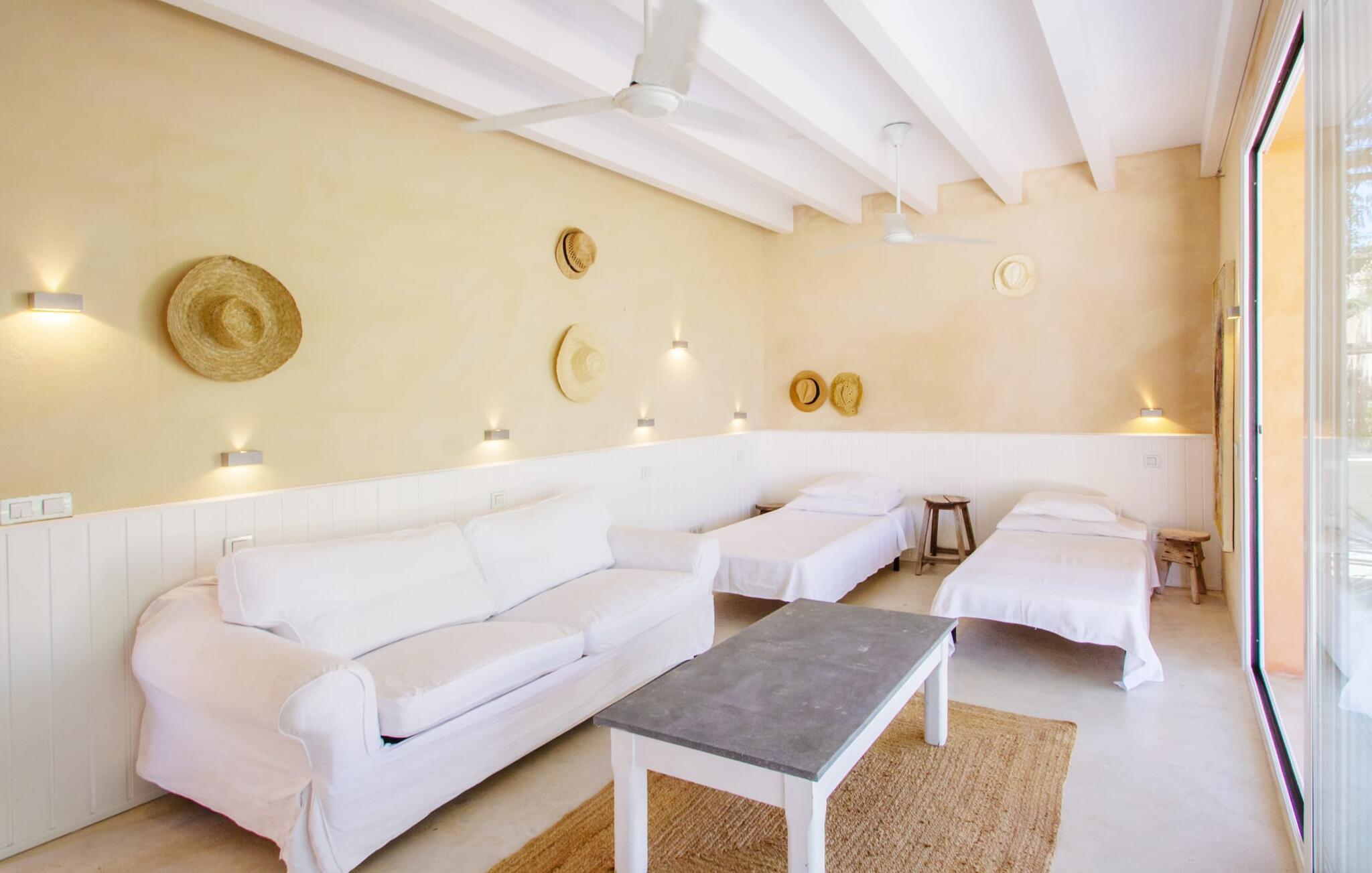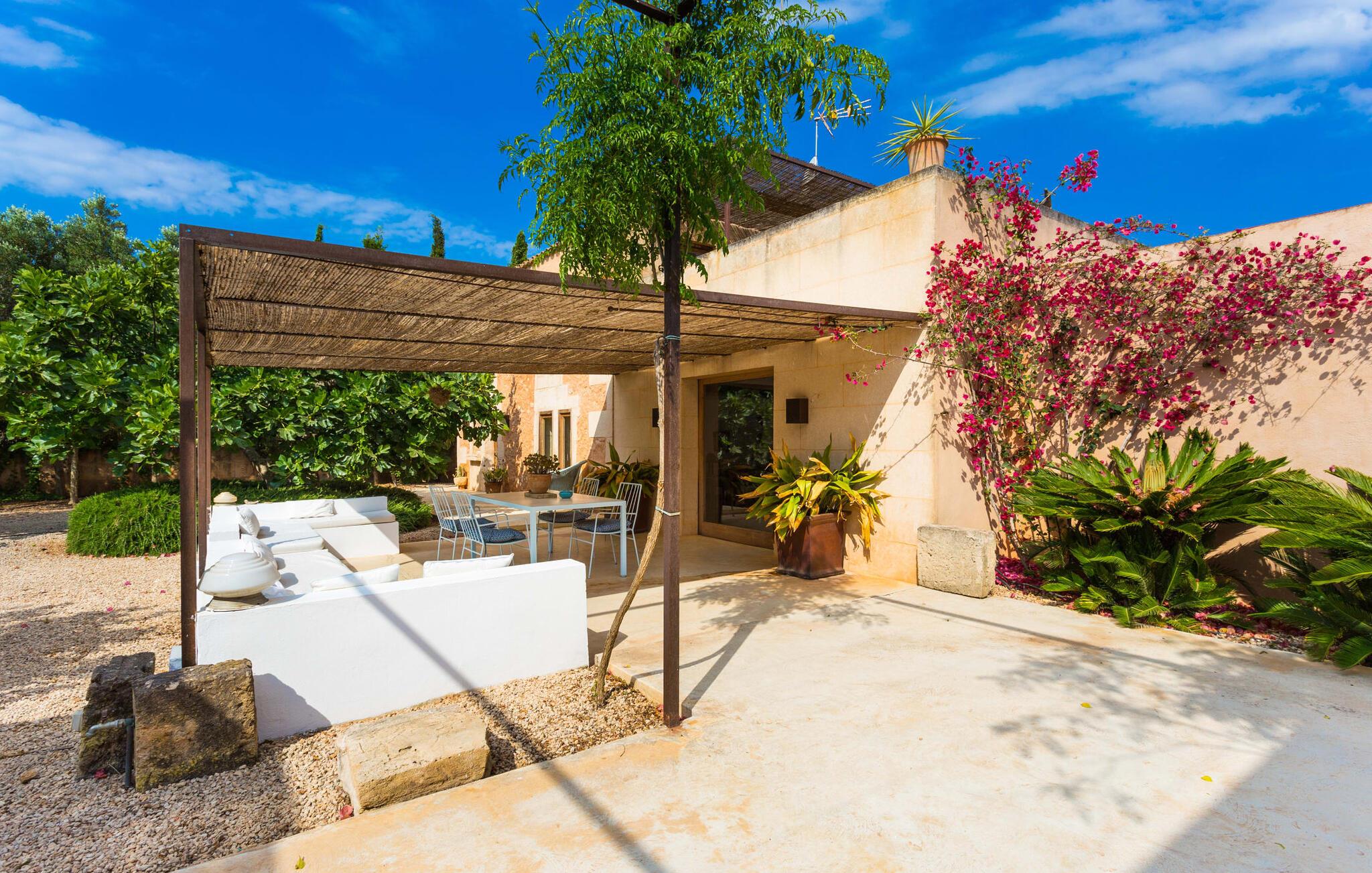 Den renoverede gamle villa "Jara" er en meget speciel ejendom. Den består af en cirka 200 år gammel og totalrenoveret hovedbygning, en ny bygning med yderligere soveværelser, hver med eget toilet og bad en suite, og en tredje del af ejendommen med et stort sommerkøkken, en stor skyggefuld terrasse med udsigt over poolen og en terrasse foran med et afslappet område Siddemuligheder. I det nænsomt renoverede hovedhus er der åbent køkken og en meget stor, åben og moderne stue/alrum. Møblerne er vidunderlige lyse og overvejende hvide: de gamle synlige bjælkelofter er blevet malet hvide, de komfortable møbler i opholdsområdet er hvide og væggene er lyse hvide. De store, sandstensfarvede gulvfliser og de til dels antikke vægmalerier og træmøbler danner en smuk kontrast til dette rum. Spisepladsen åbner op og fører jer ind i den store, moderne indrettede stue/køkken. Det cremefarvede køkken er fuldt udstyret med alt hvad I har brug for, lige fra en kedel, brødrister, mikroovn, juicer, kaffemaskine, komfur (indstillet i en behagelig højde) til en opvaskemaskine. Det lange, smalle trævindue i køkkenet er særligt smukt, et særligt træk med en fantastisk udsigt og giver masser af lys i rummet. Til de koldere årstider er der en pejs i hovedhuset, der skaber hyggelig varme. Overfor køkkenet i den anden ende af stuen fører en fritstående stentrappe op til det eneste soveværelse i den gamle bygning, som også er det eneste udstyret med aircondition. Fra det komfortable soveværelse har I udgang til en privat terrasse. Der er naturligvis også et moderne badeværelse på denne etage. Når I forlader hovedhuset, får I adgang til den overdækkede veranda og en lille frugthave. Begge er lige ved siden af ??huset. Her finder I indbyggede stenbænke, der er udstyret med tykke, hvide sædehynder og giver plads nok til at slappe af og blive hængende. Udearealet har i alt 3 terrasser, hvoraf den ene ligger direkte på det flot renoverede, antikke hovedhus. Den anden terrasse er placeret langs den nye bygning og byder også på adskillige siddepladser, der inviterer jer til at slappe af. I den terracottafarvede nybygning finder I fire helt selvstændige dobbeltværelser med hver sin indgang og ikke forbundet med hinanden. Hvert af disse individuelt designede soveværelser er udstyret med loftsventilator og har eget badeværelse med al komfort. Et af rummene har endda et ekstra værelse, der kunne bruges som enten stue eller børneværelse, en funktion, som vi synes, den vil egne sig særdeles godt til. Terrasseområder dækket med et bambustag strækker sig langs hvert soveværelse. Her er også placeret et komfortabelt møbelsæt, så uanset hvilket soveværelse I befinder jer i, kan I stå op om morgenen og nyde direkte udgang til terrassen og nyde den friske morgenluft. Sengene er 1,40 m og 1,60 m store, og i to af soveværelserne endda 1,80 m. Om vinteren kan hovedhuset lejes af kun to personer, især takket være pejsen. Både hovedbygningen og de nye huse har centralvarme. Vi er særligt imponerede over det store poolområde med dets enestående detaljer. Niveaubassinet måler 10 x 4 m og har en dybde mellem 0,70 og 2 meter. Poolen er omgivet af en omsluttende terrasse. En liggestol er til rådighed for hver gæst, og to parasoller er tilgængelige for at give skygge. Murstensbænken foran poolen tilbyder en ekstra plads, hvor I kan læne jer tilbage og nyde et langt solbad. I sommermånederne vil livet sandsynligvis for det meste foregå udenfor. Udover de to andre overdækkede terrasser finder vi endnu en terrasse, der strækker sig direkte langs poolen. Denne terrasse er dækket af en baldakin og bambus, hvilket gør den til et perfekt sted at finde ly for solen. De hvide stofgardiner på siderne tilføjer ikke kun mere æstetik til dette område, men giver også yderligere beskyttelse mod vind og sol. Under det store lærredstag er der endnu en malerisk siddeplads med lounge-atmosfære, hvor I kan trække vejret dybt og komme jer fra hverdagens stress. Der er plads nok til hver enkelt gæst ved det lange spisebord - og et særligt højdepunkt er det tilstødende sommerkøkken, der ligesom køkkenet i hovedhuset er indrettet efter høj standard og har opvaskemaskine, vaskemaskine, køleskab, ovn, kogeplader, mikroovn og masser af bestik. Udover dette sommerkøkken er der også en fritstående kulgrill. Så hvis I vil lave mad, finder I et ideelt sommersted i dette fantastiske udekøkken, mens I reserverer hovedhusets komfortable, hyggelige vægge og sovepladsen i den nye bygning næsten udelukkende til at sove eller som et tilflugtssted efter en lang dag med at udforske det omkringliggende område. Den charmerende villa "Jara" ligger i en helt privat beliggenhed tæt på en landevej, der fører direkte til den smukke naturlige strand Es Trenc. Hvis I planlægger en dag på stranden, er der udover Es Trenc, her i den sydlige del af øen utallige forskellige muligheder med hver deres fordele: Mellem Es Trenc og Sa Rapita stranden ligger den storslåede Platja Ses Covetes, som er 300 meter lang og kun 4,5 km fra villaen. Der kan I leje parasoller og liggestole samt en strandbar og en kiosk. Uanset hvordan I bruger jeres dag - hvad enten I er på en af ??de smukke strande i den sydlige del af øen eller i jeres rummelige villa "Jara" og dens ekstraordinære udendørsområde - lover jeres ophold i denne hyggelige villa afslapning og berigelse for sjælen i en kærlig, individuel måde og hyggelig atmosfære. Vi hos Fincallorca ønsker jer en afslappende ferie. Den 200 år gamle villa "Jara" med en ekstra ny bygning og et fantastisk udendørs køkken ligger i en vidunderlig landlig beliggenhed mellem Campos (10 minutter væk i bil) og den lille kystby Ses Covetes. I Campos kan I gøre jeres daglige indkøb eller måske forsyne jer med friske lokale produkter, der sælges på det lokale ugentlige marked torsdag og søndag. Det attraktive Platja Ses Covetes ligger kun 4,5 km v