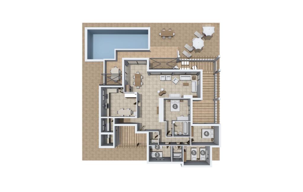 "Jardin Mar" er en fantastisk ferievilla på klippekysten med en fantastisk udsigt over Middelhavet, hvilket gør den til et ideelt tilflugtssted for familier. Udenfor er den indhegnede pool dekoreret med en delfinmosaik og er tilgængelig via trapper, hvilket gør den ideel til forfriskende svømmeture. Slap af på de delvist overdækkede, møblerede terrasser, før I nyder de varme sommernætter med en vidunderlig BBQ, mens I nyder den betagende havudsigt. Denne moderne villa er oversvømmet med lys, med smagfuld indretning og dekorative klinkegulve. Det rummelige opholds- og spiseområde er designet til komfort og har pejs, tv og tredelt suite, mens det veludstyrede køkken er perfekt til selvforplejning. I stueetagen er der to muntert indrettede soveværelser med aircondition og et stilfuldt badeværelse, mens der på øverste etage er yderligere fire soveværelser med aircondition, yderligere to badeværelser og gæstetoilet. Oplev den perfekte blanding af luksus og bekvemmelighed på Jardin Mar. Der er næppe en bedre beliggenhed for et sommerhus på Mallorca end dette. Som navnet antyder, ligger Villa "Jardin Mar" i en have ved havet og i den smukke fiskerby Portocolom. Med sin maleriske strand, havnepromenade med barer og restauranter og supermarkeder finder I alt hvad I behøver her. Den smukke Cala Marcal-strand ligger kun 150 m væk og kan nemt nås til fods, mens andre sandbugter (f.eks. Cala Brafi, Es Caragol osv.) kan nås på få minutter i bil. Aircondition i ejendommen er inkluderet i prisen, men dets brug er begrænset mellem kl. 20.00 og 08.00.