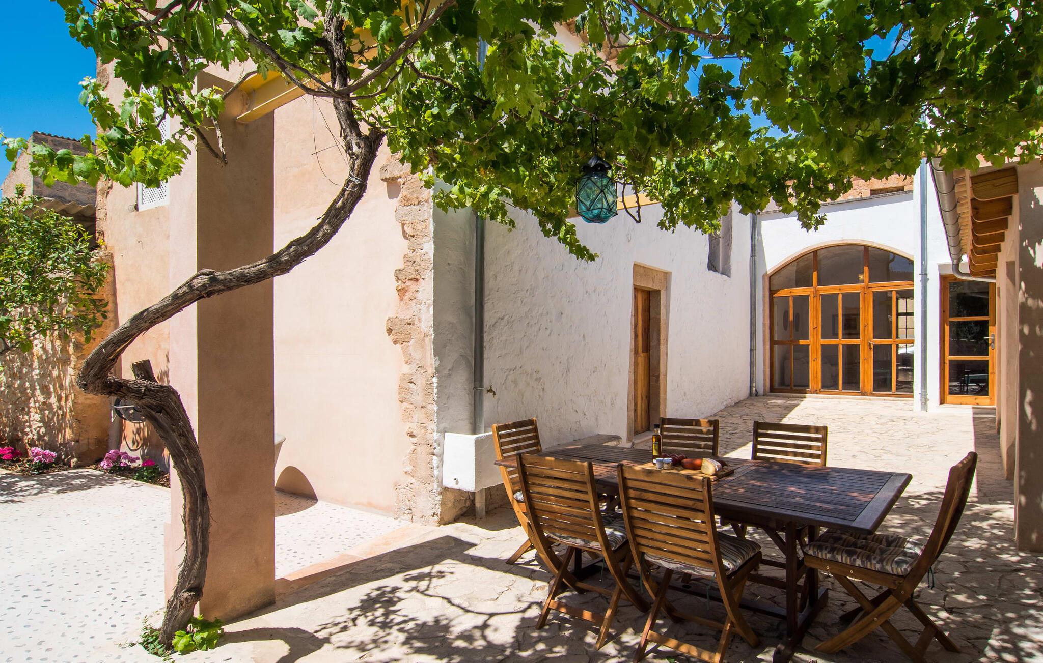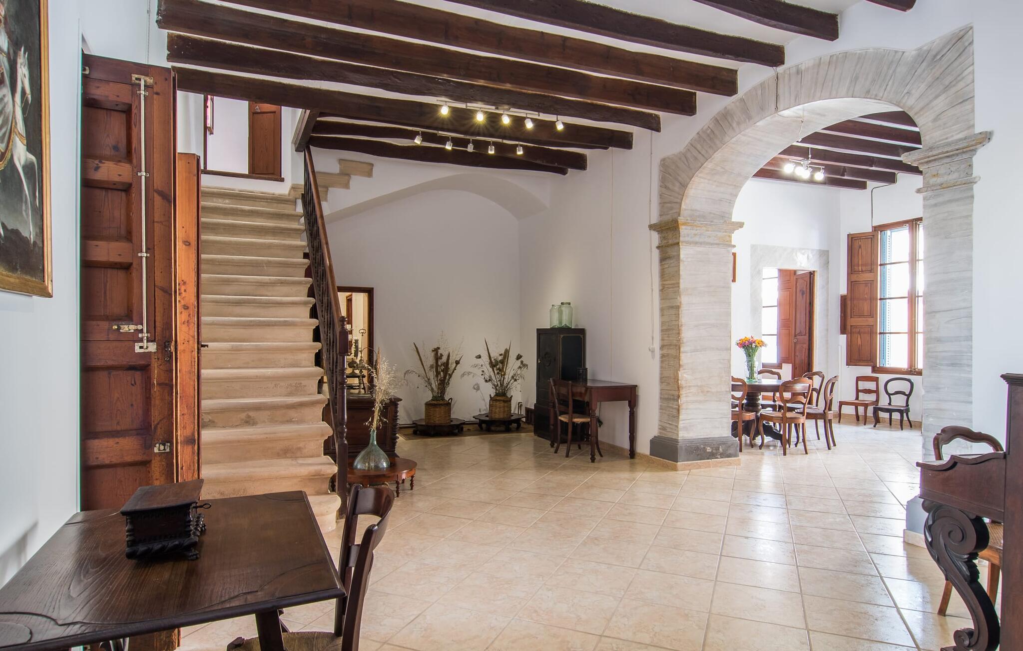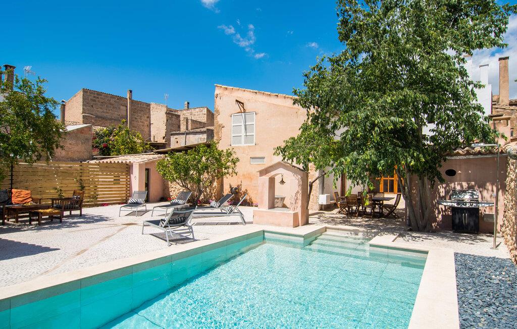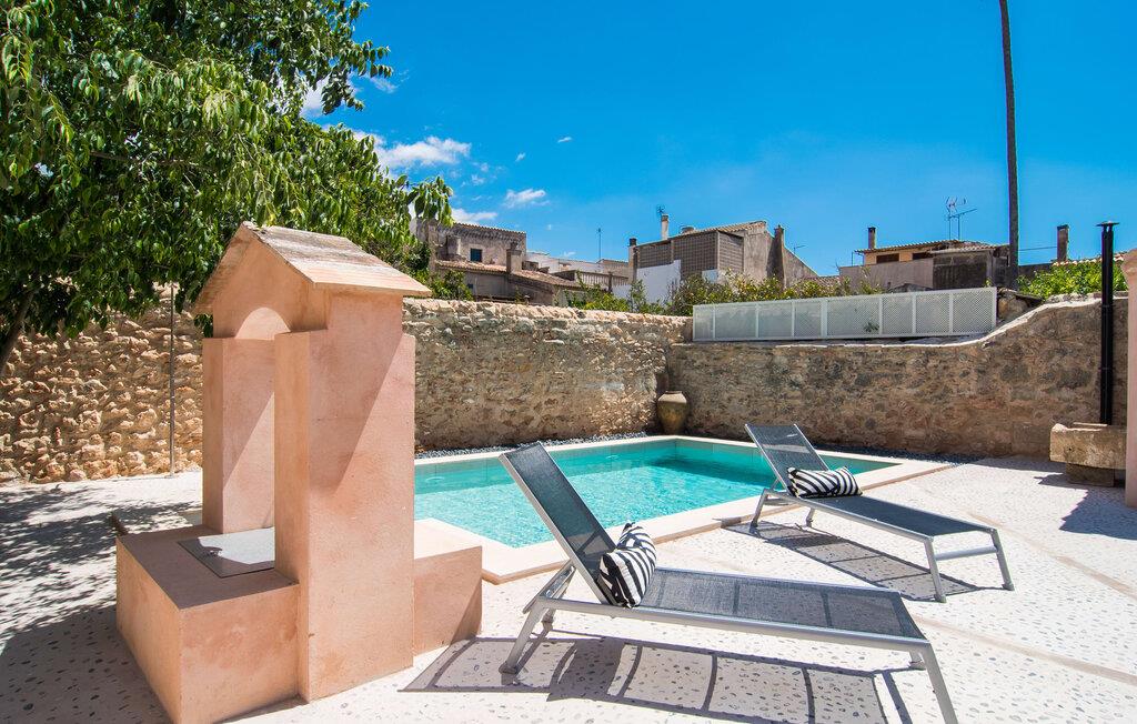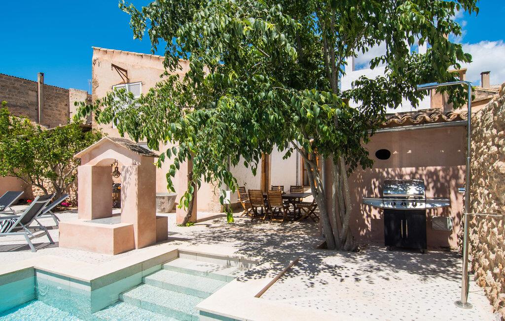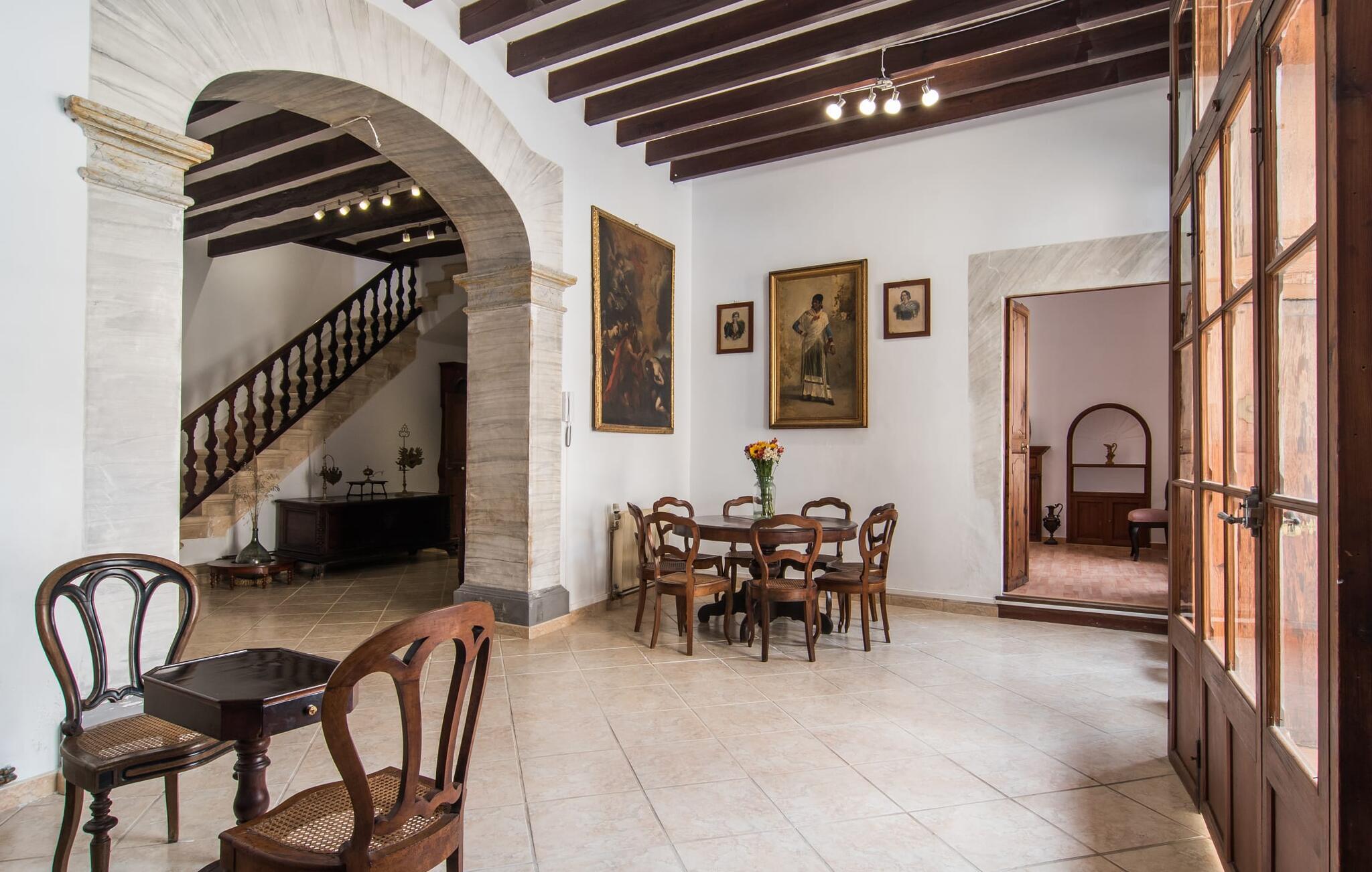 Nyder I at være blandt mennesker, være midt i travlheden, have en hyggelig snak med naboerne og frem for alt nyde godt af en central beliggenhed, der gør, at I kan gøre jeres indkøb og restaurantbesøg til fods? Sætter I også pris på en autentisk, traditionel flair og elsker følelsen af, at historien kommer til live, mens I samtidig nyder moderne komfort? Så har I fundet det perfekte feriehus med det smukke rækkehus "Jaume II". Det er beliggende i Llucmajor i det sydlige Mallorca, i et typisk boligområde. Bag huset har I en oase: På ejendommen finder I ikke kun en skrånende pool med liggestole og parasoller, et udendørs badeværelse, et køkken og et brusebad, men også et stort, solrigt terrasseområde med forskellige siddemuligheder, nogle under træer . Lige ved siden af huset står spisebordet, hvor I kan servere grillede lækkerier. Ved siden af poolen, omgivet af naturstensvægge, kan I sætte jer til en siesta på komfortable loungemøbler. Store vinduer slipper lys ind, stemningen er præget af hvælvede stenlofter i nogle rum, mens mørke træbjælker er synlige i andre. Så snart I træder ind i huset, vil I straks føle jer som en spansk konge - antikke møbler, nogle kunstfærdigt udskåret og dekoreret med indlæg, samt oliemalerier i guldrammer udstråler en luksuriøs atmosfære. Trods den til dels historiske indretning fremstår huset ikke gammeldags – tværtimod. Gammelt og nyt er smagfuldt og dygtigt blevet kombineret her. De to badeværelser, for eksempel - et en-suite i stueetagen og et på øverste etage - er meget smarte og moderne og næsten puristisk flisebelagt med natursten. Køkkenet i stueetagen er også bevidst holdt enkelt, en fin kontrast til de gamle, stilrene møbler, der er at finde i de øvrige rum. Der er endda plads til et klaver i det rummelige indgangsparti. Der er også to spisestuer og en stue med en dejlig stor sofa og udsigt udenfor. Der er i alt tre soveværelser i stueetagen og øverste etager, alle med imponerende, næsten majestætiske træsenge, hvoraf det ene endda er udstyret med pejs. Omkring jeres hus kan I tage afslappende gåture gennem kvarteret og ind i de landlige omgivelser. Llucmajor, malerisk omgivet af abrikos- og mandellunde, skabte engang et navn for sig selv som et industricenter. Byen blev især berømt for produktion af sko, men den dag i dag er der ikke fokus på turisme – hvilket er en stor del af dens charme. Når I slentrer gennem byens gader, finder I ikke kun alt, hvad I behøver til det daglige liv, men også nogle få historiske bygninger, herunder Placa d'Espanya rådhus, San Miguel kirke fra 1700-tallet på Placa Santa Catalina Tomas, barokke klosteret San Bonaventura, skomagermonumentet ved den vestlige byport og monumentet til Jaime III. Det ugentlige marked finder sted hver søndag. For en tur til stranden kan I køre 13,7 km til S'Arenal ad vejen, der fra tid til anden kan høres fra jeres hus. Fint, hvidt sand, skyggefulde palmer og en livlig promenade venter jer her. "Jaume II", et smukt, historisk og stilfuldt renoveret rækkehus venter jer på den sydlige del af øen. Den centrale beliggenhed gør, at I nemt kan nå butikker og restauranter til fods - og stadig nyde et rummeligt terrasseområde omgivet af rustikke naturstensmure og gamle træer samt en skrånende pool og et udekøkken. Byens centrum ligger kun omkring 1,4 km væk, og den nærmeste strand, S'Arenal, er 13,7 km væk.