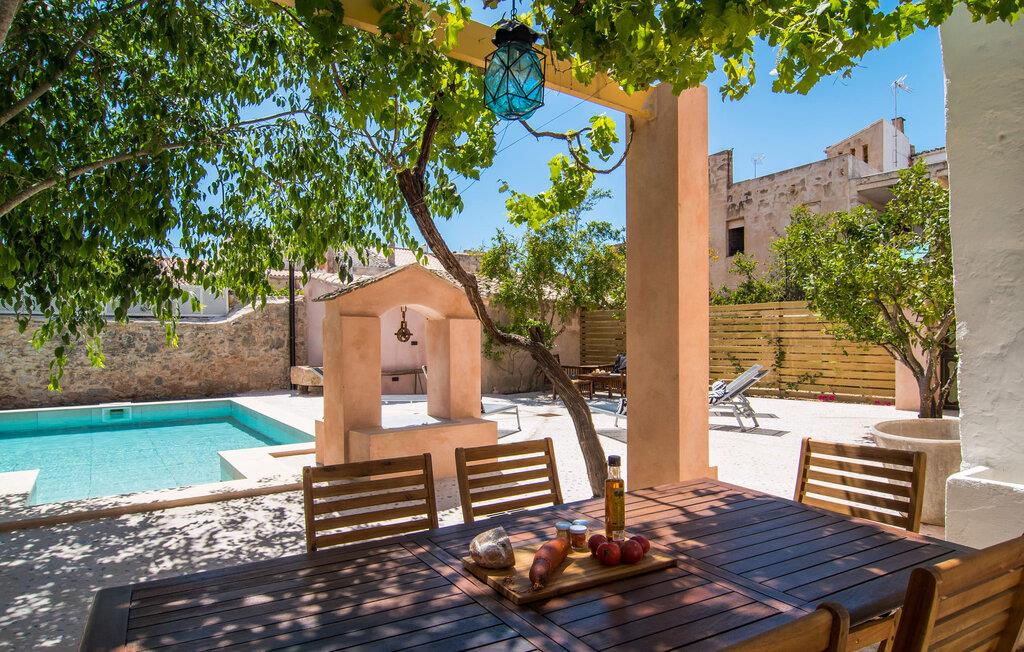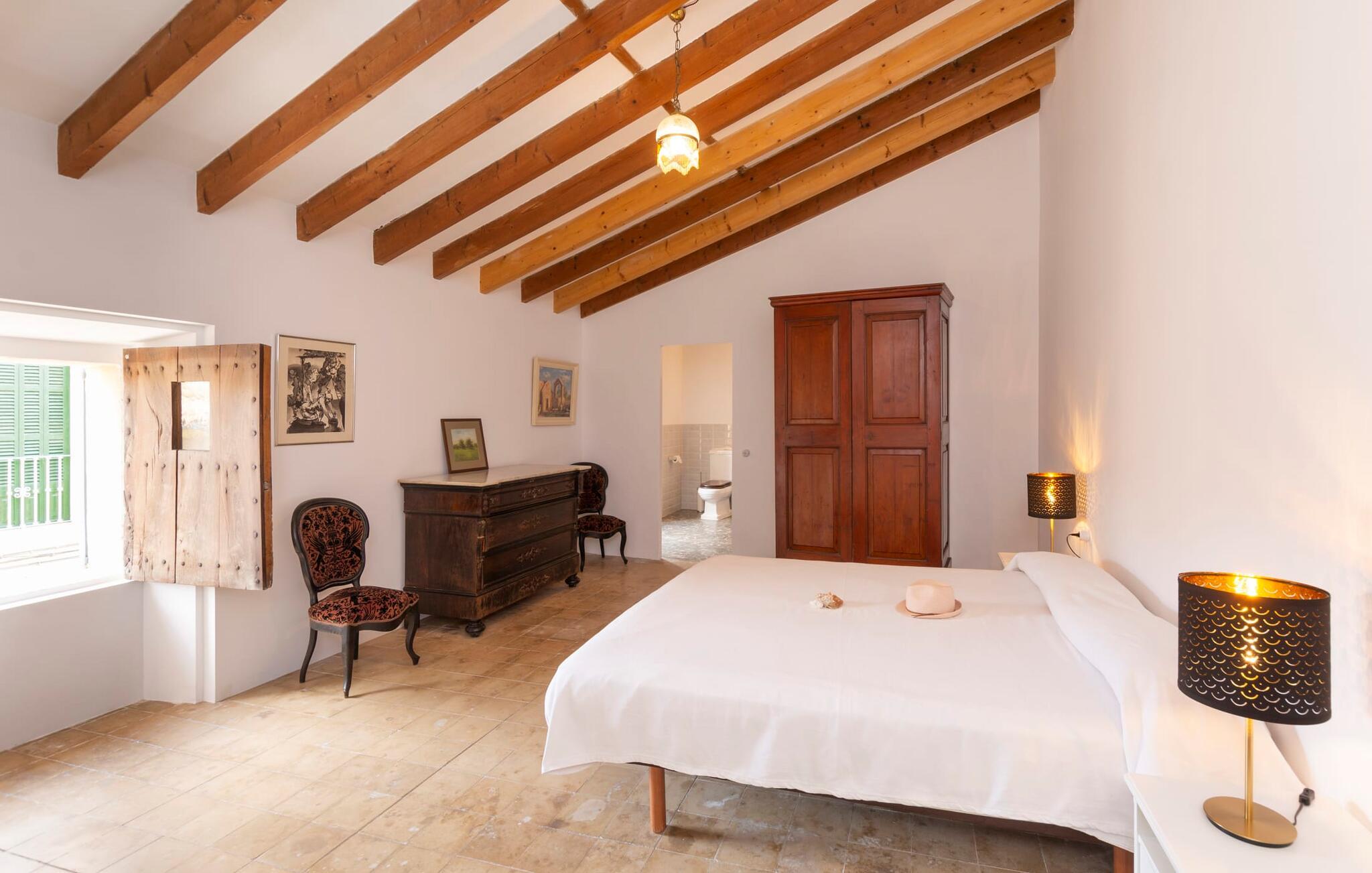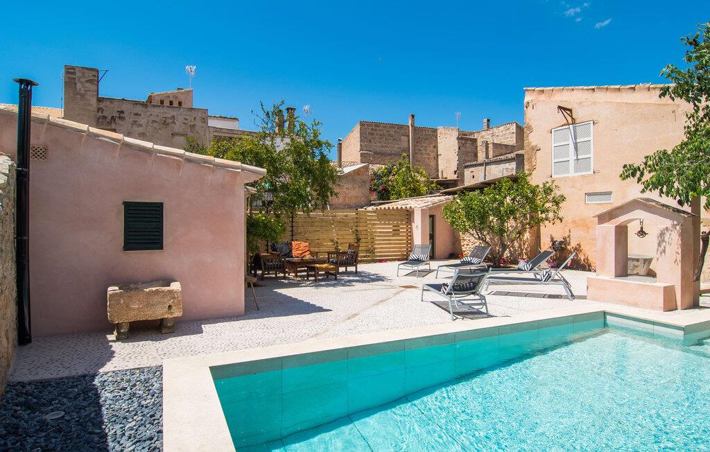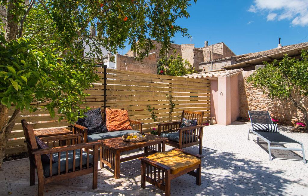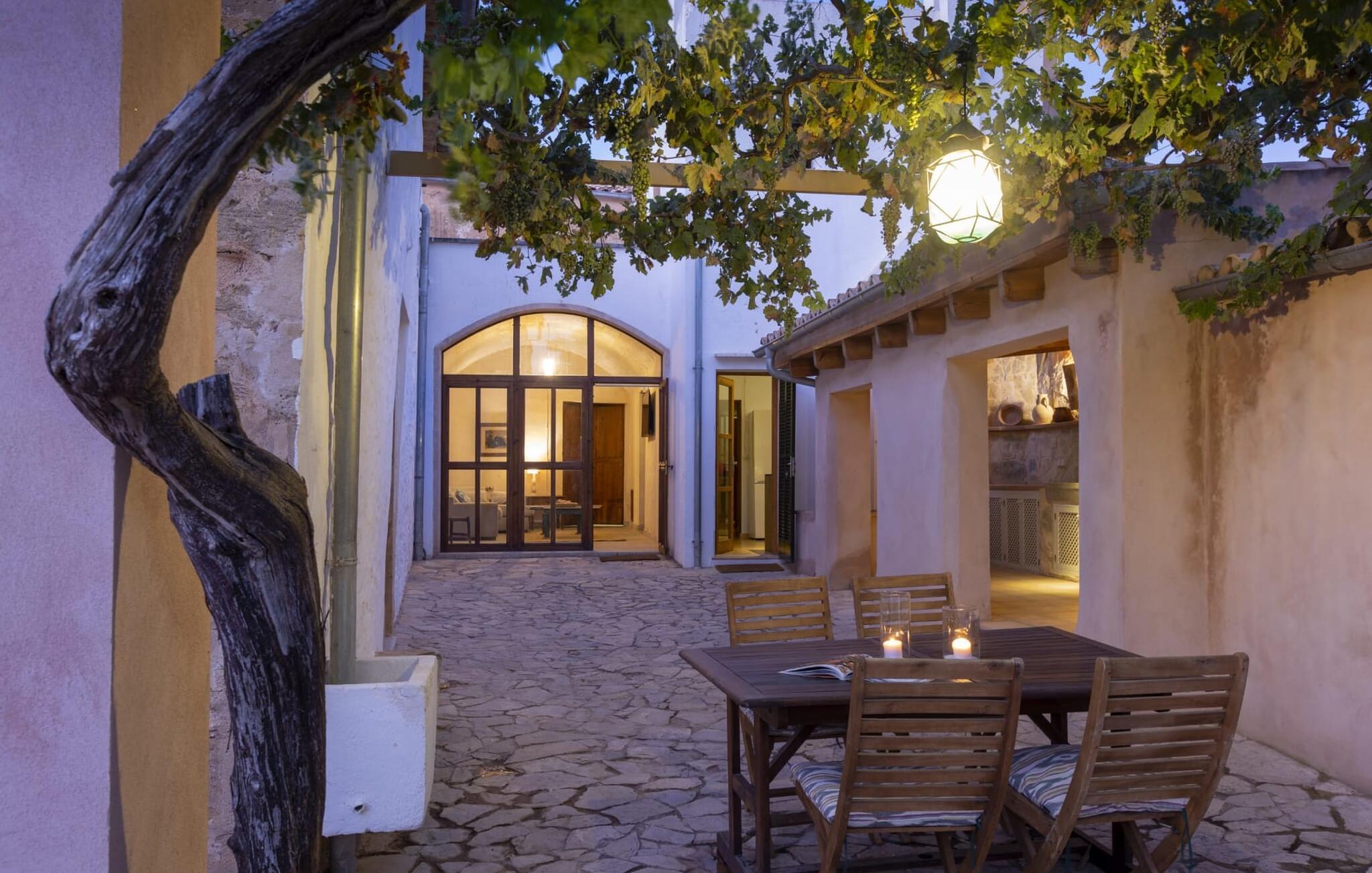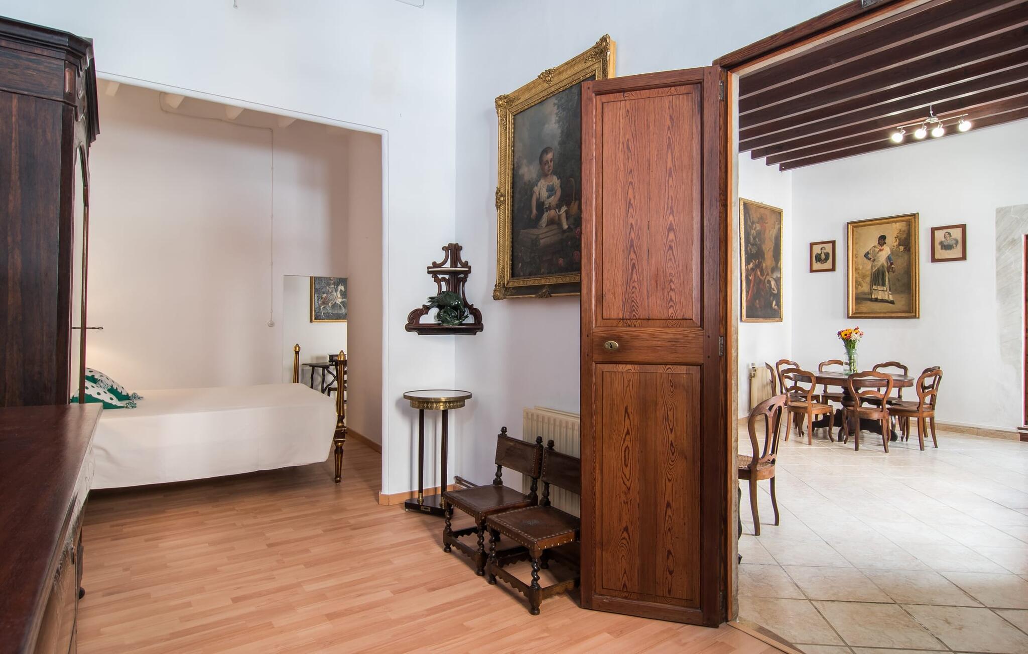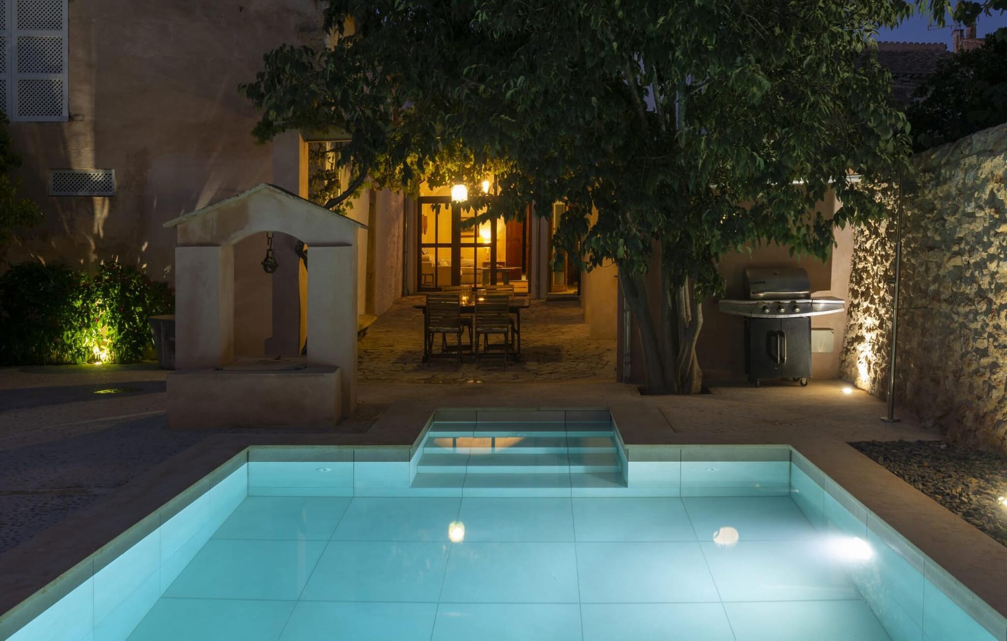 Nyder I at være blandt mennesker, være midt i travlheden, have en hyggelig snak med naboerne og frem for alt nyde godt af en central beliggenhed, der gør, at I kan gøre jeres indkøb og restaurantbesøg til fods? Sætter I også pris på en autentisk, traditionel flair og elsker følelsen af, at historien kommer til live, mens I samtidig nyder moderne komfort? Så har I fundet det perfekte feriehus med det smukke rækkehus "Jaume II". Det er beliggende i Llucmajor i det sydlige Mallorca, i et typisk boligområde. Bag huset har I en oase: På ejendommen finder I ikke kun en skrånende pool med liggestole og parasoller, et udendørs badeværelse, et køkken og et brusebad, men også et stort, solrigt terrasseområde med forskellige siddemuligheder, nogle under træer . Lige ved siden af huset står spisebordet, hvor I kan servere grillede lækkerier. Ved siden af poolen, omgivet af naturstensvægge, kan I sætte jer til en siesta på komfortable loungemøbler. Store vinduer slipper lys ind, stemningen er præget af hvælvede stenlofter i nogle rum, mens mørke træbjælker er synlige i andre. Så snart I træder ind i huset, vil I straks føle jer som en spansk konge - antikke møbler, nogle kunstfærdigt udskåret og dekoreret med indlæg, samt oliemalerier i guldrammer udstråler en luksuriøs atmosfære. Trods den til dels historiske indretning fremstår huset ikke gammeldags – tværtimod. Gammelt og nyt er smagfuldt og dygtigt blevet kombineret her. De to badeværelser, for eksempel - et en-suite i stueetagen og et på øverste etage - er meget smarte og moderne og næsten puristisk flisebelagt med natursten. Køkkenet i stueetagen er også bevidst holdt enkelt, en fin kontrast til de gamle, stilrene møbler, der er at finde i de øvrige rum. Der er endda plads til et klaver i det rummelige indgangsparti. Der er også to spisestuer og en stue med en dejlig stor sofa og udsigt udenfor. Der er i alt tre soveværelser i stueetagen og øverste etager, alle med imponerende, næsten majestætiske træsenge, hvoraf det ene endda er udstyret med pejs. Omkring jeres hus kan I tage afslappende gåture gennem kvarteret og ind i de landlige omgivelser. Llucmajor, malerisk omgivet af abrikos- og mandellunde, skabte engang et navn for sig selv som et industricenter. Byen blev især berømt for produktion af sko, men den dag i dag er der ikke fokus på turisme – hvilket er en stor del af dens charme. Når I slentrer gennem byens gader, finder I ikke kun alt, hvad I behøver til det daglige liv, men også nogle få historiske bygninger, herunder Placa d'Espanya rådhus, San Miguel kirke fra 1700-tallet på Placa Santa Catalina Tomas, barokke klosteret San Bonaventura, skomagermonumentet ved den vestlige byport og monumentet til Jaime III. Det ugentlige marked finder sted hver søndag. For en tur til stranden kan I køre 13,7 km til S'Arenal ad vejen, der fra tid til anden kan høres fra jeres hus. Fint, hvidt sand, skyggefulde palmer og en livlig promenade venter jer her. "Jaume II", et smukt, historisk og stilfuldt renoveret rækkehus venter jer på den sydlige del af øen. Den centrale beliggenhed gør, at I nemt kan nå butikker og restauranter til fods - og stadig nyde et rummeligt terrasseområde omgivet af rustikke naturstensmure og gamle træer samt en skrånende pool og et udekøkken. Byens centrum ligger kun omkring 1,4 km væk, og den nærmeste strand, S'Arenal, er 13,7 km væk.
