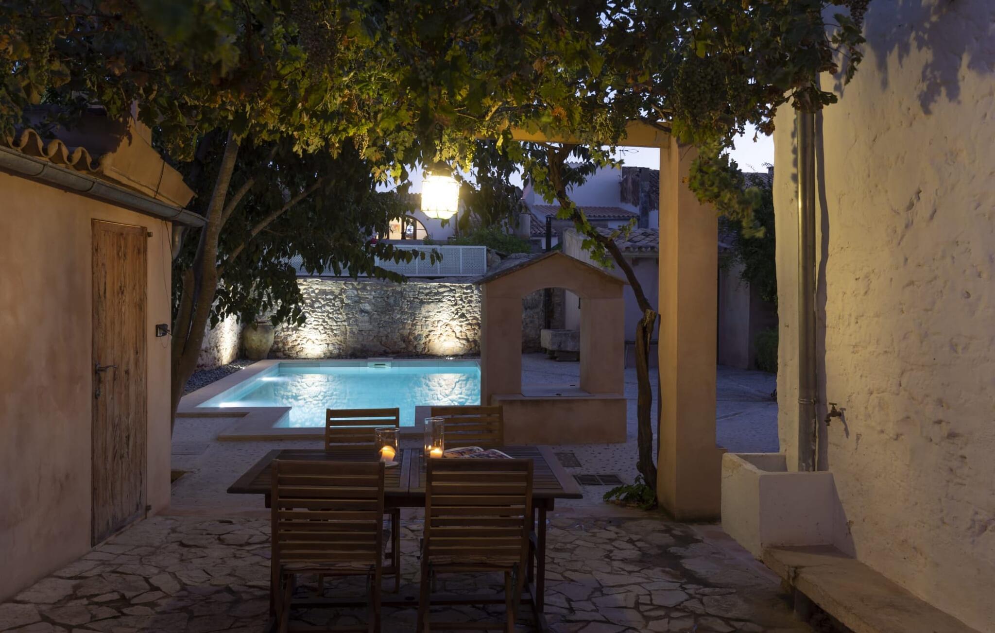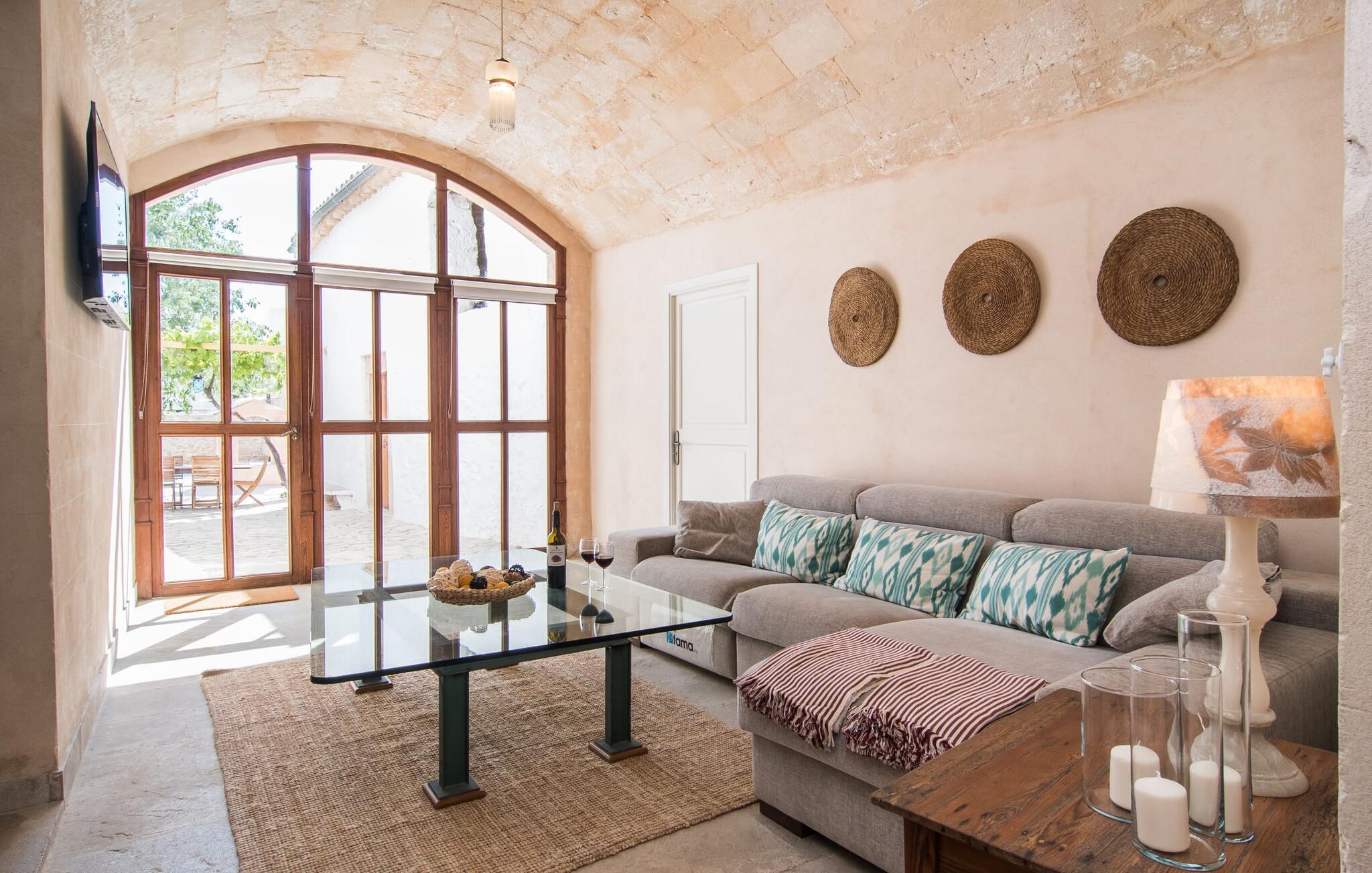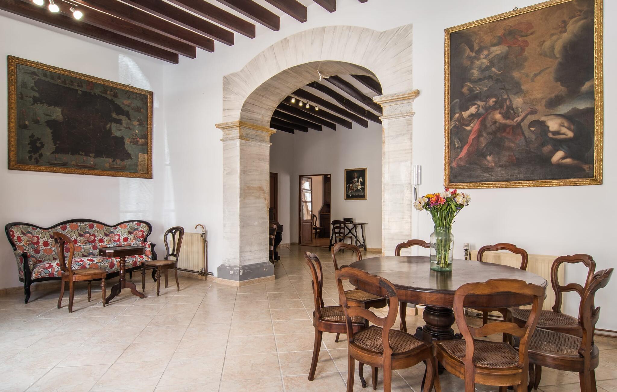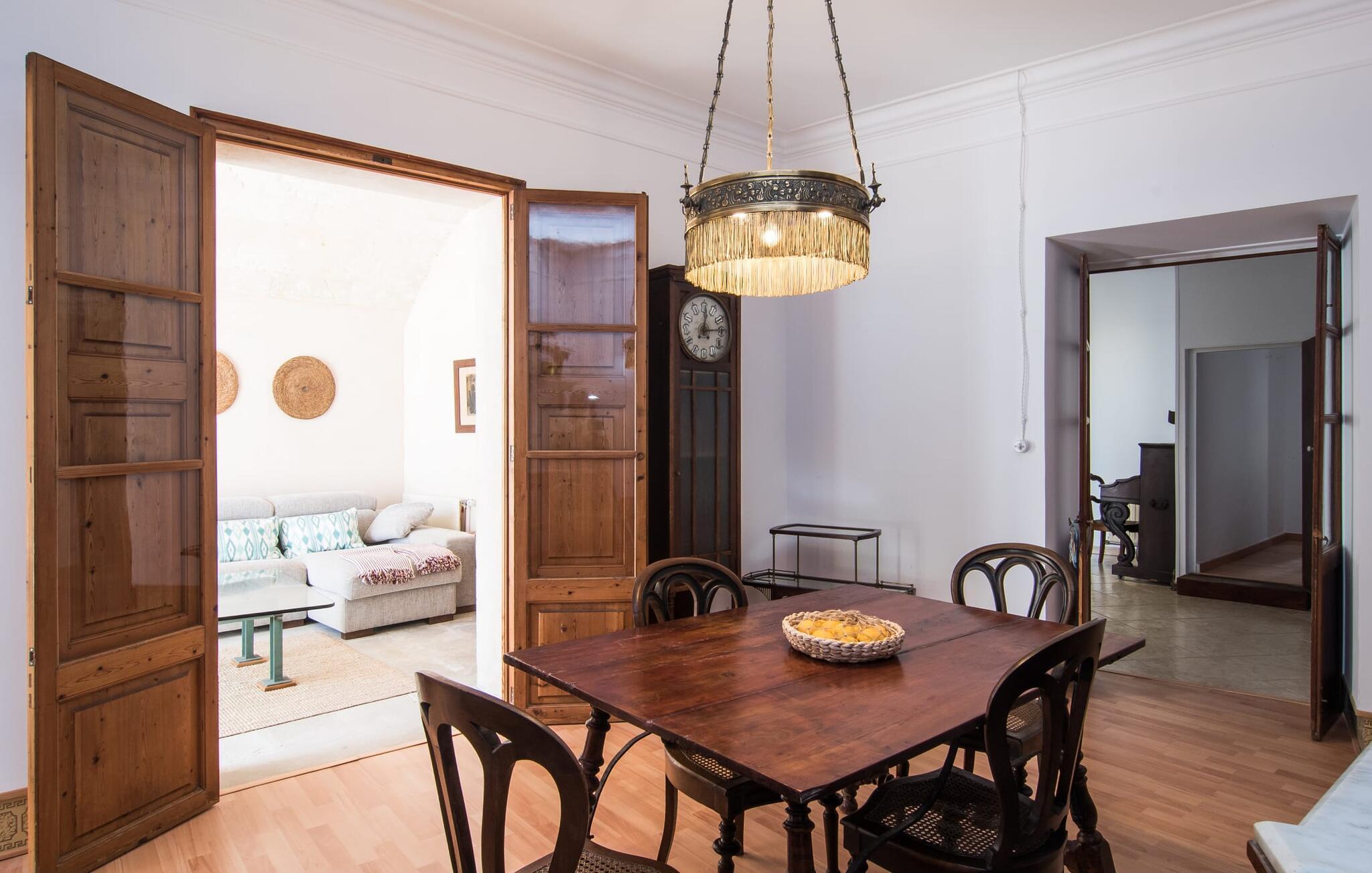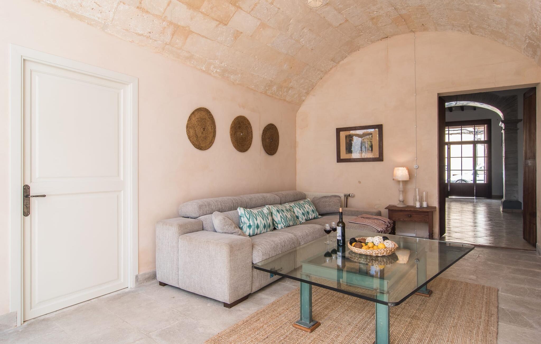 Nyder I at være blandt mennesker, være midt i travlheden, have en hyggelig snak med naboerne og frem for alt nyde godt af en central beliggenhed, der gør, at I kan gøre jeres indkøb og restaurantbesøg til fods? Sætter I også pris på en autentisk, traditionel flair og elsker følelsen af, at historien kommer til live, mens I samtidig nyder moderne komfort? Så har I fundet det perfekte feriehus med det smukke rækkehus "Jaume II". Det er beliggende i Llucmajor i det sydlige Mallorca, i et typisk boligområde. Bag huset har I en oase: På ejendommen finder I ikke kun en skrånende pool med liggestole og parasoller, et udendørs badeværelse, et køkken og et brusebad, men også et stort, solrigt terrasseområde med forskellige siddemuligheder, nogle under træer . Lige ved siden af huset står spisebordet, hvor I kan servere grillede lækkerier. Ved siden af poolen, omgivet af naturstensvægge, kan I sætte jer til en siesta på komfortable loungemøbler. Store vinduer slipper lys ind, stemningen er præget af hvælvede stenlofter i nogle rum, mens mørke træbjælker er synlige i andre. Så snart I træder ind i huset, vil I straks føle jer som en spansk konge - antikke møbler, nogle kunstfærdigt udskåret og dekoreret med indlæg, samt oliemalerier i guldrammer udstråler en luksuriøs atmosfære. Trods den til dels historiske indretning fremstår huset ikke gammeldags – tværtimod. Gammelt og nyt er smagfuldt og dygtigt blevet kombineret her. De to badeværelser, for eksempel - et en-suite i stueetagen og et på øverste etage - er meget smarte og moderne og næsten puristisk flisebelagt med natursten. Køkkenet i stueetagen er også bevidst holdt enkelt, en fin kontrast til de gamle, stilrene møbler, der er at finde i de øvrige rum. Der er endda plads til et klaver i det rummelige indgangsparti. Der er også to spisestuer og en stue med en dejlig stor sofa og udsigt udenfor. Der er i alt tre soveværelser i stueetagen og øverste etager, alle med imponerende, næsten majestætiske træsenge, hvoraf det ene endda er udstyret med pejs. Omkring jeres hus kan I tage afslappende gåture gennem kvarteret og ind i de landlige omgivelser. Llucmajor, malerisk omgivet af abrikos- og mandellunde, skabte engang et navn for sig selv som et industricenter. Byen blev især berømt for produktion af sko, men den dag i dag er der ikke fokus på turisme – hvilket er en stor del af dens charme. Når I slentrer gennem byens gader, finder I ikke kun alt, hvad I behøver til det daglige liv, men også nogle få historiske bygninger, herunder Placa d'Espanya rådhus, San Miguel kirke fra 1700-tallet på Placa Santa Catalina Tomas, barokke klosteret San Bonaventura, skomagermonumentet ved den vestlige byport og monumentet til Jaime III. Det ugentlige marked finder sted hver søndag. For en tur til stranden kan I køre 13,7 km til S'Arenal ad vejen, der fra tid til anden kan høres fra jeres hus. Fint, hvidt sand, skyggefulde palmer og en livlig promenade venter jer her. "Jaume II", et smukt, historisk og stilfuldt renoveret rækkehus venter jer på den sydlige del af øen. Den centrale beliggenhed gør, at I nemt kan nå butikker og restauranter til fods - og stadig nyde et rummeligt terrasseområde omgivet af rustikke naturstensmure og gamle træer samt en skrånende pool og et udekøkken. Byens centrum ligger kun omkring 1,4 km væk, og den nærmeste strand, S'Arenal, er 13,7 km væk.