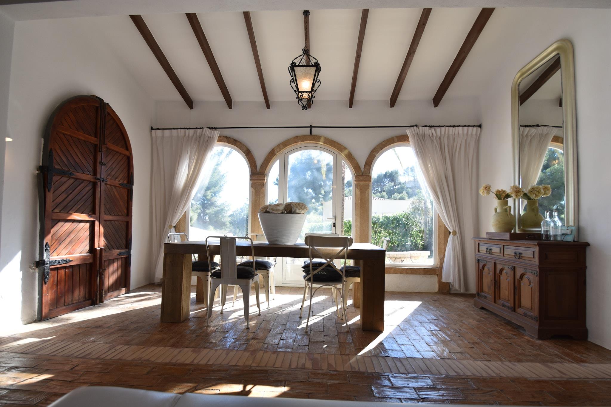 Denne typiske spanske villa på Costa Blanca har aircondition, en privat swimmingpool og en rummelig grund tæt ved havet. Der er 3 soveværelser, der kan rumme 6 personer. Dette er en passende mulighed for solferie med familien. Dette feriehus er udstyret med en kulgrill, som du kan bruge, og et bordtennisbord til tilgængelig underholdning. Den indhegnede have er oplyst og møbleret med havemøbler, og badeværelset har et badekar med bruser. Stranden, der ligger lidt over 1 km væk, er perfekt til en vidunderlig dag med græsning. Der er nattelivsmuligheder 1,5 km væk, og det nærmeste supermarked ligger 1000 m væk. Du har mulighed for at foretage dejlige bådture 1,2 km fra boligen. Jávea ligger på Costa Blanca, der med rette bærer navnet "hvid kyst". Det er en kosmopolitisk, turistet kystby med dejlige butikker og gode restauranter. I havnen finder du en malerisk promenade med mange terrasser, butikker og restauranter. Jávea har også et nyt boligområde (El Arenal) med en omfattende sandstrand og en promenade med butikker, caféer og restauranter. På den store strand kan du gøre alt: der er en legeplads for børnene, og du kan udøve mange vandsport.