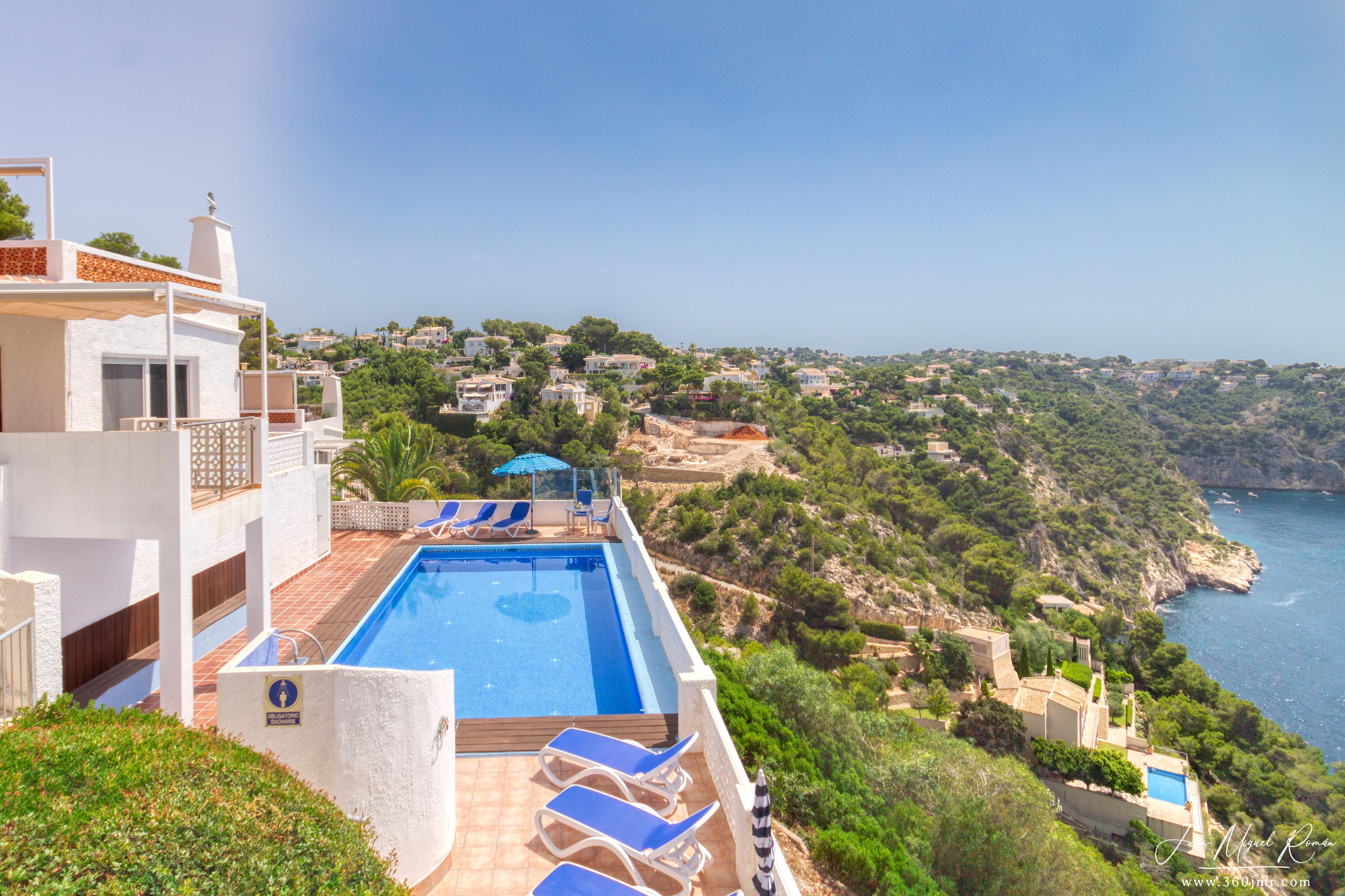 Jedes Haus hat einen separaten Eingang und individuelle Terrassen. Der schöne Salzpool mit solarbetriebener Poolheizung auf der untersten Ebene wird nur von diesen 6 Unterkünften genutzt. In einem dieser Häuser wohnt der Hausmeister, der die Gäste empfängt und die Gartenanlage sowie den Pool pflegt. Sie haben auch die Möglichkeit Ihr Elektroauto am Haus aufzuladen. Die Anlage liegt an einer Privatstraße und ist absolut ruhig. Am Wochenende kann man die vorbeifahrenden Yachten beobachten. Auf dem Weg nach unten, in Richtung Javea, liegen viele interessante Restaurants, und in Javea mit seinem schönen Strand stehen Ihnen viele kulinarische sowie kulturelle Möglichkeiten zur Verfügung.