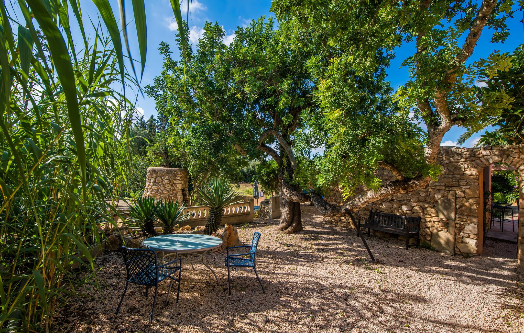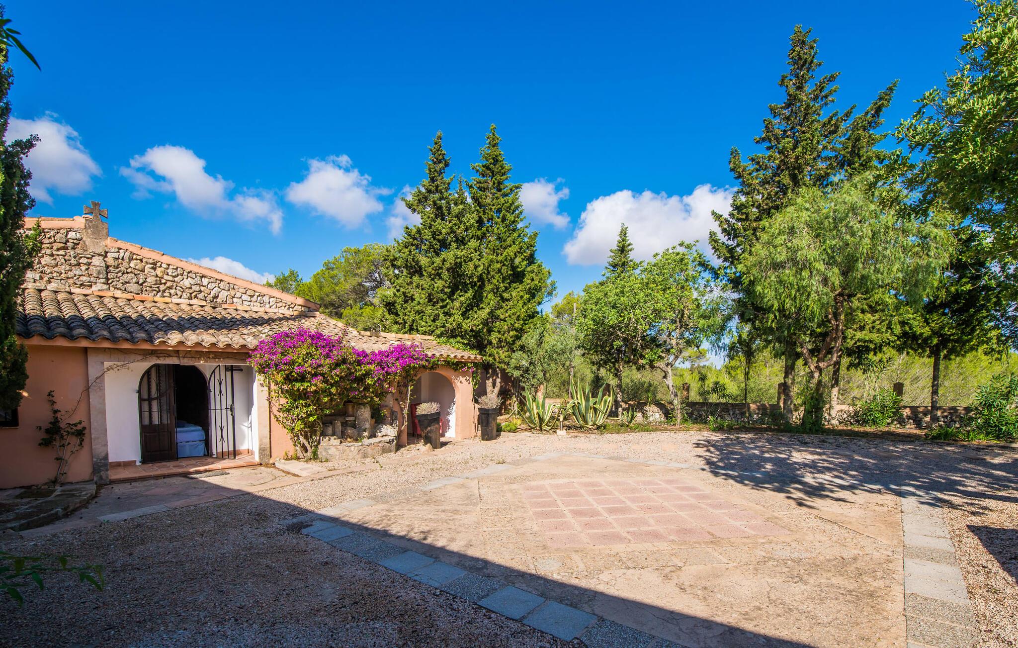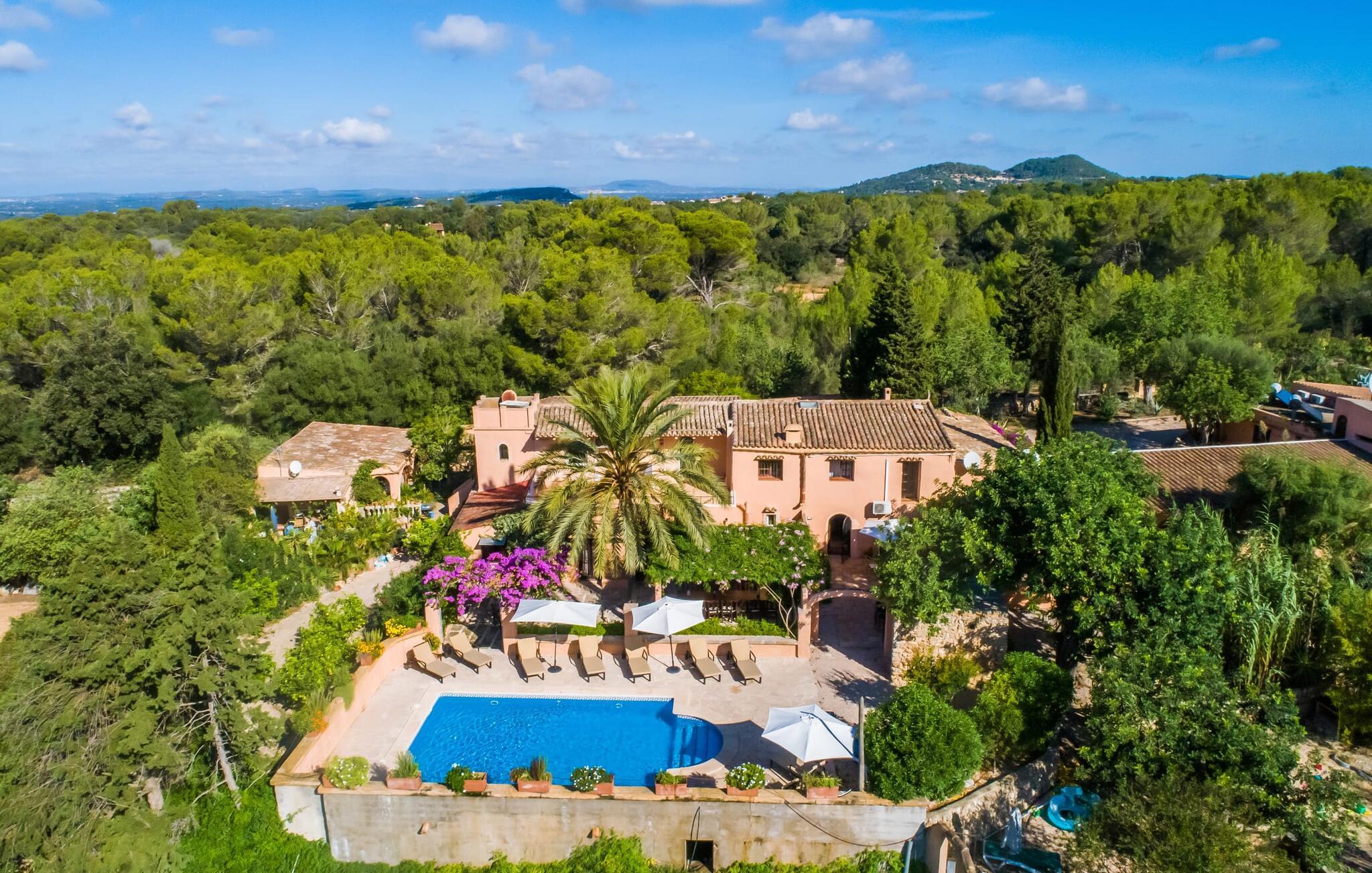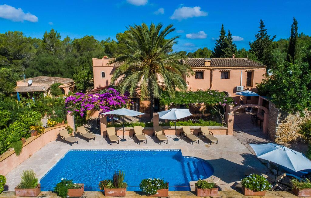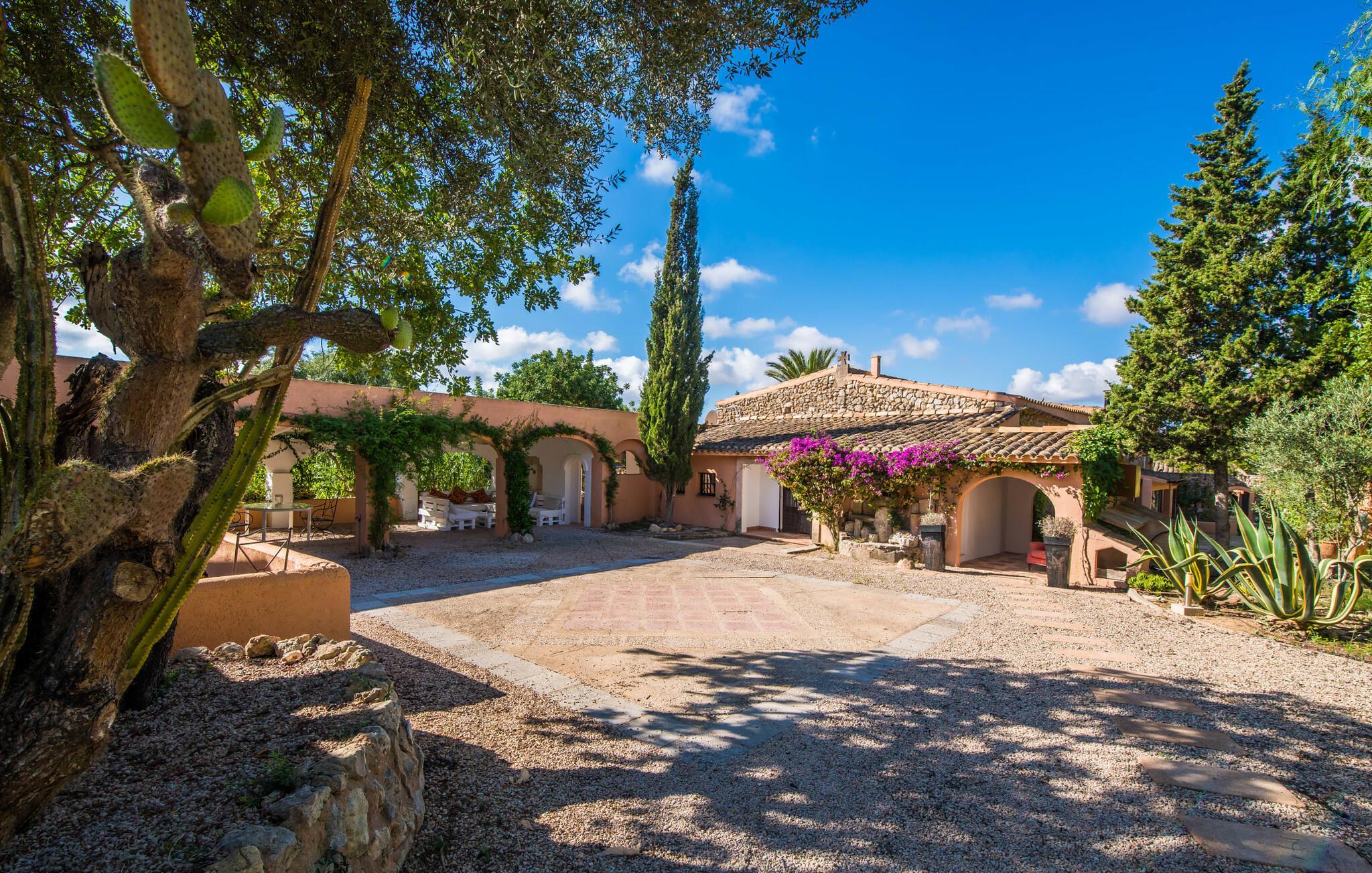 Planlægger I en ferie med en større gruppe? For eksempel flere familier med børn? Og værdsætter I komfort og privatliv? Så er fincaen "Jordi de Cas Concos" på det sydlige Mallorca det perfekte feriehus for jer! Ejendommen er bygget på en kæmpe grund omgivet af smukke middelhavslandskaber. Her har I uendelig plads – og takket være det charmerende design af udearealet er der også rig mulighed for at trække sig tilbage. Haven og de mange forskellige overdækkede og solrige terrassearealer, de smukt anlagte stier og de ugenerte gårdhaver er himmelsk smukke – man ved slet ikke, hvor man skal sætte sig først. Har I lyst til at dyrke motion, svømme i poolen eller spille et spil bordtennis, så mødes måske til en drink i baren eller sæt jer sammen ved langbordet og nyd friskgrillede lækkerier og en salat tilberedt i udekøkkenet. "Jordi d Cas Concos" er ikke en "hyldevare" finca: den er blevet møbleret og designet meget individuelt og originalt med stor sans for detaljer. Lyse farver, nogle gange farvestrålende vægge og billeder i stort format spreder en sommerlig stemning, mens rustikke elementer som træbjælker og groft pudsede lofter understreger den landlige karakter. I stueetagen er der udover indgangspartiet og en stor stue med to sofaer mange andre komfortable siddepladser, herunder forskellige murstensbænke med behagelige hynder. I spisestuen kan I feste sammen ved bordet. I kan tilberede jeres måltider i det smarte, solgule køkken ved siden af. Også her finder I en muret bænk rundt om et smukt glasbord, så I kan spise en skøn morgenmad sammen. I alt tre rummelige dobbeltværelser, hvoraf det ene har en-suite badeværelse, og yderligere to moderne badeværelser fuldender boligkomforten i stueetagen, mens yderligere to soveværelser med en-suite badeværelser venter på jer på øverste etage. I en anden bygning er der bekvemt endnu et dobbeltværelse med eget badeværelse, som er tilgængeligt udefra, så gruppen, der bor her, er helt selvstændig. Til fincaen hører også et gæstehus med to ekstra soveværelser, som kan lejes ud efter anmodning. Landskabet omkring jeres finca er meget grønt, typisk middelhavslandskab og indbyder til lange gåture. For at komme til Cas Concos des Cavaller kører man dog kun 3,9 km i lejebil ad den akustisk mærkbare vej. Her finder I ingen særlige seværdigheder, men den idylliske landsby med sine bakker, der minder om Toscana, er et længselssted for mange tyske Mallorca-elskere, hvoraf nogle har købt eksklusive feriehuse i det behageligt rolige område gennem årene. Det bedste sted at shoppe er i nabobyen Felanitx, som også kun ligger 4,5 km fra jeres hus. Sørg for at prøve de lækre kapers, der dyrkes rundt omkring i byen, og gå ikke glip af de fremragende lokale vine - Felanitx er centrum for øens næststørste vinregion. Til en strandtur er I forkælet med valg mellem de forskellige fortryllende bugter i Cala Gran, Cala d'Or, Cala Sa Nau og Cala Esmeralda, som alle ligger lidt over 11 km væk. Beliggende midt i et smukt landskab, fincaejendommen "Jordi de Cas Concos", som består af flere bygninger, scorer ikke kun med en masse privatliv, men også med en vidunderlig stor grund og en paradisisk have fuld af retreater. . Forskellige overdækkede og solrige terrasseområder inviterer til at blive hængende, poolen byder på velkomstforfriskning og lige ved siden af kan I nyde en kølig drink i baren. Der er godt 11 km i bil til stranden i Cala Gran og kun 4,5 km til byen Felanitx.
