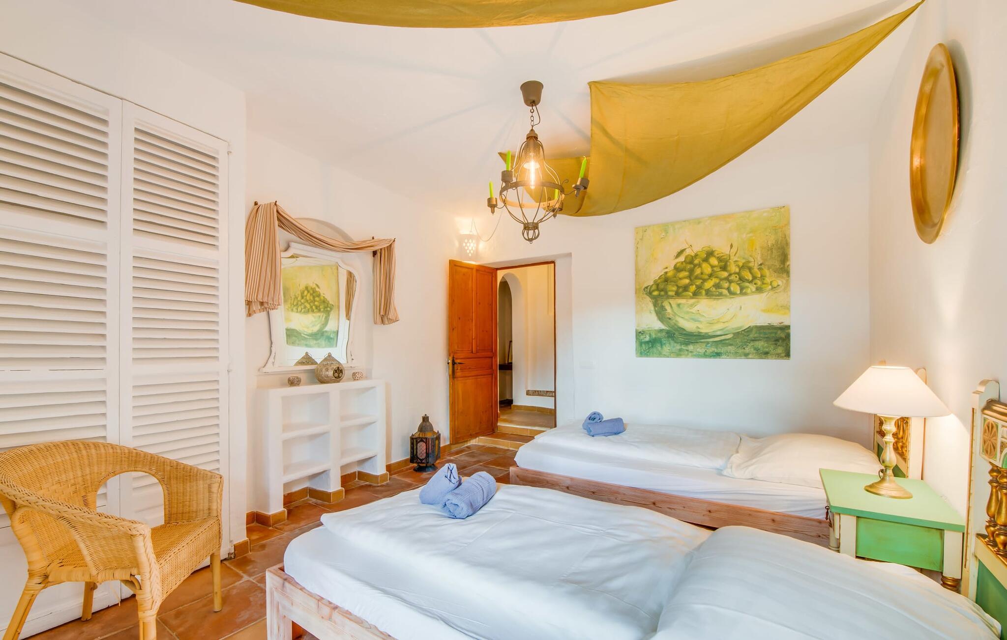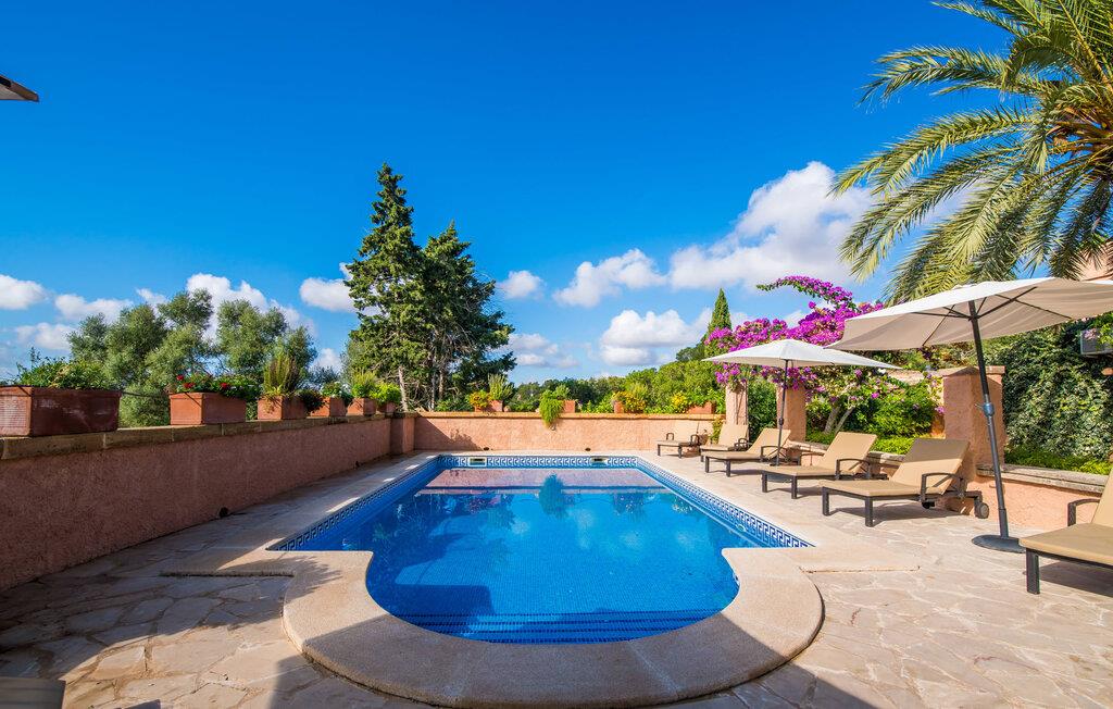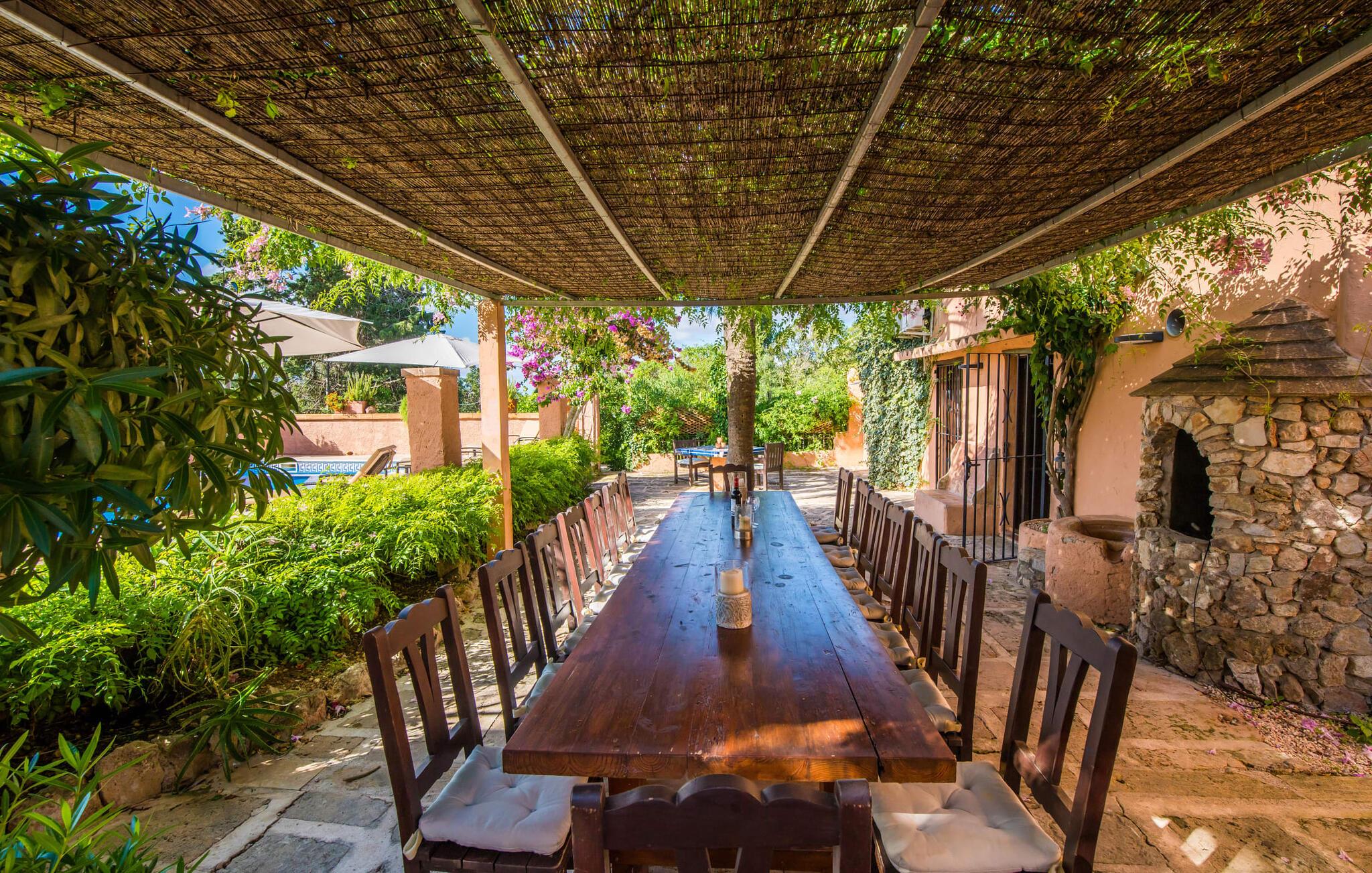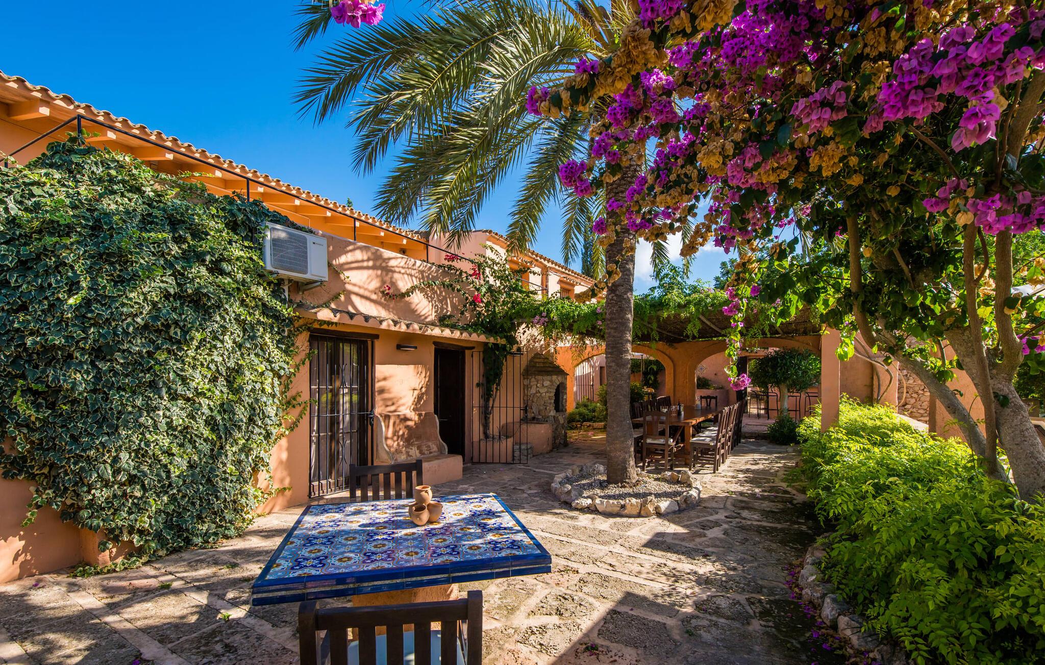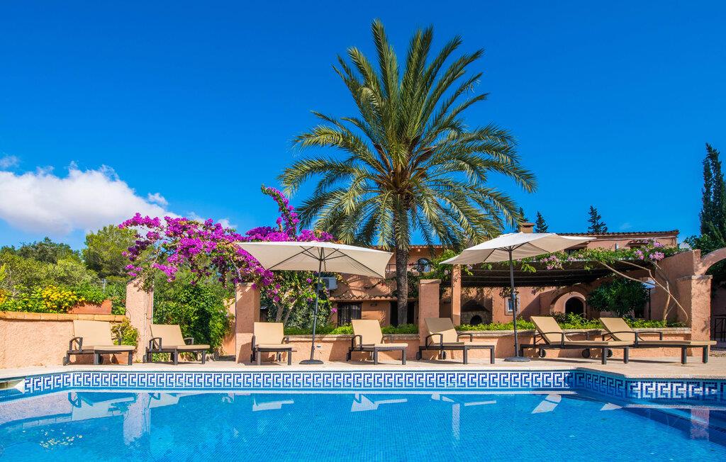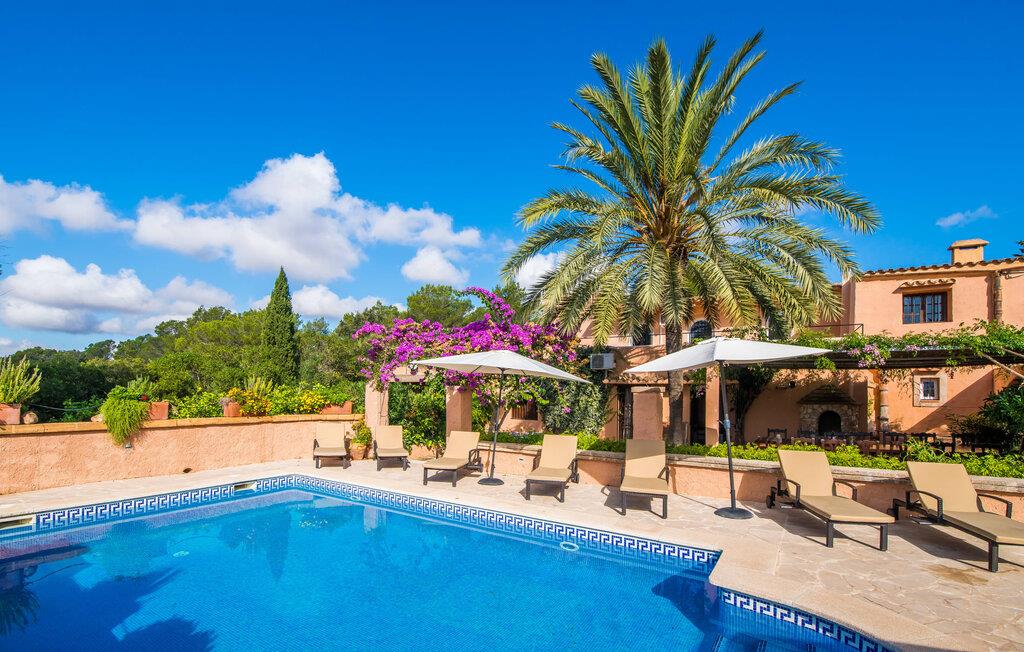 Planlægger I en ferie med en større gruppe? For eksempel flere familier med børn? Og værdsætter I komfort og privatliv? Så er fincaen "Jordi de Cas Concos" på det sydlige Mallorca det perfekte feriehus for jer! Ejendommen er bygget på en kæmpe grund omgivet af smukke middelhavslandskaber. Her har I uendelig plads – og takket være det charmerende design af udearealet er der også rig mulighed for at trække sig tilbage. Haven og de mange forskellige overdækkede og solrige terrassearealer, de smukt anlagte stier og de ugenerte gårdhaver er himmelsk smukke – man ved slet ikke, hvor man skal sætte sig først. Har I lyst til at dyrke motion, svømme i poolen eller spille et spil bordtennis, så mødes måske til en drink i baren eller sæt jer sammen ved langbordet og nyd friskgrillede lækkerier og en salat tilberedt i udekøkkenet. "Jordi d Cas Concos" er ikke en "hyldevare" finca: den er blevet møbleret og designet meget individuelt og originalt med stor sans for detaljer. Lyse farver, nogle gange farvestrålende vægge og billeder i stort format spreder en sommerlig stemning, mens rustikke elementer som træbjælker og groft pudsede lofter understreger den landlige karakter. I stueetagen er der udover indgangspartiet og en stor stue med to sofaer mange andre komfortable siddepladser, herunder forskellige murstensbænke med behagelige hynder. I spisestuen kan I feste sammen ved bordet. I kan tilberede jeres måltider i det smarte, solgule køkken ved siden af. Også her finder I en muret bænk rundt om et smukt glasbord, så I kan spise en skøn morgenmad sammen. I alt tre rummelige dobbeltværelser, hvoraf det ene har en-suite badeværelse, og yderligere to moderne badeværelser fuldender boligkomforten i stueetagen, mens yderligere to soveværelser med en-suite badeværelser venter på jer på øverste etage. I en anden bygning er der bekvemt endnu et dobbeltværelse med eget badeværelse, som er tilgængeligt udefra, så gruppen, der bor her, er helt selvstændig. Til fincaen hører også et gæstehus med to ekstra soveværelser, som kan lejes ud efter anmodning. Landskabet omkring jeres finca er meget grønt, typisk middelhavslandskab og indbyder til lange gåture. For at komme til Cas Concos des Cavaller kører man dog kun 3,9 km i lejebil ad den akustisk mærkbare vej. Her finder I ingen særlige seværdigheder, men den idylliske landsby med sine bakker, der minder om Toscana, er et længselssted for mange tyske Mallorca-elskere, hvoraf nogle har købt eksklusive feriehuse i det behageligt rolige område gennem årene. Det bedste sted at shoppe er i nabobyen Felanitx, som også kun ligger 4,5 km fra jeres hus. Sørg for at prøve de lækre kapers, der dyrkes rundt omkring i byen, og gå ikke glip af de fremragende lokale vine - Felanitx er centrum for øens næststørste vinregion. Til en strandtur er I forkælet med valg mellem de forskellige fortryllende bugter i Cala Gran, Cala d'Or, Cala Sa Nau og Cala Esmeralda, som alle ligger lidt over 11 km væk. Beliggende midt i et smukt landskab, fincaejendommen "Jordi de Cas Concos", som består af flere bygninger, scorer ikke kun med en masse privatliv, men også med en vidunderlig stor grund og en paradisisk have fuld af retreater. . Forskellige overdækkede og solrige terrasseområder inviterer til at blive hængende, poolen byder på velkomstforfriskning og lige ved siden af kan I nyde en kølig drink i baren. Der er godt 11 km i bil til stranden i Cala Gran og kun 4,5 km til byen Felanitx.