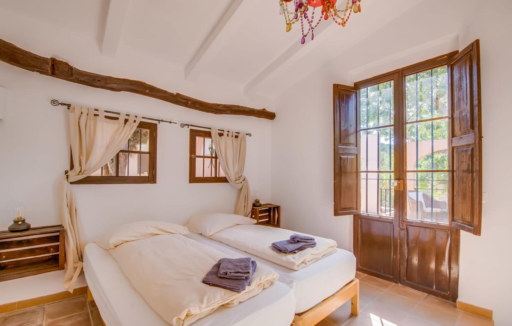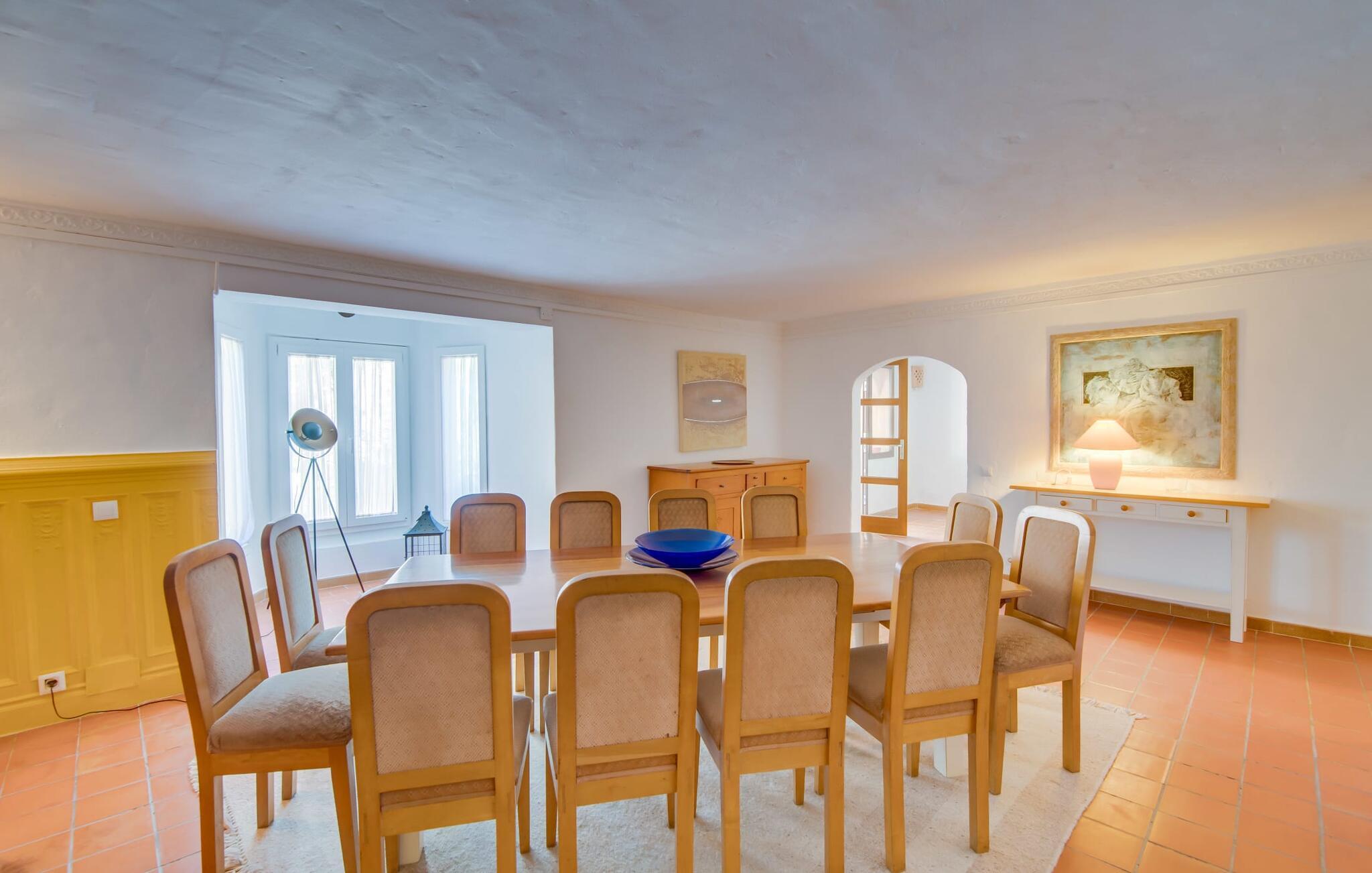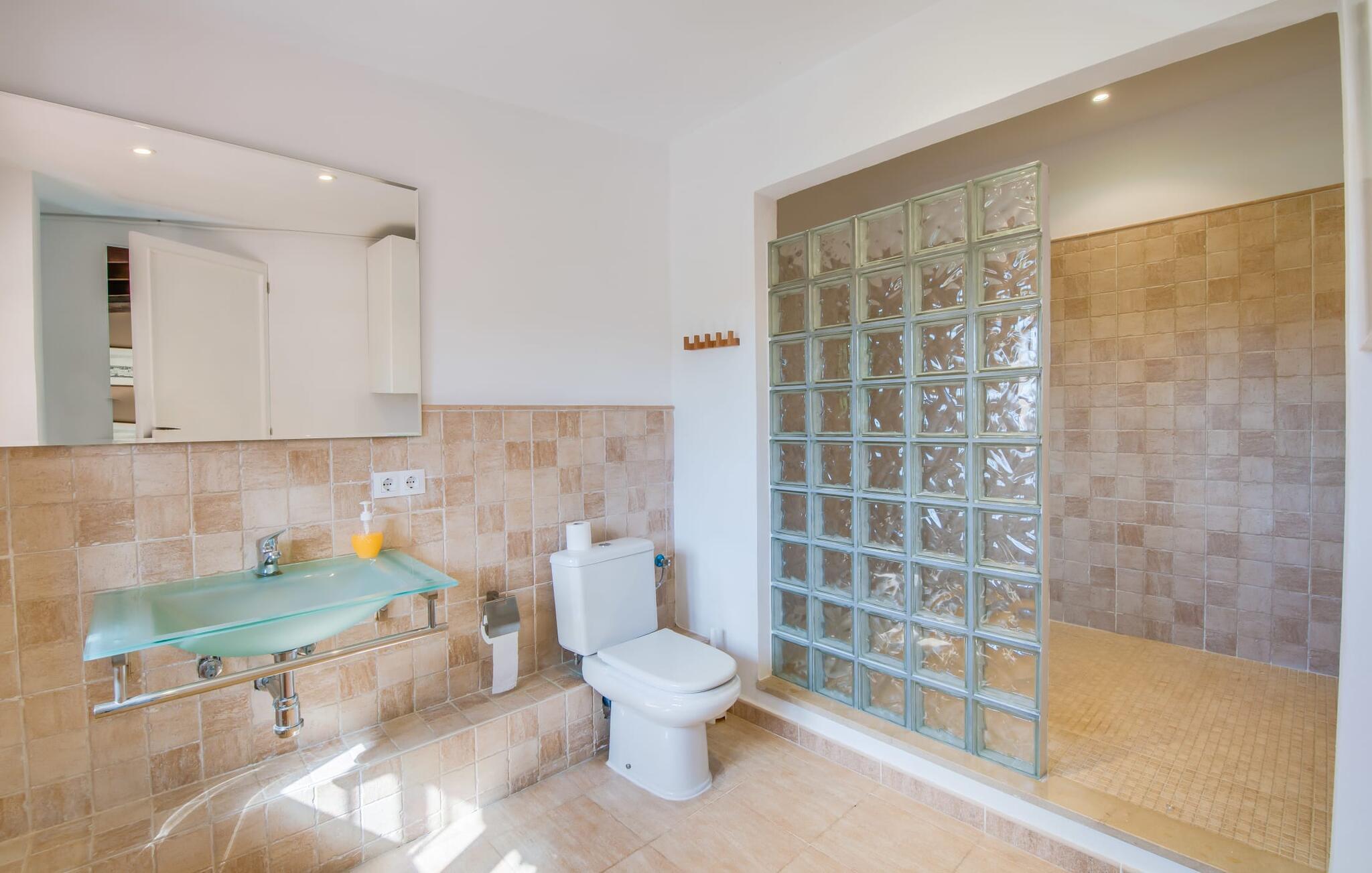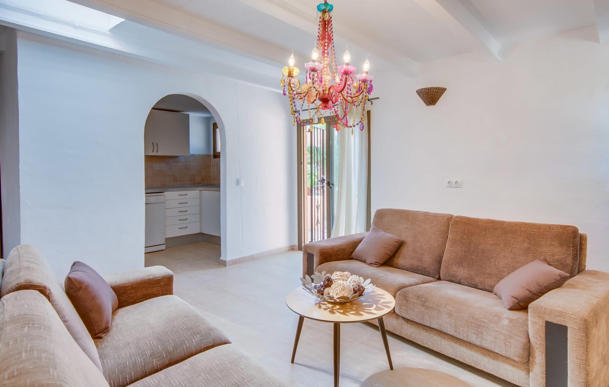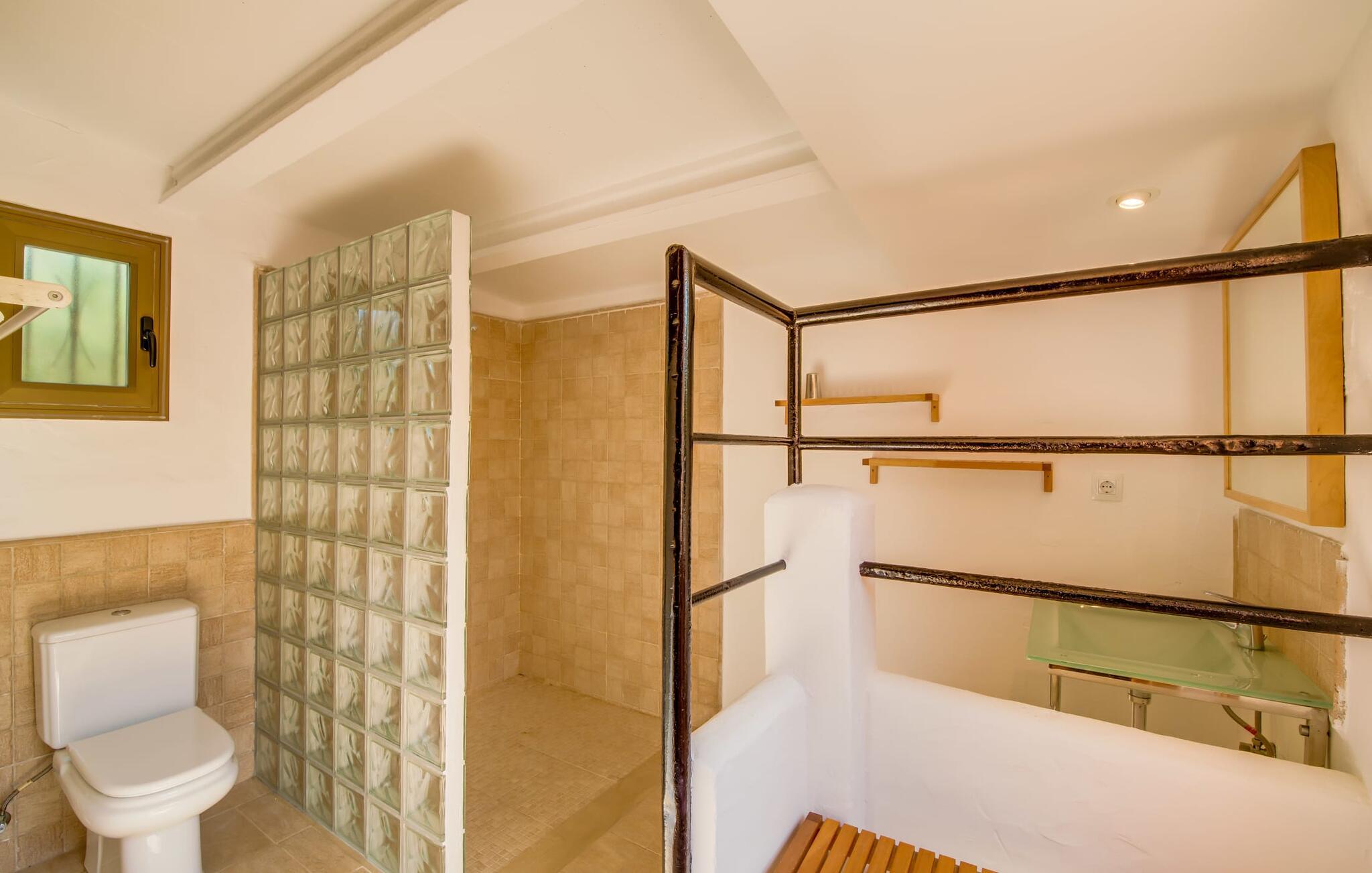 Planlægger I en ferie med en større gruppe? For eksempel flere familier med børn? Og værdsætter I komfort og privatliv? Så er fincaen "Jordi de Cas Concos" på det sydlige Mallorca det perfekte feriehus for jer! Ejendommen er bygget på en kæmpe grund omgivet af smukke middelhavslandskaber. Her har I uendelig plads – og takket være det charmerende design af udearealet er der også rig mulighed for at trække sig tilbage. Haven og de mange forskellige overdækkede og solrige terrassearealer, de smukt anlagte stier og de ugenerte gårdhaver er himmelsk smukke – man ved slet ikke, hvor man skal sætte sig først. Har I lyst til at dyrke motion, svømme i poolen eller spille et spil bordtennis, så mødes måske til en drink i baren eller sæt jer sammen ved langbordet og nyd friskgrillede lækkerier og en salat tilberedt i udekøkkenet. "Jordi d Cas Concos" er ikke en "hyldevare" finca: den er blevet møbleret og designet meget individuelt og originalt med stor sans for detaljer. Lyse farver, nogle gange farvestrålende vægge og billeder i stort format spreder en sommerlig stemning, mens rustikke elementer som træbjælker og groft pudsede lofter understreger den landlige karakter. I stueetagen er der udover indgangspartiet og en stor stue med to sofaer mange andre komfortable siddepladser, herunder forskellige murstensbænke med behagelige hynder. I spisestuen kan I feste sammen ved bordet. I kan tilberede jeres måltider i det smarte, solgule køkken ved siden af. Også her finder I en muret bænk rundt om et smukt glasbord, så I kan spise en skøn morgenmad sammen. I alt tre rummelige dobbeltværelser, hvoraf det ene har en-suite badeværelse, og yderligere to moderne badeværelser fuldender boligkomforten i stueetagen, mens yderligere to soveværelser med en-suite badeværelser venter på jer på øverste etage. I en anden bygning er der bekvemt endnu et dobbeltværelse med eget badeværelse, som er tilgængeligt udefra, så gruppen, der bor her, er helt selvstændig. Til fincaen hører også et gæstehus med to ekstra soveværelser, som kan lejes ud efter anmodning. Landskabet omkring jeres finca er meget grønt, typisk middelhavslandskab og indbyder til lange gåture. For at komme til Cas Concos des Cavaller kører man dog kun 3,9 km i lejebil ad den akustisk mærkbare vej. Her finder I ingen særlige seværdigheder, men den idylliske landsby med sine bakker, der minder om Toscana, er et længselssted for mange tyske Mallorca-elskere, hvoraf nogle har købt eksklusive feriehuse i det behageligt rolige område gennem årene. Det bedste sted at shoppe er i nabobyen Felanitx, som også kun ligger 4,5 km fra jeres hus. Sørg for at prøve de lækre kapers, der dyrkes rundt omkring i byen, og gå ikke glip af de fremragende lokale vine - Felanitx er centrum for øens næststørste vinregion. Til en strandtur er I forkælet med valg mellem de forskellige fortryllende bugter i Cala Gran, Cala d'Or, Cala Sa Nau og Cala Esmeralda, som alle ligger lidt over 11 km væk. Beliggende midt i et smukt landskab, fincaejendommen "Jordi de Cas Concos", som består af flere bygninger, scorer ikke kun med en masse privatliv, men også med en vidunderlig stor grund og en paradisisk have fuld af retreater. . Forskellige overdækkede og solrige terrasseområder inviterer til at blive hængende, poolen byder på velkomstforfriskning og lige ved siden af kan I nyde en kølig drink i baren. Der er godt 11 km i bil til stranden i Cala Gran og kun 4,5 km til byen Felanitx.