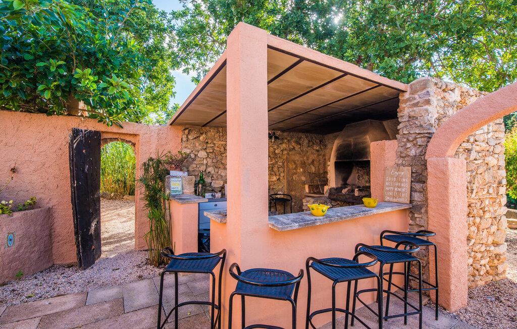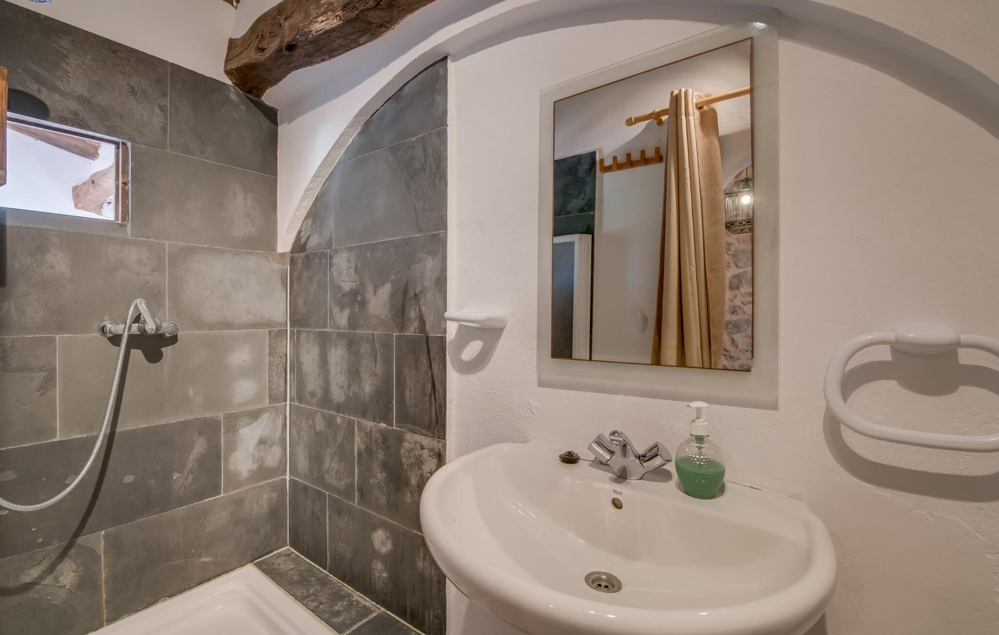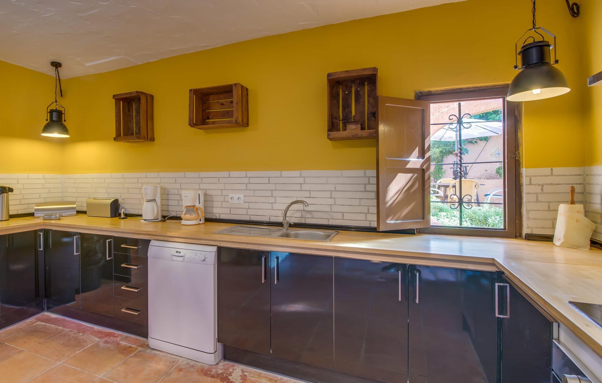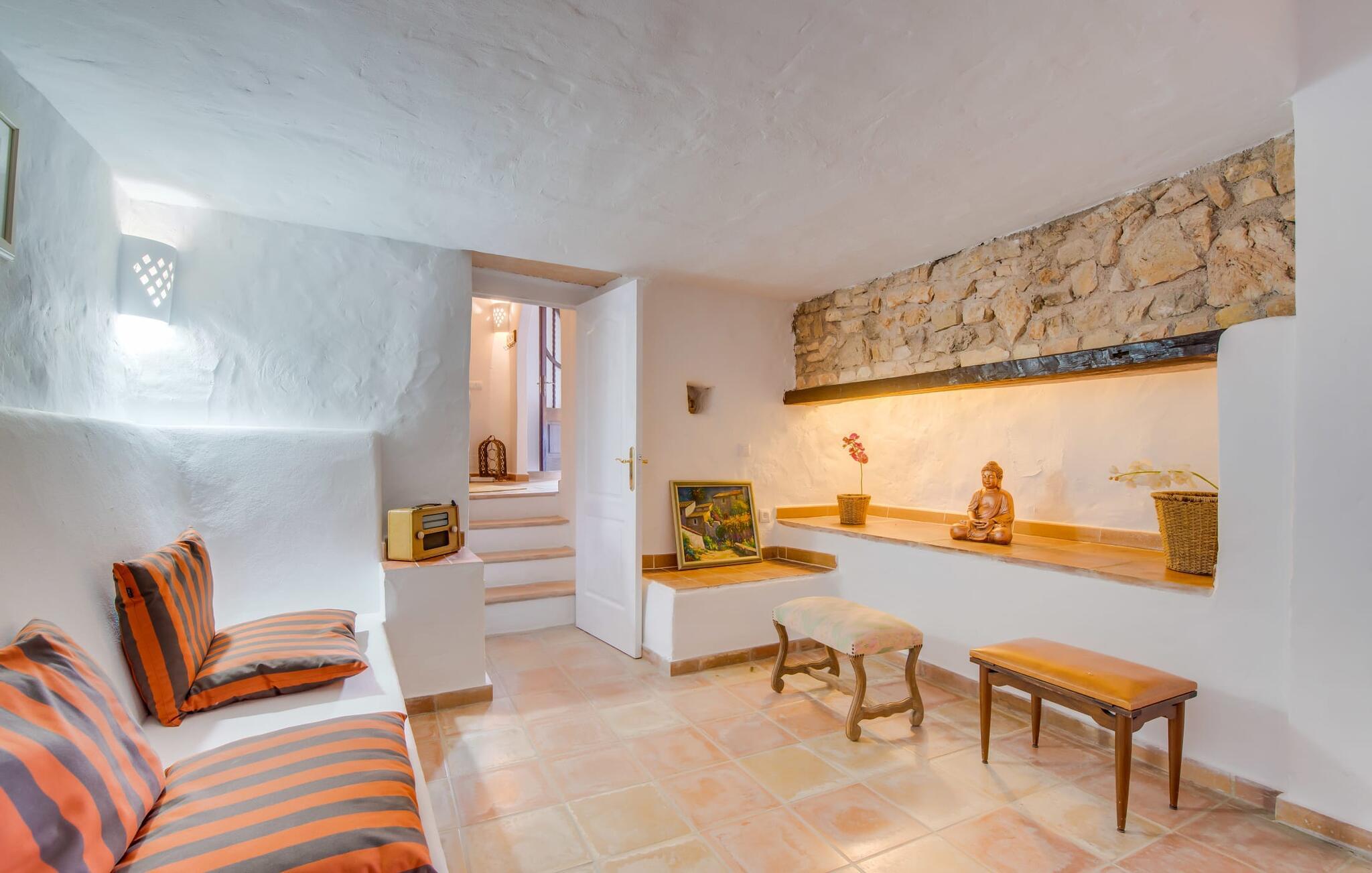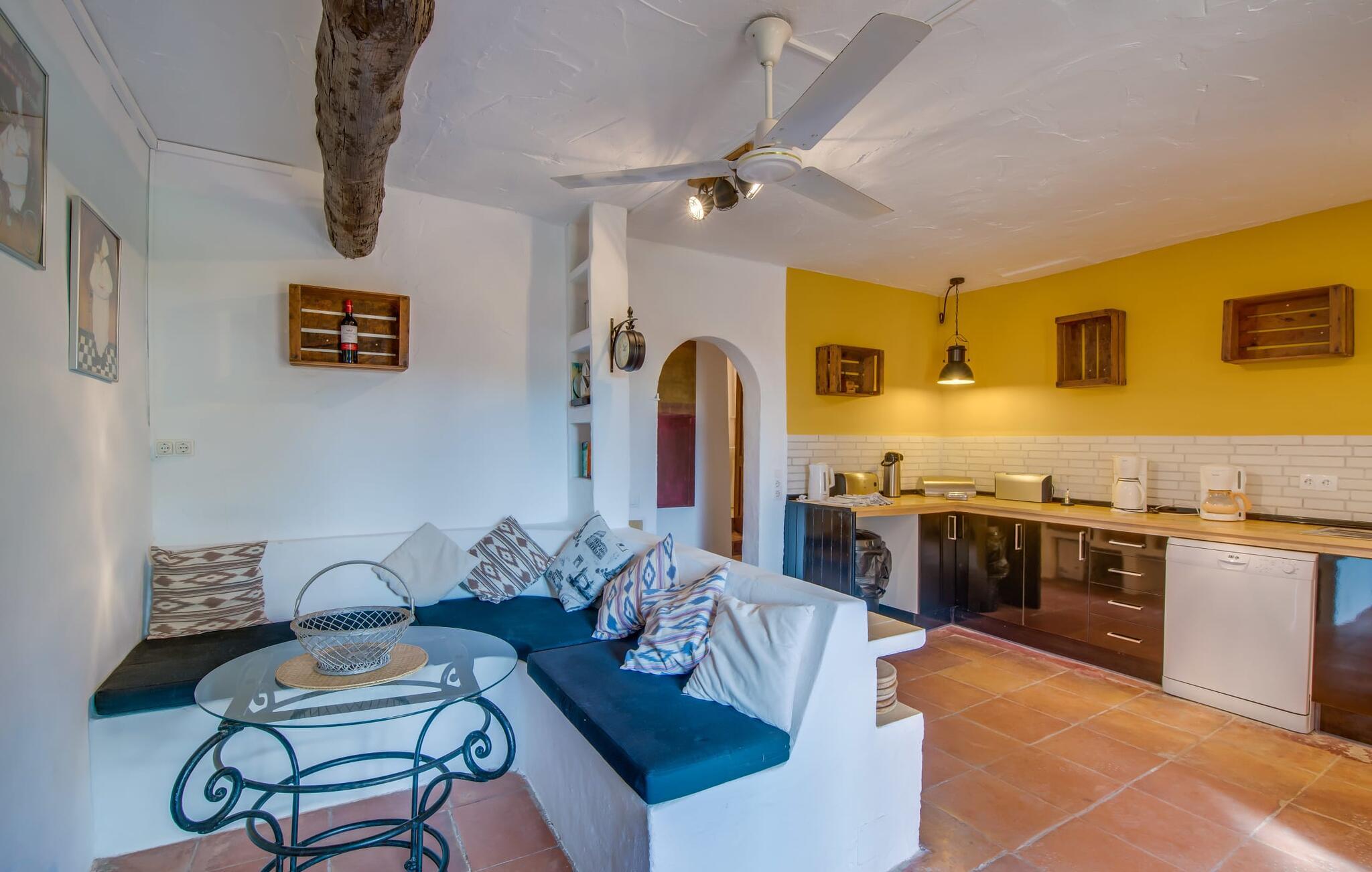 Planlægger I en ferie med en større gruppe? For eksempel flere familier med børn? Og værdsætter I komfort og privatliv? Så er fincaen "Jordi de Cas Concos" på det sydlige Mallorca det perfekte feriehus for jer! Ejendommen er bygget på en kæmpe grund omgivet af smukke middelhavslandskaber. Her har I uendelig plads – og takket være det charmerende design af udearealet er der også rig mulighed for at trække sig tilbage. Haven og de mange forskellige overdækkede og solrige terrassearealer, de smukt anlagte stier og de ugenerte gårdhaver er himmelsk smukke – man ved slet ikke, hvor man skal sætte sig først. Har I lyst til at dyrke motion, svømme i poolen eller spille et spil bordtennis, så mødes måske til en drink i baren eller sæt jer sammen ved langbordet og nyd friskgrillede lækkerier og en salat tilberedt i udekøkkenet. "Jordi d Cas Concos" er ikke en "hyldevare" finca: den er blevet møbleret og designet meget individuelt og originalt med stor sans for detaljer. Lyse farver, nogle gange farvestrålende vægge og billeder i stort format spreder en sommerlig stemning, mens rustikke elementer som træbjælker og groft pudsede lofter understreger den landlige karakter. I stueetagen er der udover indgangspartiet og en stor stue med to sofaer mange andre komfortable siddepladser, herunder forskellige murstensbænke med behagelige hynder. I spisestuen kan I feste sammen ved bordet. I kan tilberede jeres måltider i det smarte, solgule køkken ved siden af. Også her finder I en muret bænk rundt om et smukt glasbord, så I kan spise en skøn morgenmad sammen. I alt tre rummelige dobbeltværelser, hvoraf det ene har en-suite badeværelse, og yderligere to moderne badeværelser fuldender boligkomforten i stueetagen, mens yderligere to soveværelser med en-suite badeværelser venter på jer på øverste etage. I en anden bygning er der bekvemt endnu et dobbeltværelse med eget badeværelse, som er tilgængeligt udefra, så gruppen, der bor her, er helt selvstændig. Til fincaen hører også et gæstehus med to ekstra soveværelser, som kan lejes ud efter anmodning. Landskabet omkring jeres finca er meget grønt, typisk middelhavslandskab og indbyder til lange gåture. For at komme til Cas Concos des Cavaller kører man dog kun 3,9 km i lejebil ad den akustisk mærkbare vej. Her finder I ingen særlige seværdigheder, men den idylliske landsby med sine bakker, der minder om Toscana, er et længselssted for mange tyske Mallorca-elskere, hvoraf nogle har købt eksklusive feriehuse i det behageligt rolige område gennem årene. Det bedste sted at shoppe er i nabobyen Felanitx, som også kun ligger 4,5 km fra jeres hus. Sørg for at prøve de lækre kapers, der dyrkes rundt omkring i byen, og gå ikke glip af de fremragende lokale vine - Felanitx er centrum for øens næststørste vinregion. Til en strandtur er I forkælet med valg mellem de forskellige fortryllende bugter i Cala Gran, Cala d'Or, Cala Sa Nau og Cala Esmeralda, som alle ligger lidt over 11 km væk. Beliggende midt i et smukt landskab, fincaejendommen "Jordi de Cas Concos", som består af flere bygninger, scorer ikke kun med en masse privatliv, men også med en vidunderlig stor grund og en paradisisk have fuld af retreater. . Forskellige overdækkede og solrige terrasseområder inviterer til at blive hængende, poolen byder på velkomstforfriskning og lige ved siden af kan I nyde en kølig drink i baren. Der er godt 11 km i bil til stranden i Cala Gran og kun 4,5 km til byen Felanitx.