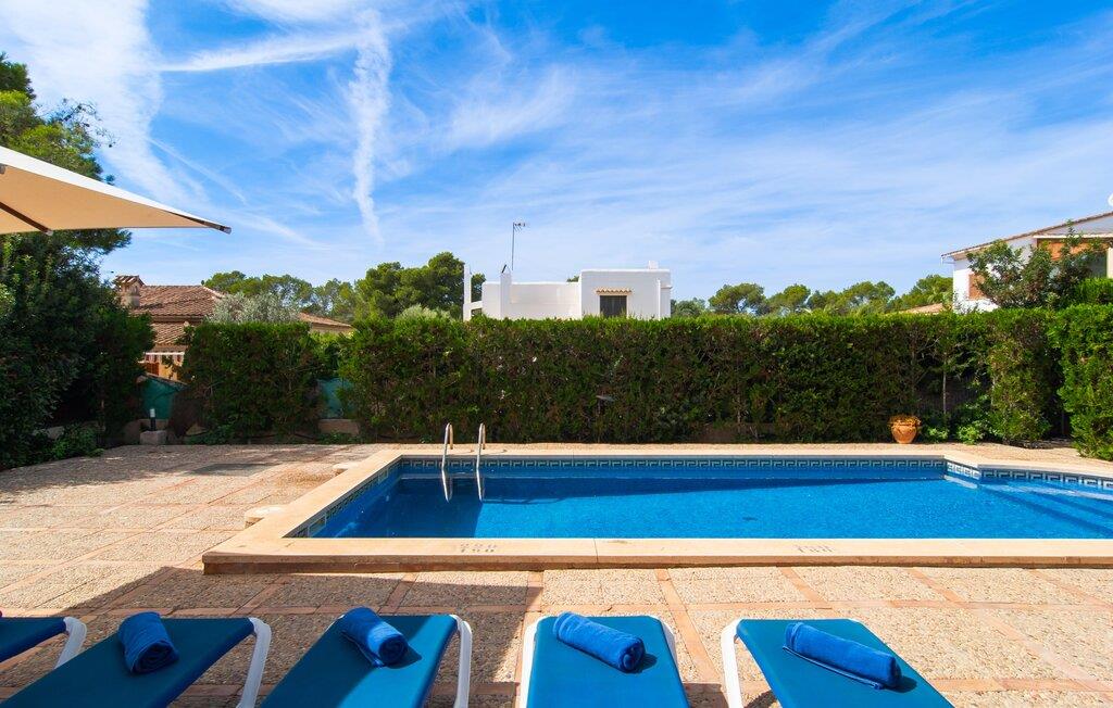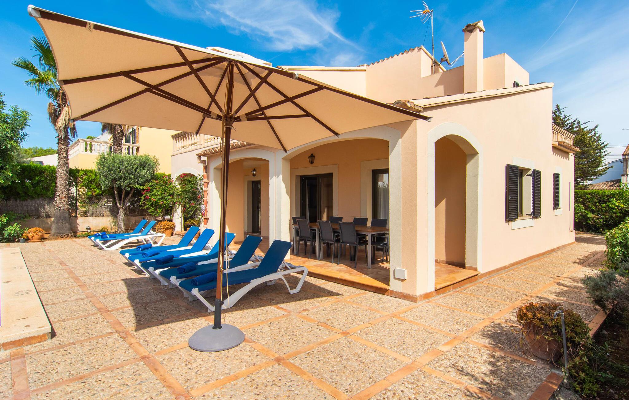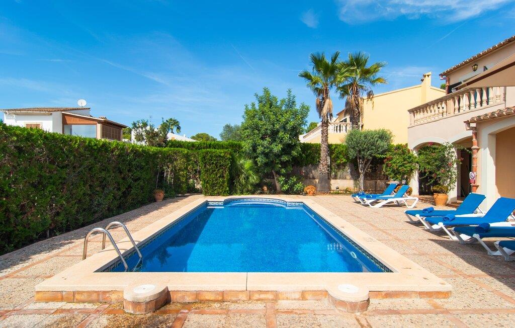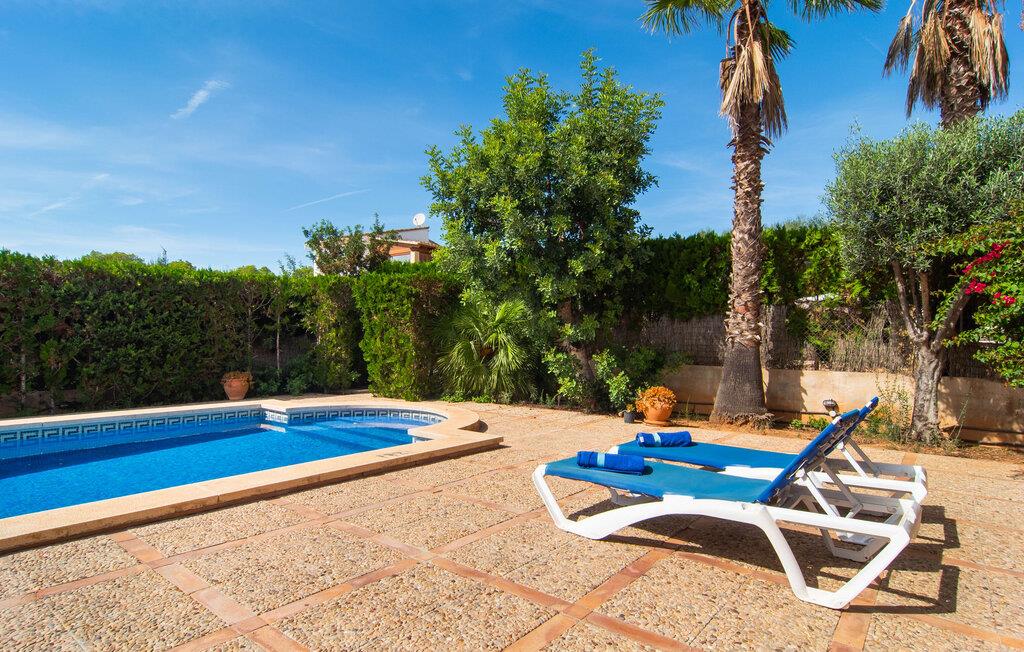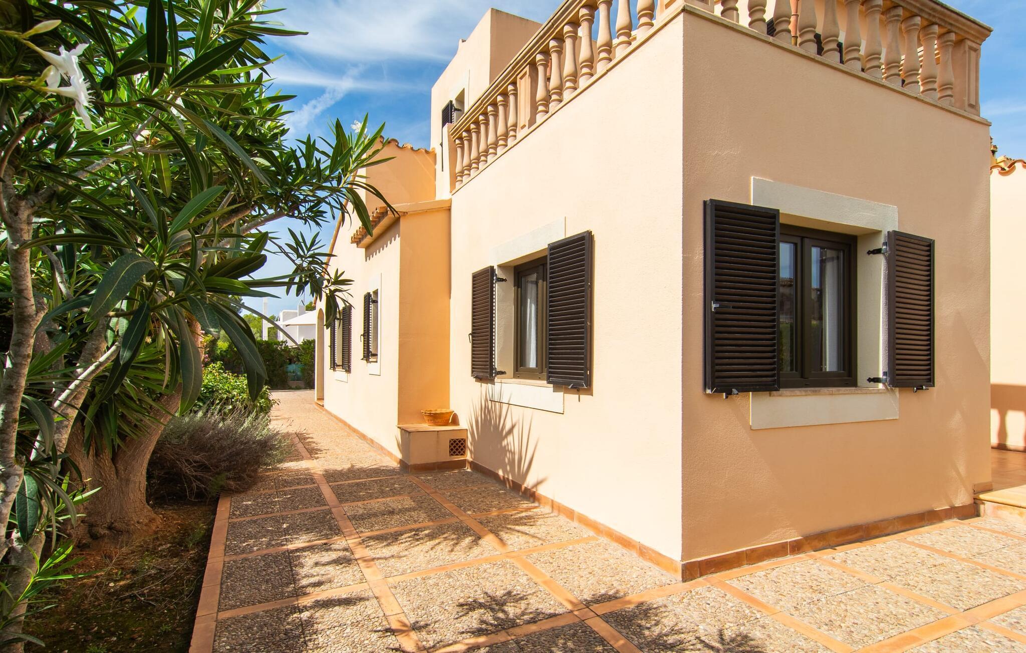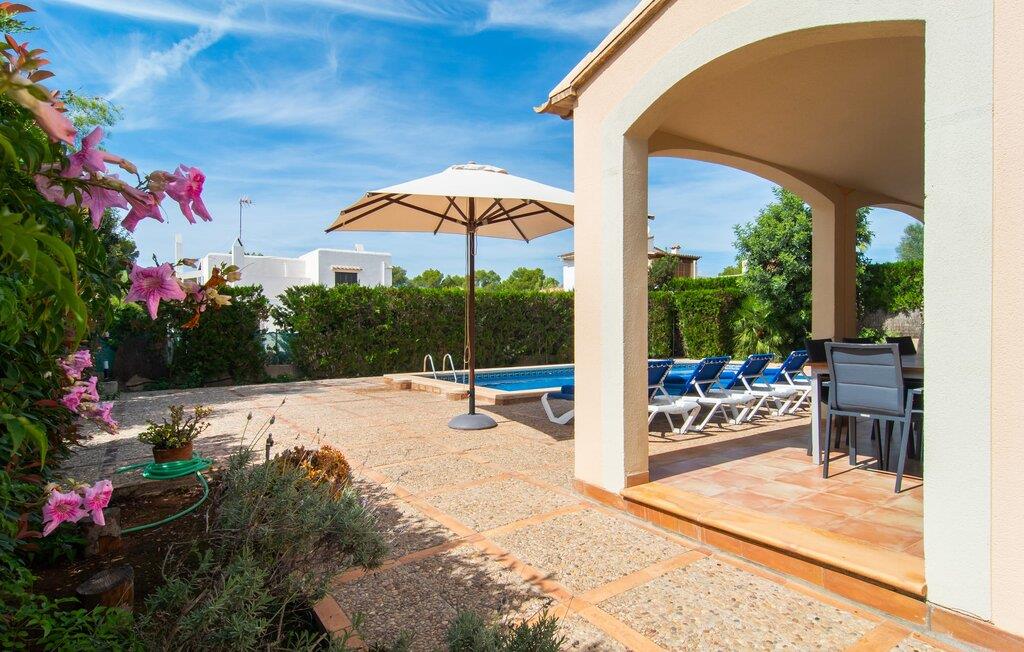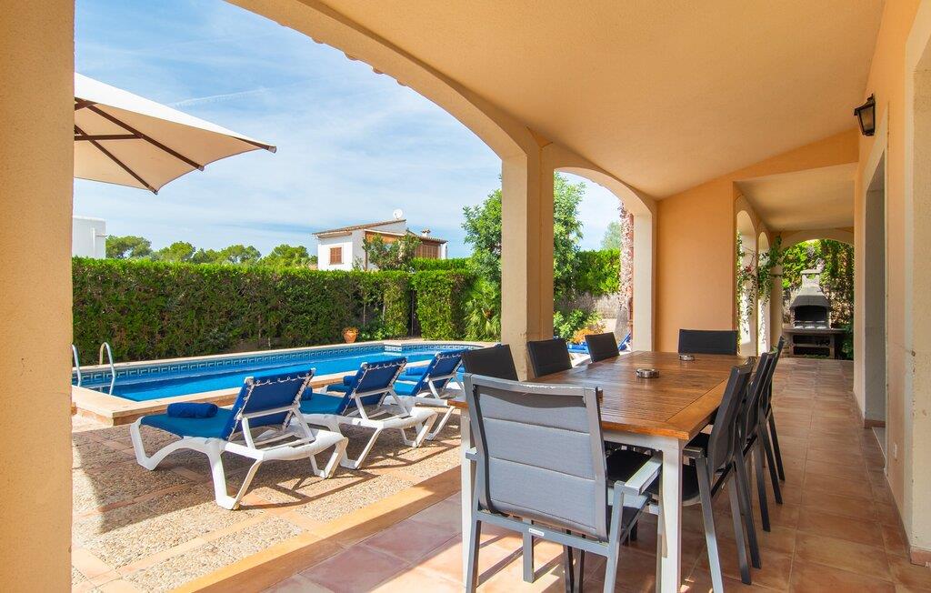 Den velholdte villa “Karen” på det sydlige Mallorca er tilgået via en lille port og omgivet af hække og terrasser. Den smukke, lange naturlige strand Sa Rápita kan nemt nås på cykel. Udenfor er der en dejlig pool med bænk og god plads til liggestole. Nyd hyggelige grillaftener i den store spisestue på den overdækkede terrasse ved huset, som er let tilgængelig fra køkken og stue. Den øverste etage har en balkonterrasse med udsigt over poolen og en østvendt terrasse til smukke solopgange og havudsigt i det fjerne. Er I en større gruppe og har brug for flere soveværelser? Bare spørg os – vi har andre smukke villaer i umiddelbar nærhed! De hyggelige og komfortabelt indrettede værelser er fordelt på to etager. Den lyse stue og spisestue er åben til det moderne og fuldt udstyrede køkken. Fra både stue og køkken er der direkte udgang til terrassen gennem glasdøre. Villaen har i alt fire dobbeltværelser. To af dem har eget badeværelse. De andre soveværelser deler endnu et badeværelse. Selv i de køligere måneder byder villaen på et behageligt indeklima takket være radiatorer. I øvrigt: I kan nemt leje cykler til ture til stranden på stedet under jeres ferie. Villaen ligger i den velholdte kystby Sa Rápita på det sydlige Mallorca. Den lange sandstrand Sa Rápita kan nås på 6 minutter i bil eller 8 minutter på cykel, og Es Trenc ligger 10 km derfra. Kystlandsbyen har små supermarkeder og restauranter. Der er yderligere indkøbsmuligheder i Campos, 13 km væk.