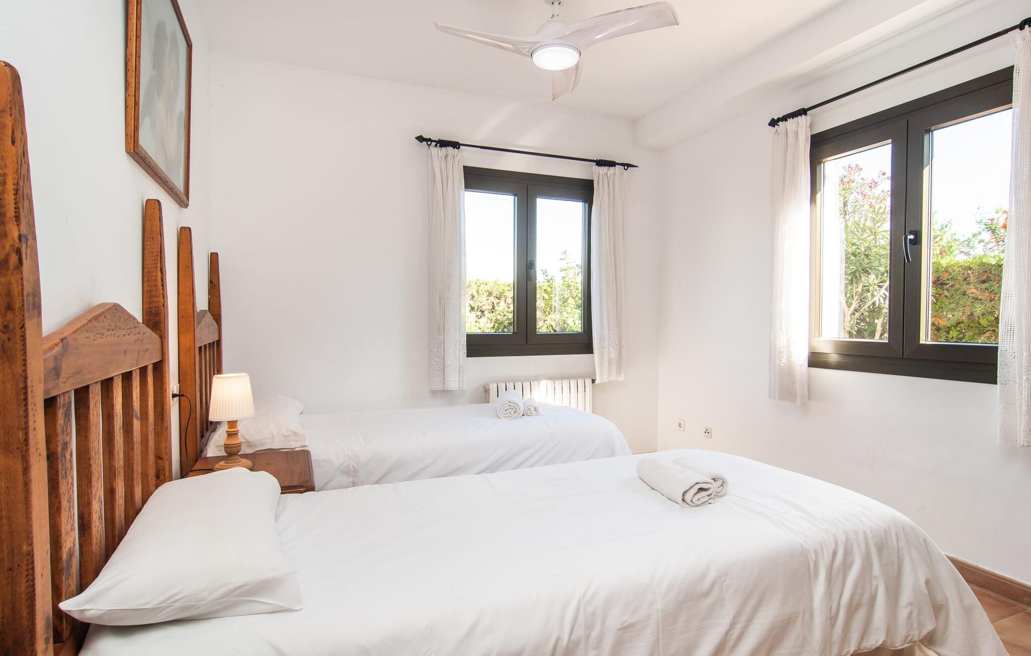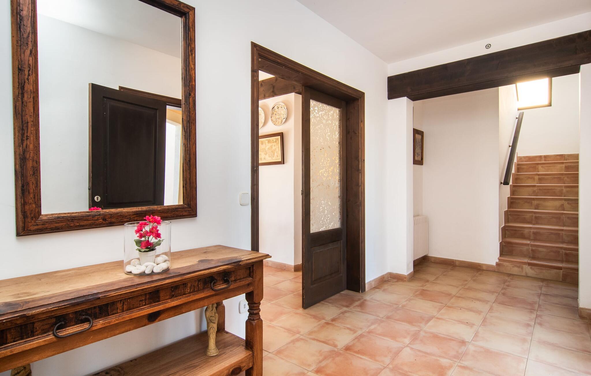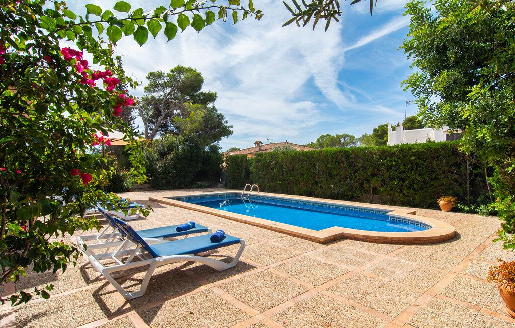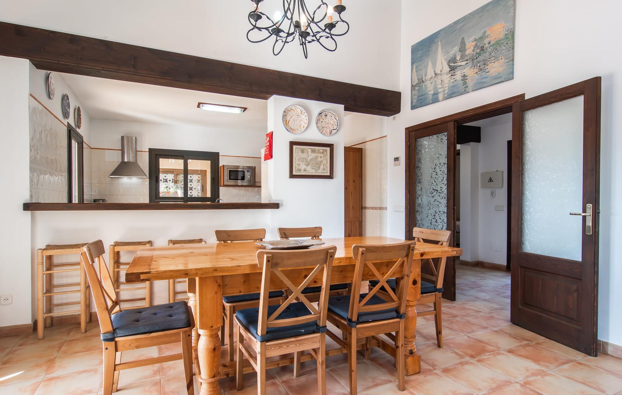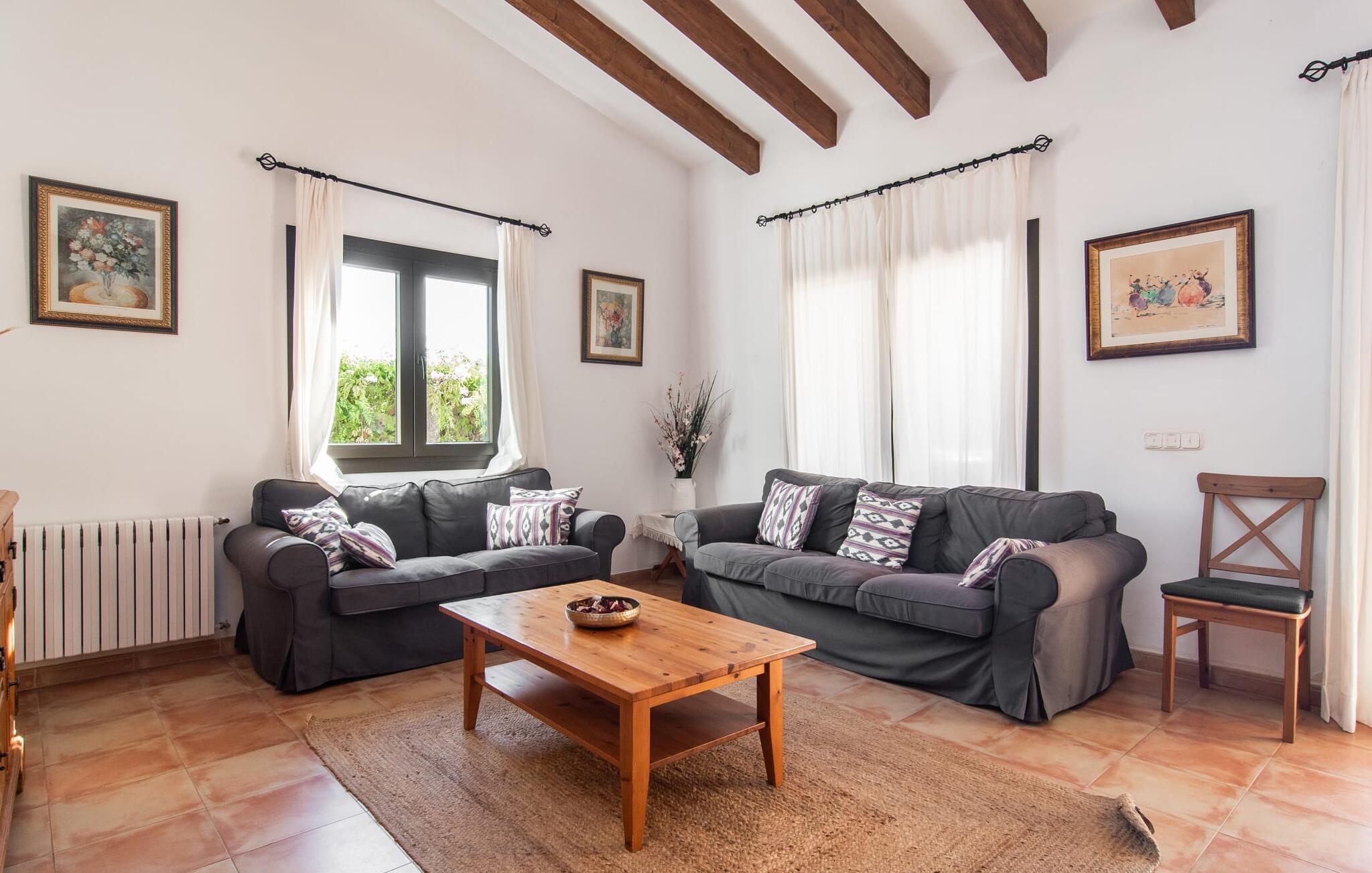 Den velholdte villa “Karen” på det sydlige Mallorca er tilgået via en lille port og omgivet af hække og terrasser. Den smukke, lange naturlige strand Sa Rápita kan nemt nås på cykel. Udenfor er der en dejlig pool med bænk og god plads til liggestole. Nyd hyggelige grillaftener i den store spisestue på den overdækkede terrasse ved huset, som er let tilgængelig fra køkken og stue. Den øverste etage har en balkonterrasse med udsigt over poolen og en østvendt terrasse til smukke solopgange og havudsigt i det fjerne. Er I en større gruppe og har brug for flere soveværelser? Bare spørg os – vi har andre smukke villaer i umiddelbar nærhed! De hyggelige og komfortabelt indrettede værelser er fordelt på to etager. Den lyse stue og spisestue er åben til det moderne og fuldt udstyrede køkken. Fra både stue og køkken er der direkte udgang til terrassen gennem glasdøre. Villaen har i alt fire dobbeltværelser. To af dem har eget badeværelse. De andre soveværelser deler endnu et badeværelse. Selv i de køligere måneder byder villaen på et behageligt indeklima takket være radiatorer. I øvrigt: I kan nemt leje cykler til ture til stranden på stedet under jeres ferie. Villaen ligger i den velholdte kystby Sa Rápita på det sydlige Mallorca. Den lange sandstrand Sa Rápita kan nås på 6 minutter i bil eller 8 minutter på cykel, og Es Trenc ligger 10 km derfra. Kystlandsbyen har små supermarkeder og restauranter. Der er yderligere indkøbsmuligheder i Campos, 13 km væk.