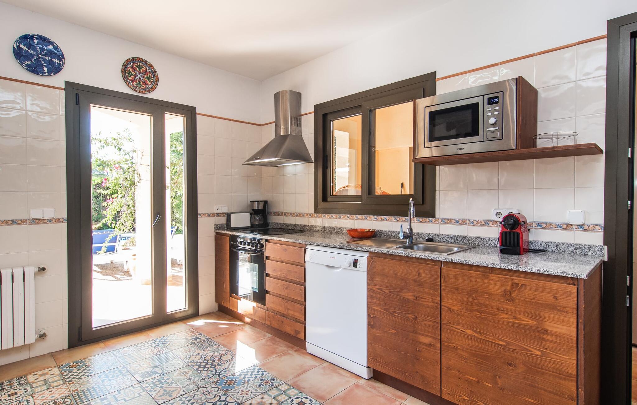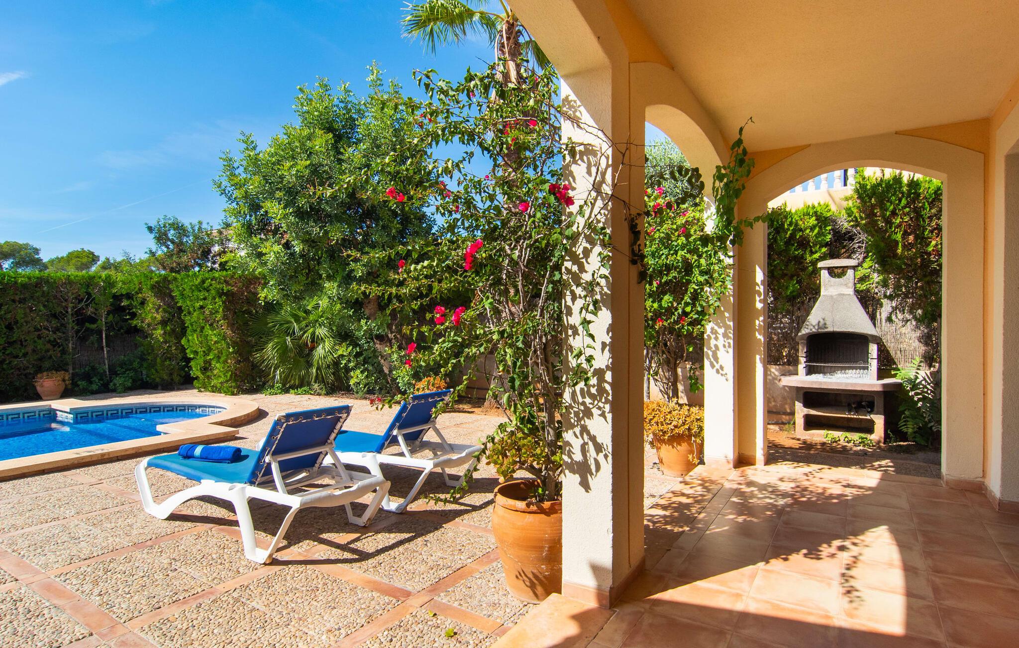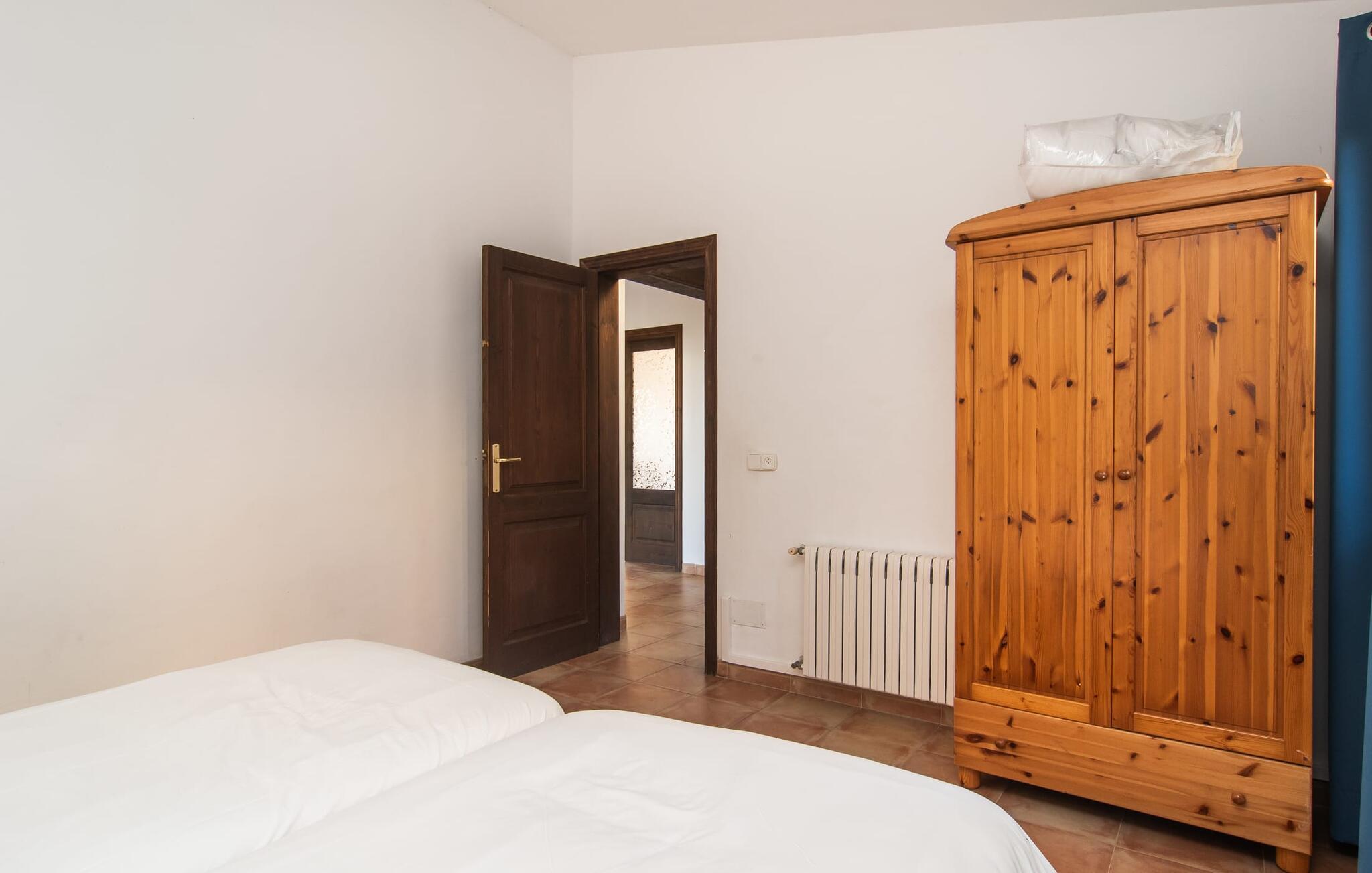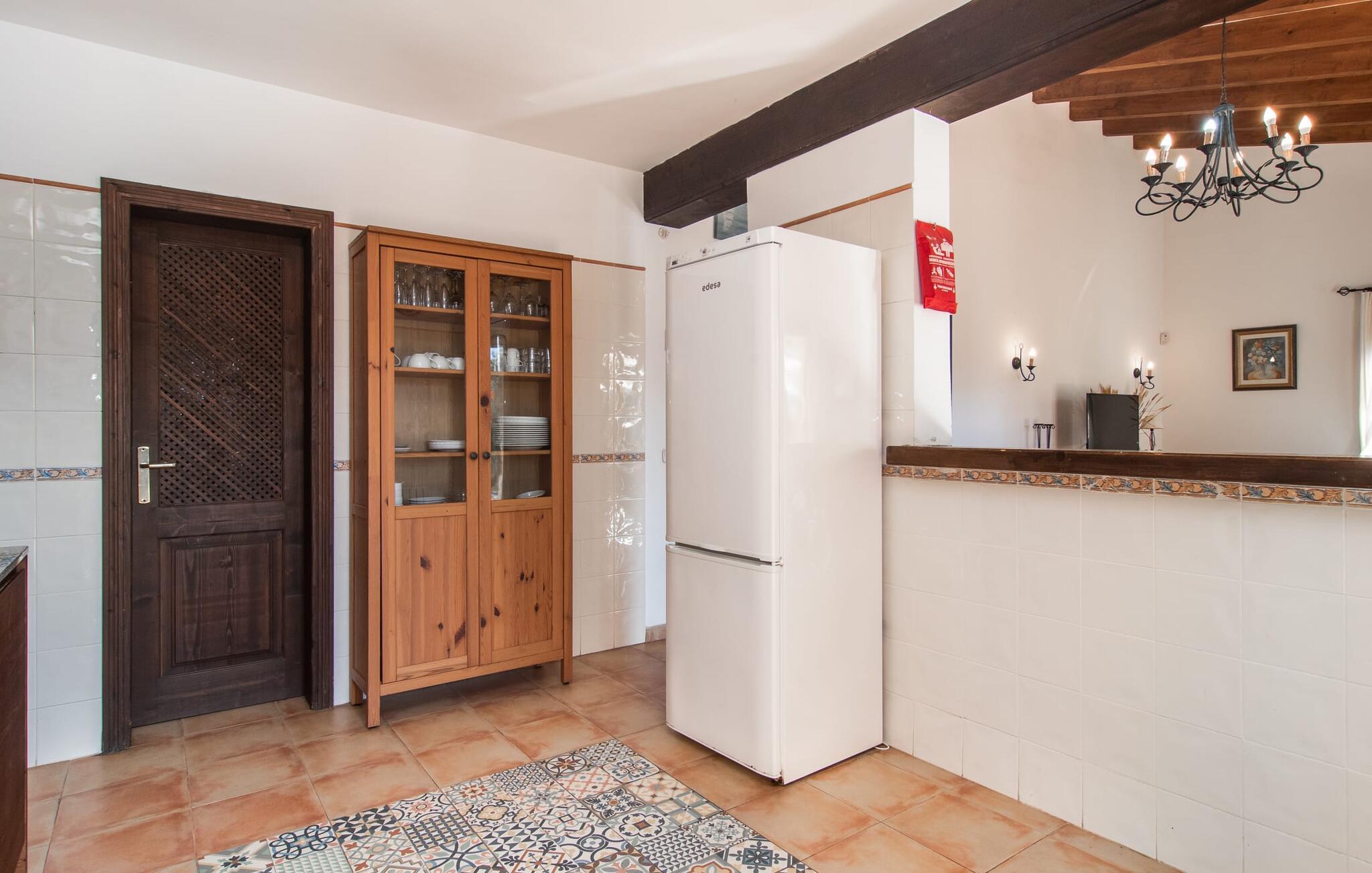 Den velholdte villa “Karen” på det sydlige Mallorca er tilgået via en lille port og omgivet af hække og terrasser. Den smukke, lange naturlige strand Sa Rápita kan nemt nås på cykel. Udenfor er der en dejlig pool med bænk og god plads til liggestole. Nyd hyggelige grillaftener i den store spisestue på den overdækkede terrasse ved huset, som er let tilgængelig fra køkken og stue. Den øverste etage har en balkonterrasse med udsigt over poolen og en østvendt terrasse til smukke solopgange og havudsigt i det fjerne. Er I en større gruppe og har brug for flere soveværelser? Bare spørg os – vi har andre smukke villaer i umiddelbar nærhed! De hyggelige og komfortabelt indrettede værelser er fordelt på to etager. Den lyse stue og spisestue er åben til det moderne og fuldt udstyrede køkken. Fra både stue og køkken er der direkte udgang til terrassen gennem glasdøre. Villaen har i alt fire dobbeltværelser. To af dem har eget badeværelse. De andre soveværelser deler endnu et badeværelse. Selv i de køligere måneder byder villaen på et behageligt indeklima takket være radiatorer. I øvrigt: I kan nemt leje cykler til ture til stranden på stedet under jeres ferie. Villaen ligger i den velholdte kystby Sa Rápita på det sydlige Mallorca. Den lange sandstrand Sa Rápita kan nås på 6 minutter i bil eller 8 minutter på cykel, og Es Trenc ligger 10 km derfra. Kystlandsbyen har små supermarkeder og restauranter. Der er yderligere indkøbsmuligheder i Campos, 13 km væk.
