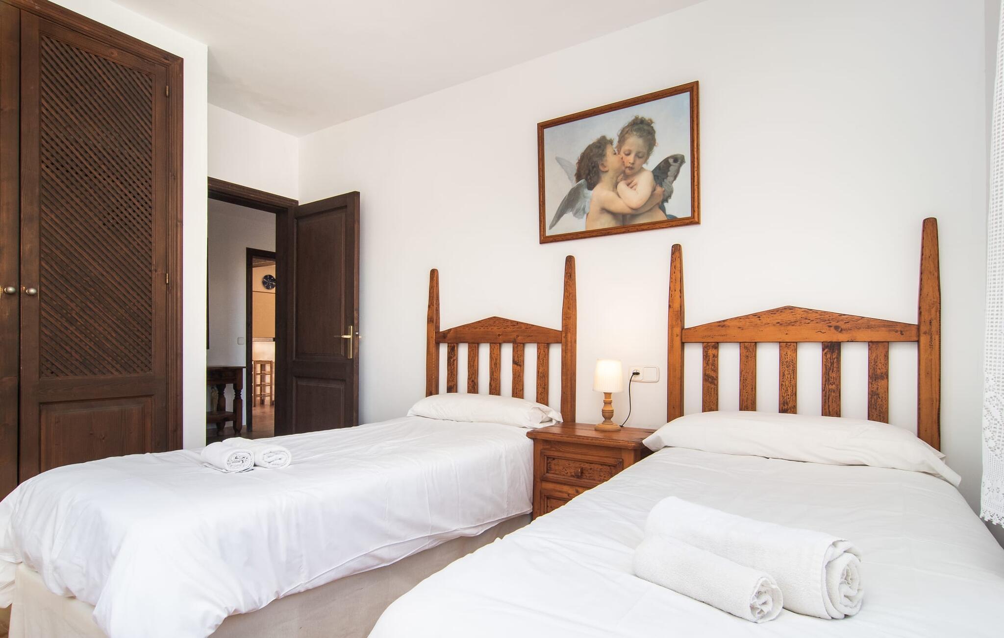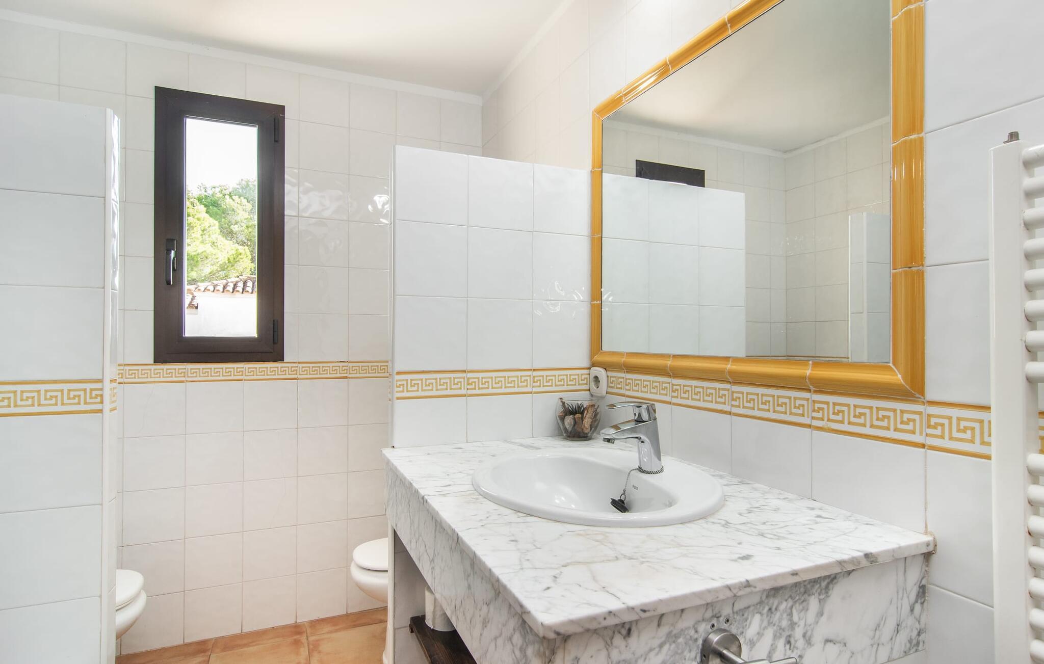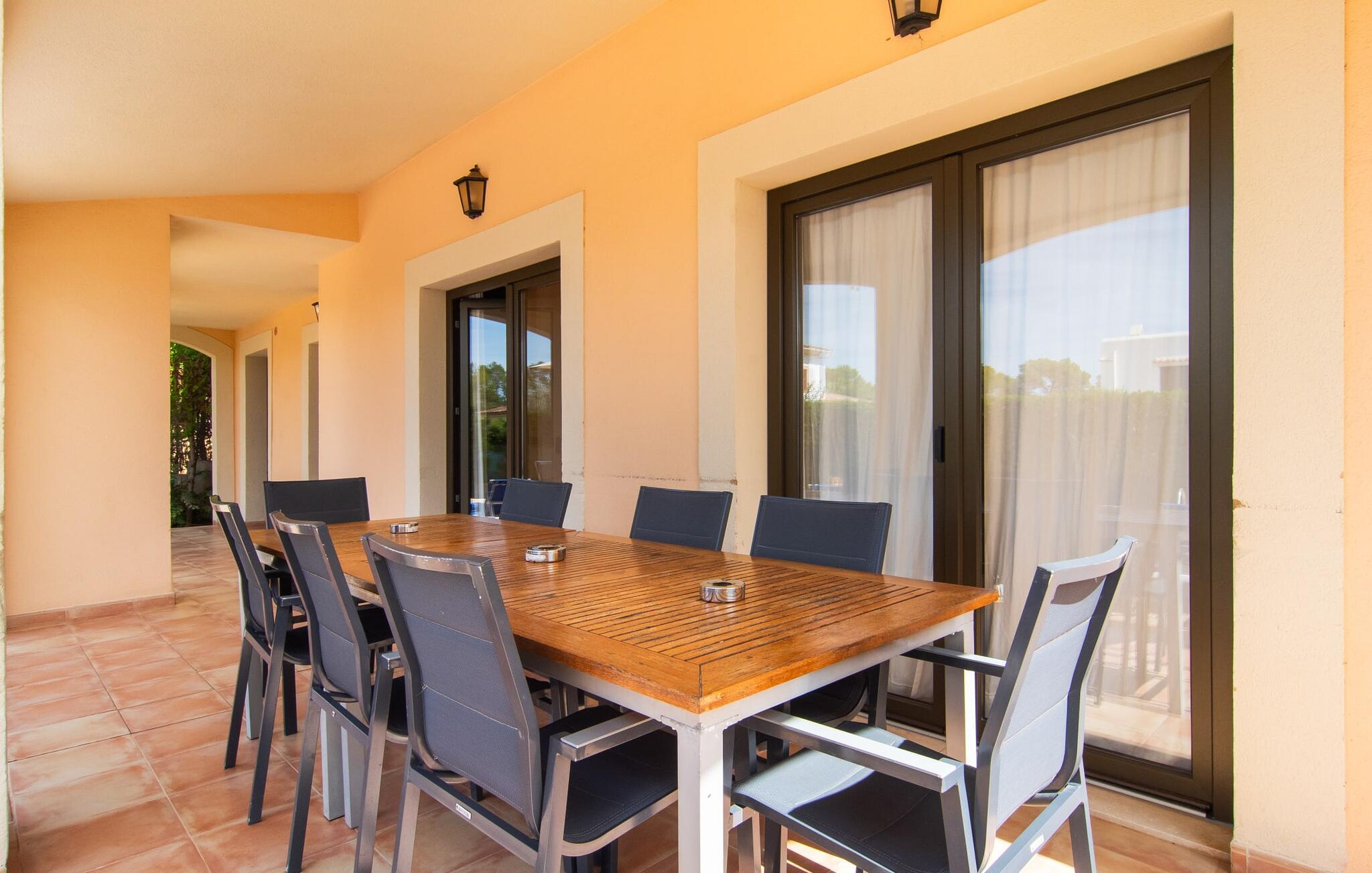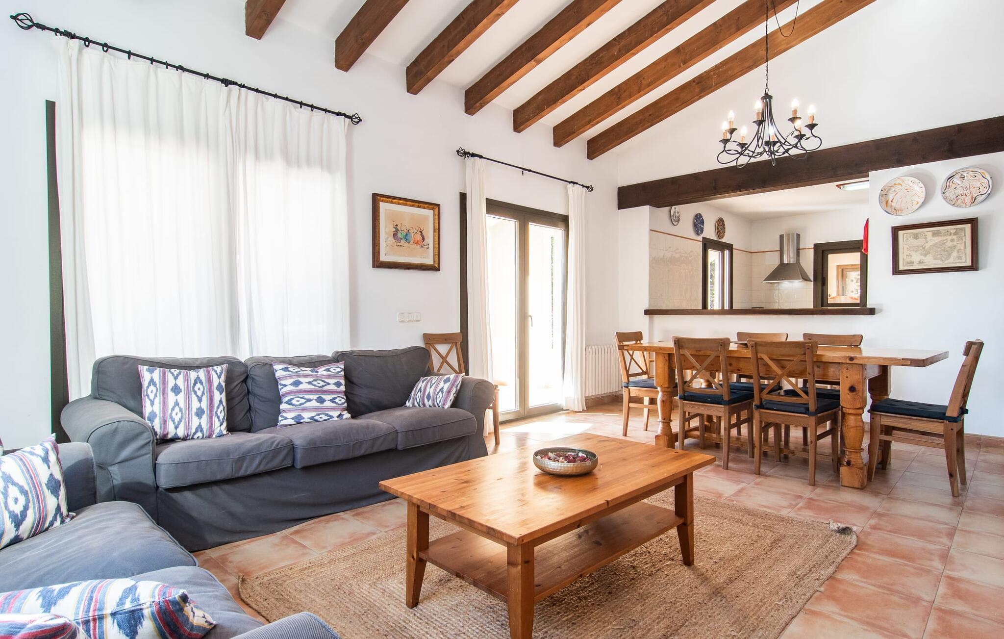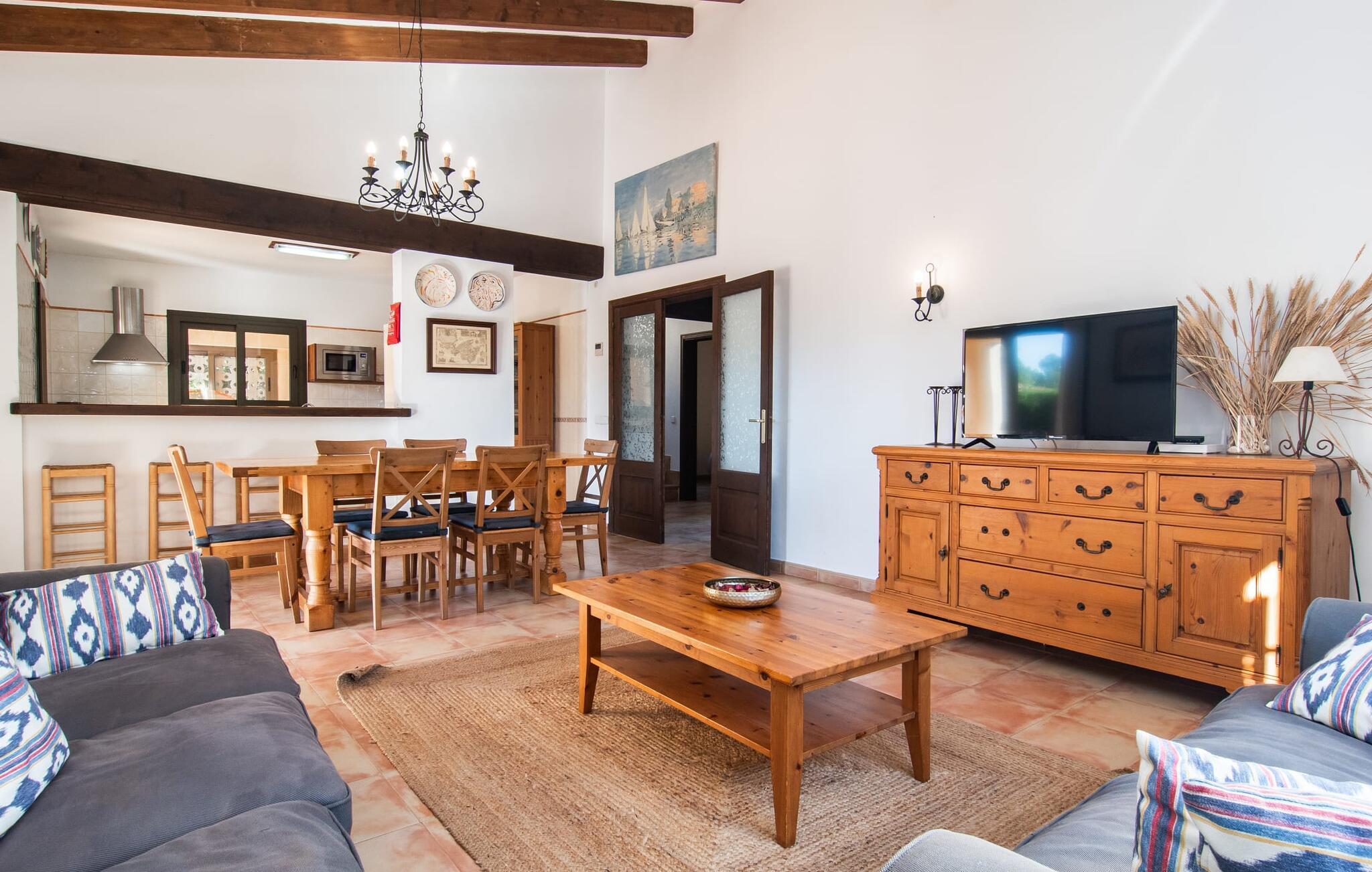 Den velholdte villa “Karen” på det sydlige Mallorca er tilgået via en lille port og omgivet af hække og terrasser. Den smukke, lange naturlige strand Sa Rápita kan nemt nås på cykel. Udenfor er der en dejlig pool med bænk og god plads til liggestole. Nyd hyggelige grillaftener i den store spisestue på den overdækkede terrasse ved huset, som er let tilgængelig fra køkken og stue. Den øverste etage har en balkonterrasse med udsigt over poolen og en østvendt terrasse til smukke solopgange og havudsigt i det fjerne. Er I en større gruppe og har brug for flere soveværelser? Bare spørg os – vi har andre smukke villaer i umiddelbar nærhed! De hyggelige og komfortabelt indrettede værelser er fordelt på to etager. Den lyse stue og spisestue er åben til det moderne og fuldt udstyrede køkken. Fra både stue og køkken er der direkte udgang til terrassen gennem glasdøre. Villaen har i alt fire dobbeltværelser. To af dem har eget badeværelse. De andre soveværelser deler endnu et badeværelse. Selv i de køligere måneder byder villaen på et behageligt indeklima takket være radiatorer. I øvrigt: I kan nemt leje cykler til ture til stranden på stedet under jeres ferie. Villaen ligger i den velholdte kystby Sa Rápita på det sydlige Mallorca. Den lange sandstrand Sa Rápita kan nås på 6 minutter i bil eller 8 minutter på cykel, og Es Trenc ligger 10 km derfra. Kystlandsbyen har små supermarkeder og restauranter. Der er yderligere indkøbsmuligheder i Campos, 13 km væk.
