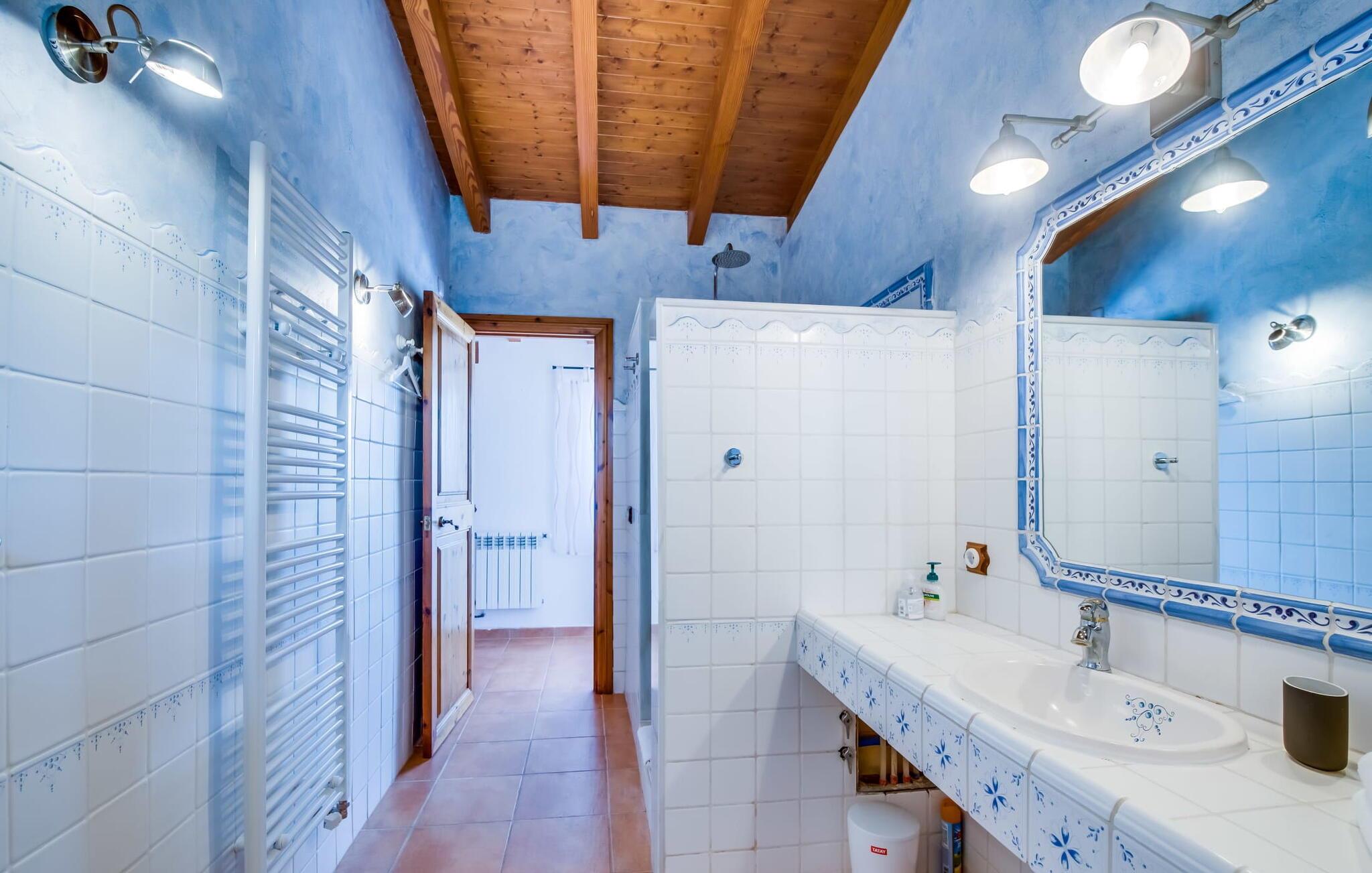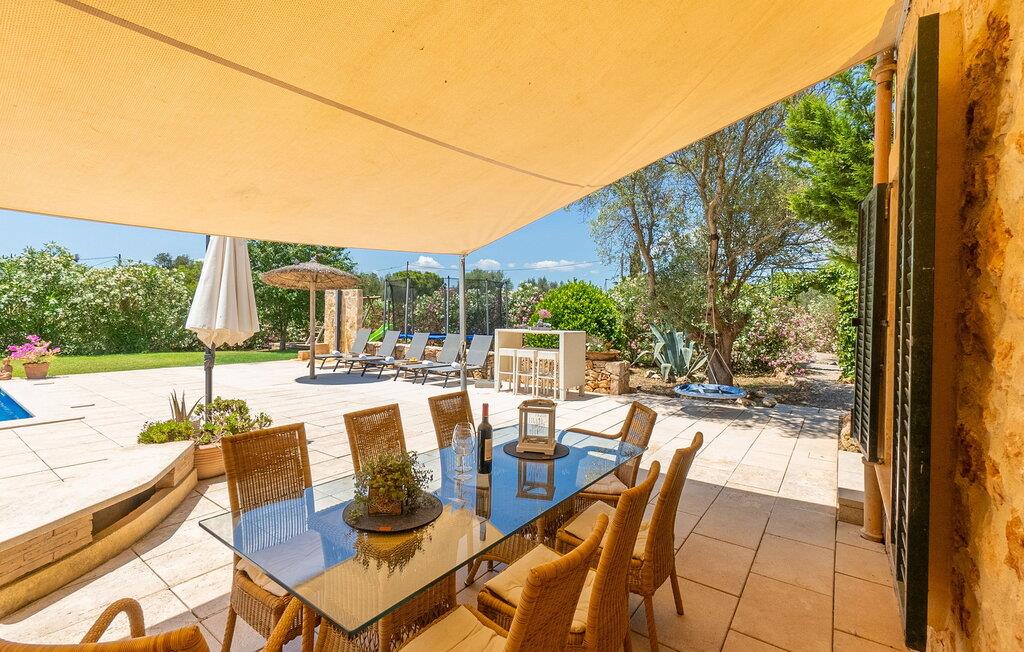 Den inspirerende finca "Kiana" repræsenterer det klassiske Mallorca. Ikke kun fordi den charmerende, fritliggende ejendom ligger i øens stadig landbrugsmæssige centrum. Tværtimod forstår huset, med sin stenbrudsfacade og lyse vinduer, at kombinere mallorcanske traditioner med et moderne udtryk og komfort – både inde og ude. Murstensbassinet med romerske trin, indlejret i en stor græsplæne, er et bevis på dette. Oplyst om aftenen skaber det en vidunderlig atmosfære i haven i middelhavsstil, som ikke mangler noget, inklusive palmer, cypresser, oliven-, figen- og citrontræer. Svømmehallen er indlejret i en stor græsplæne, hvor liggestole kan placeres efter ønske. Med legepladser, gynge og bordtennisbord er dette ekstraordinære feriehus også kendetegnet ved sit børnevenlige design. Udover et sted at sidde i skyggen af træerne, er verandaen ud mod poolen også værd at nævne, som giver plads nok til et måltid sammen (som også kan arrangeres med en grill). Om dagen kan I slappe af i skyggen og om aftenen under beskyttelse af det enorme fortelt, der dækker dette hyggelige område. Interiøret afspejler især den perfekte symbiose af mallorcanske attributter og den nuværende landstedstrend. Varme terracottagulvfliser, solide træbjælker og synlige brudsten fra lang tid siden skaber en indbydende atmosfære, hvor I kan bevæge jer helt naturligt. Med talrige udgange til haven smelter indendørs- og udendørsarealerne sammen til ét - som det er tilfældet i den rustikke pejsestue og køkkenet med åben spiseplads, der er tilbagetrukket et par trin. Det smarte køkken med kogeø tilbyder al den komfort, I kan ønske jer til ukompliceret selvforplejning, især på ferien - alt er der, og I kan føle jer helt hjemme. I den harmoniske Mallorca finca finder I masser af plads både med venner (og børn) og med flere generationer - op til otte personer. I vil helt sikkert finde masser af plads i de fire dobbeltværelser med aircondition (et i stueetagen, de tre andre på øverste etage) med tre badeværelser i moderne design. Hvile og afslapning i en familievenlig atmosfære er mulig hele året rundt i den hyggelige lejefinca "Kiana". Den indbydende stenbrudsfinca "Kiana" med have og pool emmer af behagelig charme. Ejendommen er centralt beliggende midt på øen, og kørestøj fra landevejen er kun hørbar, når der er en vis mængde vind. Der må påregnes flystøj. I kan gøre jeres indkøb i de omkringliggende landsbyer, herunder familielandsbyen Santa Eugènia eller Sencelles. Den smarte ø-hovedstad Palma byder jer velkommen til shopping og kultur. I samme retning er der nogle skønne sandstrande med promenader, bademuligheder og restauranter som Cuidad Jardin.