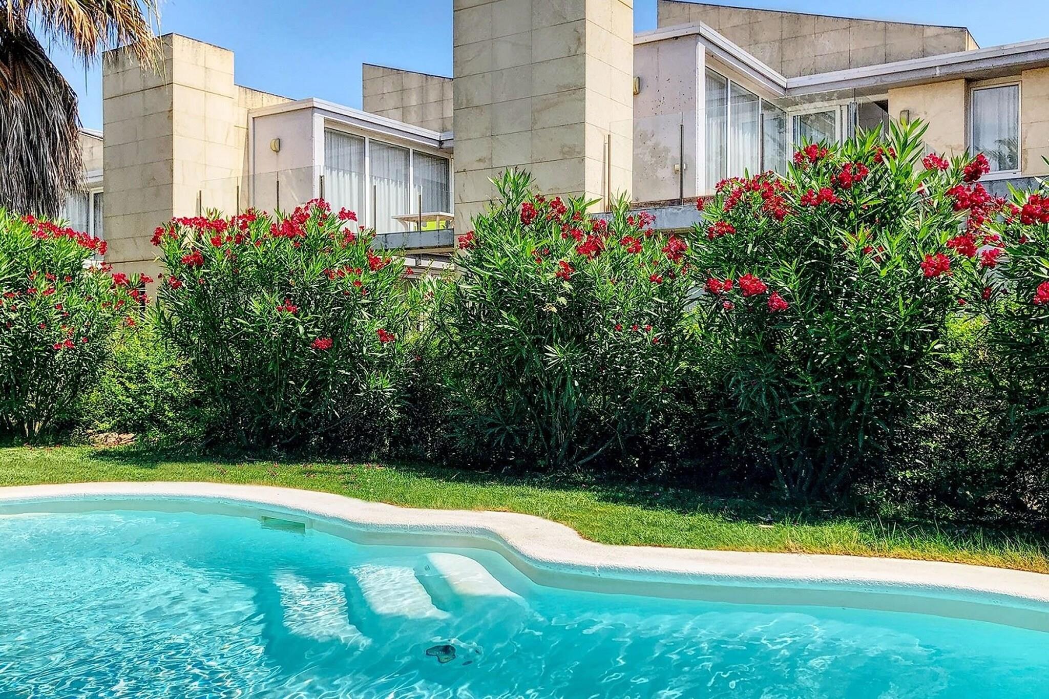 Disse moderne dobbelthuse med hver to stilfulde lejligheder skiller sig ud i udkanten af La Escala med deres slanke arkitektur og rummelige design. Det smukt anlagte haveområde, komplet med palmer, oleandere og levende planter, skaber det perfekte miljø til at slappe af ved poolen. Indvendigt er lejlighederne smagfuldt indrettede med en velafstemt farveskala, rene linjer og åbne rum, der byder på en rolig og indbydende atmosfære. Ejendommen ligger kun 1,5 km fra stranden og den maleriske "Els Riells"-promenade, hvilket gør det til et ideelt sted for både afslapning og eventyr. La Escala, beliggende i den sydlige Roses-bugt i den nordøstlige del af Catalonien, er en lille by fuld af charme og aktiviteter. Området byder på en bred vifte af fritids- og sportsmuligheder, herunder cykeludlejning, minigolf, tennis, dykning og meget mere. Derudover kan du udforske byens charmerende gamle bydel, hvor du finder en blanding af lokal kultur og naturskønne gader. Byen er også inden for rækkevidde af fantastiske strande, der giver masser af muligheder for vandaktiviteter eller blot at slikke sol. Komplekset tilbyder fremragende faciliteter, herunder tre udendørs swimmingpools og fire mindre pools (18 kvm), åbne fra april til oktober. Gæsterne kan nyde den fælles terrasse udstyret med havemøbler og parasoller, perfekt til at nyde middelhavsklimaet. Andre faciliteter omfatter Wi-Fi i receptionen, med yderligere tjenester såsom massage og cykeludlejning til rådighed mod et gebyr. Bemærk venligst, at ejendommen ikke er egnet til personer med nedsat mobilitet.