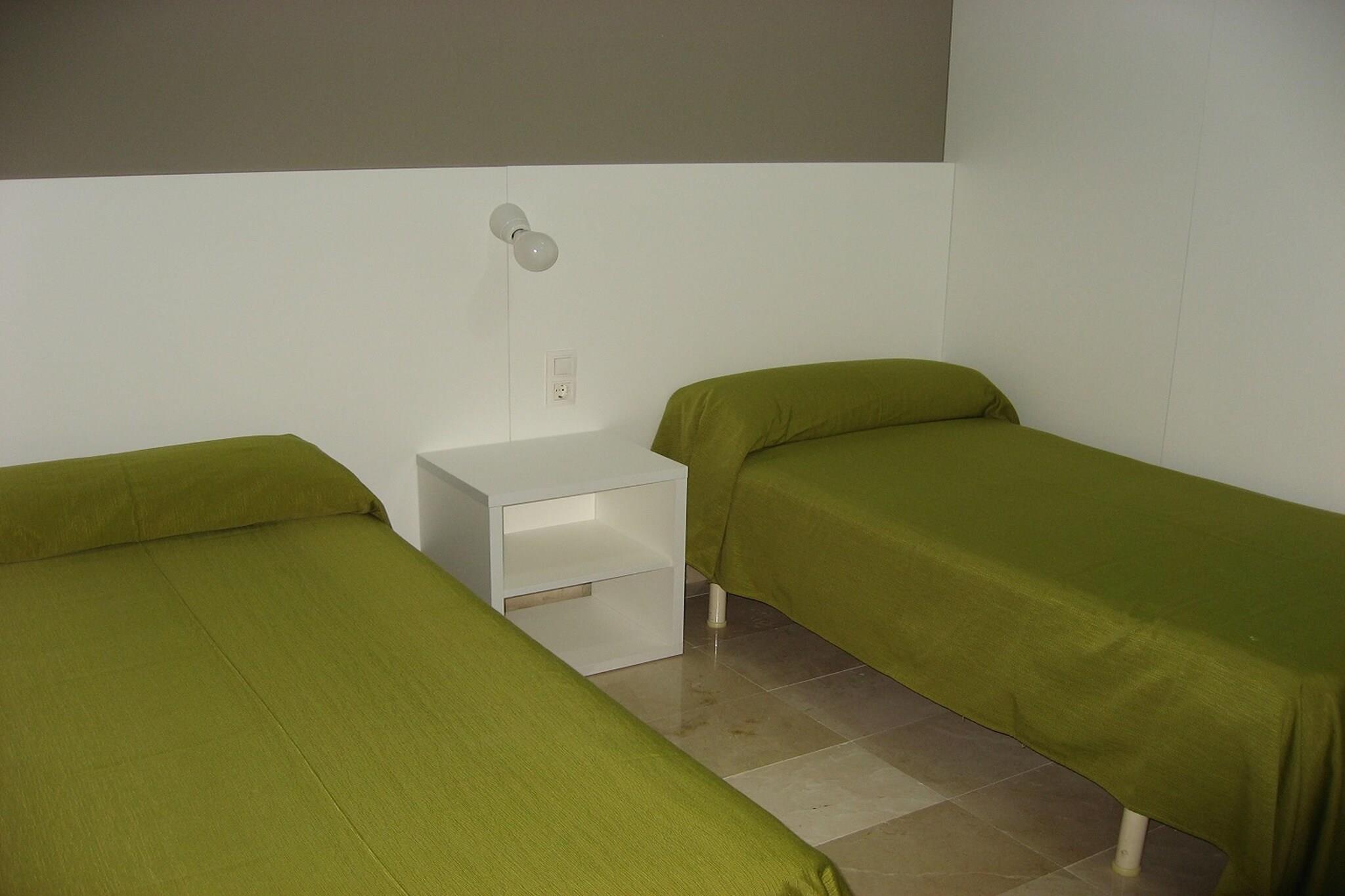Disse moderne dobbelthuse, hver med to stilfulde lejligheder, tilbyder et iøjnefaldende arkitektonisk design i udkanten af La Escala. Den smukt anlagte have med palmer, oleandere og andre planter skaber en rolig oase. Med en pool og masser af plads til at slappe af under solen, er det det perfekte sted at slappe af. Interiøret er moderne, med et velkoordineret farveskema og rene linjer, hvilket giver et lyst og luftigt opholdsrum. Denne ejendom ligger kun 1,5 km fra stranden og den maleriske "Els Riells"-promenade og tilbyder nem adgang til lokale attraktioner. La Escala, beliggende i den sydlige Roses-bugt i det nordøstlige Catalonien, er kendt for sin fantastiske naturlige skønhed og livlige atmosfære. Gæsterne kan nyde en række aktiviteter, herunder cykeludlejning, minigolf, tennis og dykning. Den charmerende gamle bydel tilføjer et kulturelt præg til området. Feriekomplekset tilbyder fremragende faciliteter, herunder tre fælles udendørs pools, sammen med fire mindre pools (18 kvm) åbne fra april til oktober. Slap af på liggestolene eller nyd den fælles terrasse med havemøbler og parasoller. Der er gratis trådløs internetadgang i receptionen, og yderligere tjenester såsom massage og cykeludlejning er tilgængelige mod et gebyr. Bemærk venligst, at ejendommen ikke er egnet til personer med nedsat mobilitet.