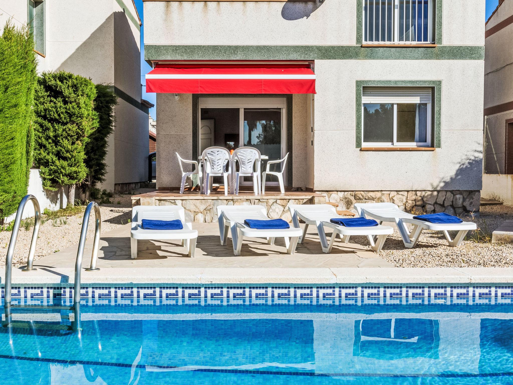 Las Tres Calas 3 km from l'Ametlla: Cosy, comfortable terraced house "Santa Marta III", 2 storeys. In a quiet, sunny position, 3 km from the sea, 3 km from the beach. Private: natural state property (fenced), swimming pool (7 x 3 m, depth 140 - 200 cm, seasonal availability: 01.Apr. - 30.Nov.). Terrace, garden furniture, barbecue, pool maintenance by the owner/gardener. Shop 1.5 km, supermarket 1.5 km, restaurant 1.5 km, bus stop 350 m, railway station "ametlla de mar" 4.6 km, sandy beach 3 km. Nearby attractions: Parque Portaventura 48 km, parque Aquopolis 51 km, parque natura del Delta del Ebro 35 km, Tarragona 57 km, Reus 48 km, Barcelona 153 km. Groups of teenagers on request only.